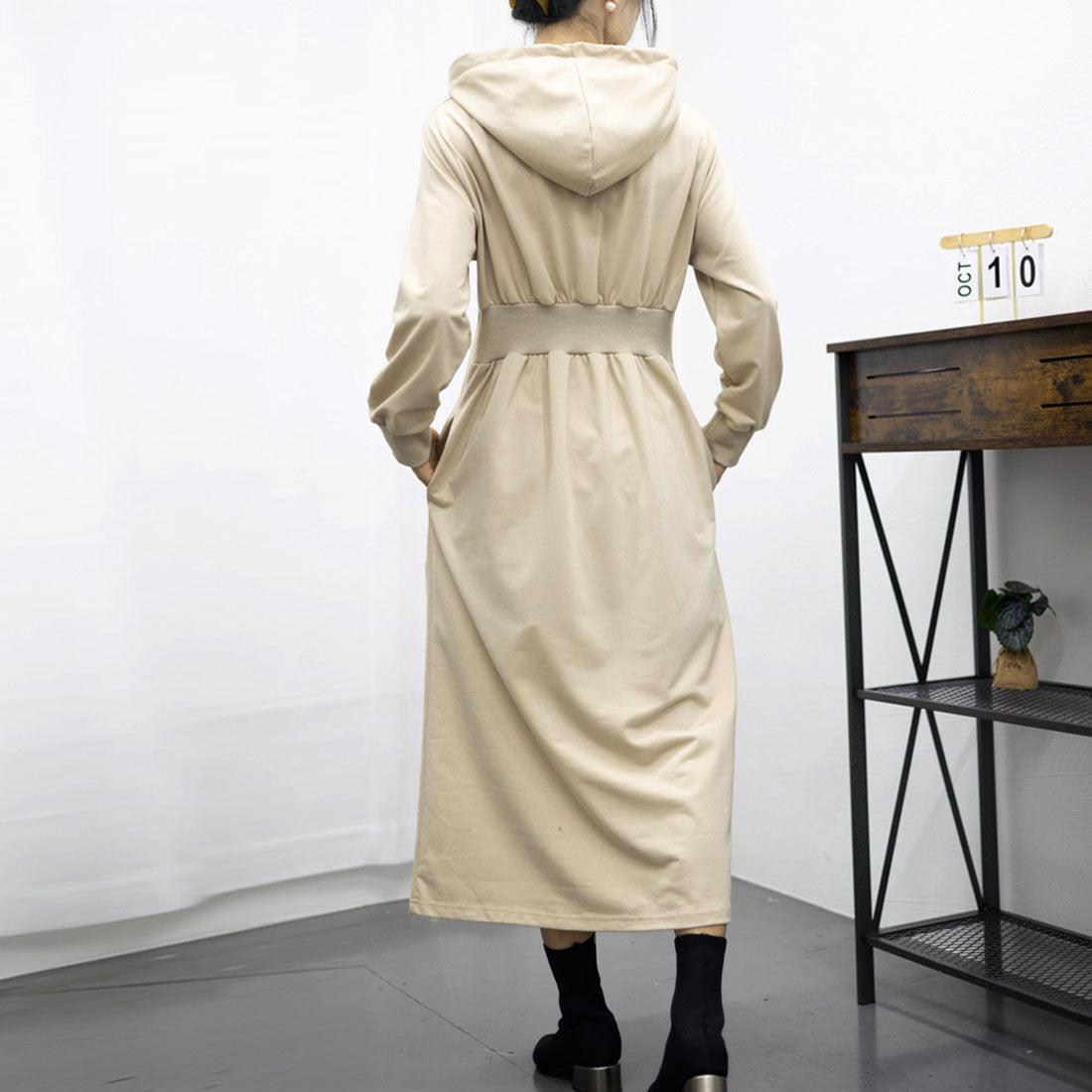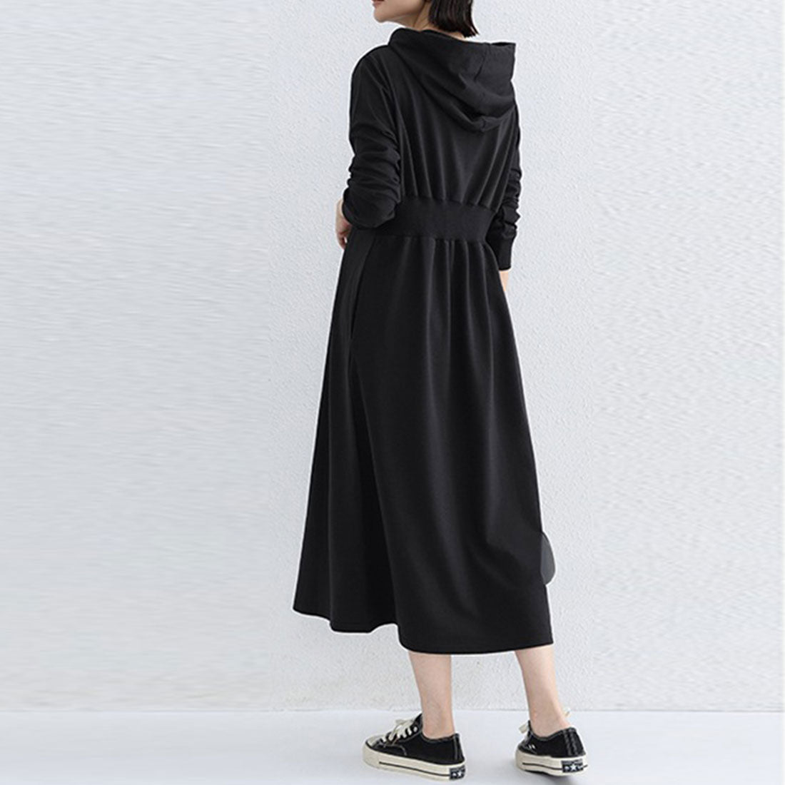 女士連帽衛衣裙 高腰A字裙 口袋設計 成人 長袖T恤裙