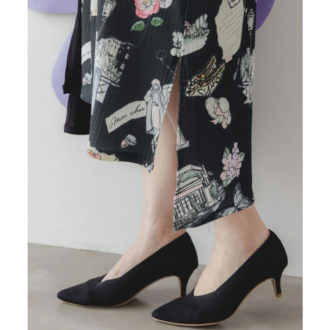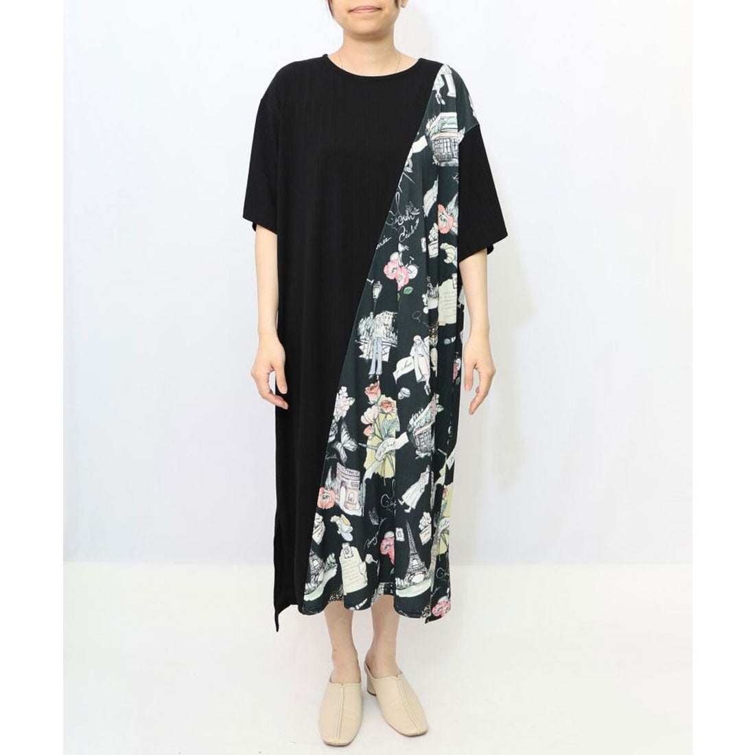 ScoLar 巴黎圖案切換隨機羅紋連衣裙