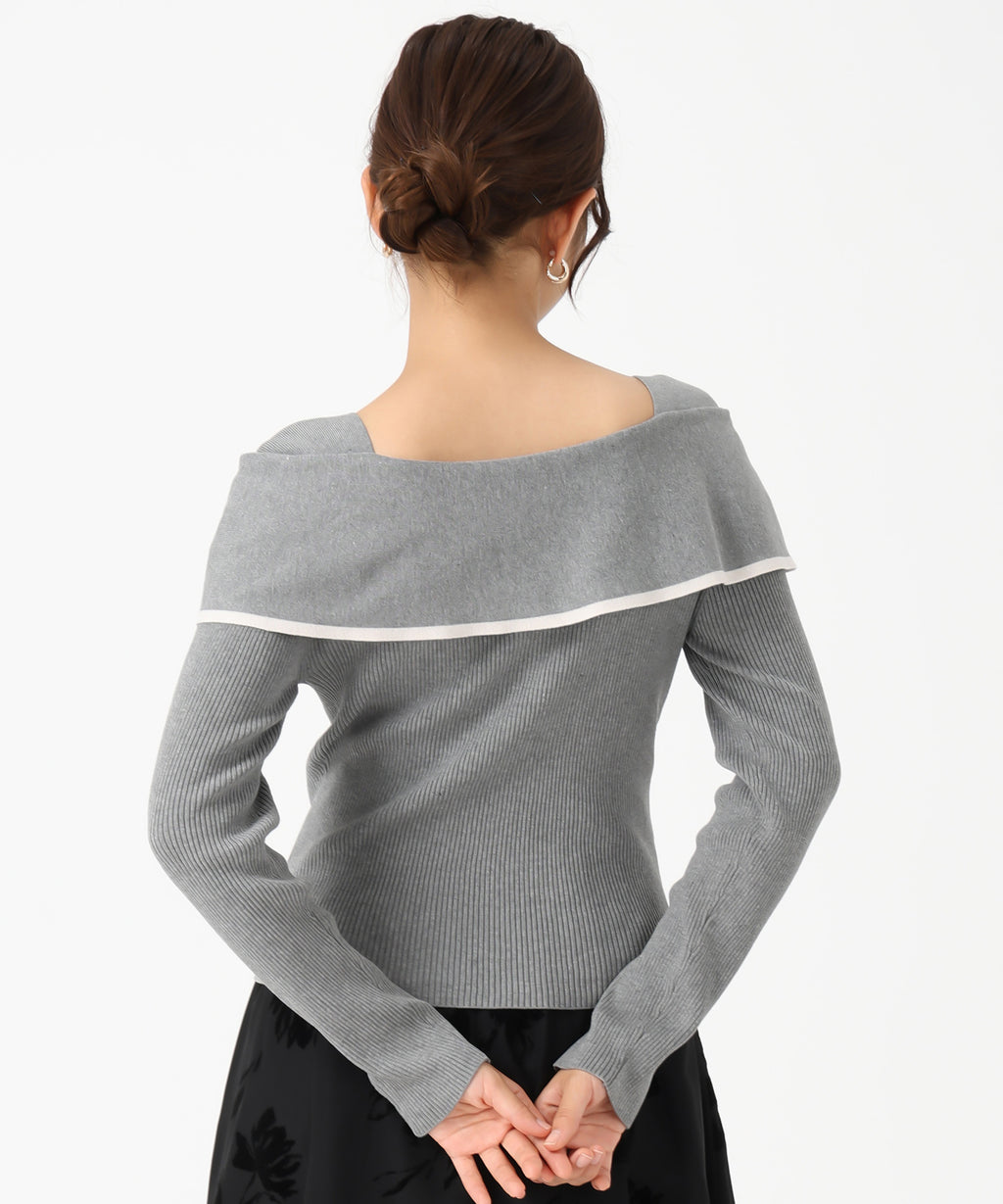 可前後兩用的斗篷風格針織衫。斗篷部分使用了閃亮的線條,展現出時尚的配色線條,營造出精緻的印象。獨特的非對稱輪廓和斗篷的設計特徵,讓您可以享受兩種不同風格的穿搭。袖口的珍珠鈕扣更添優雅與古典的氛圍。這是一件能根據心情和造型隨意變換前後的高搭配性單品。