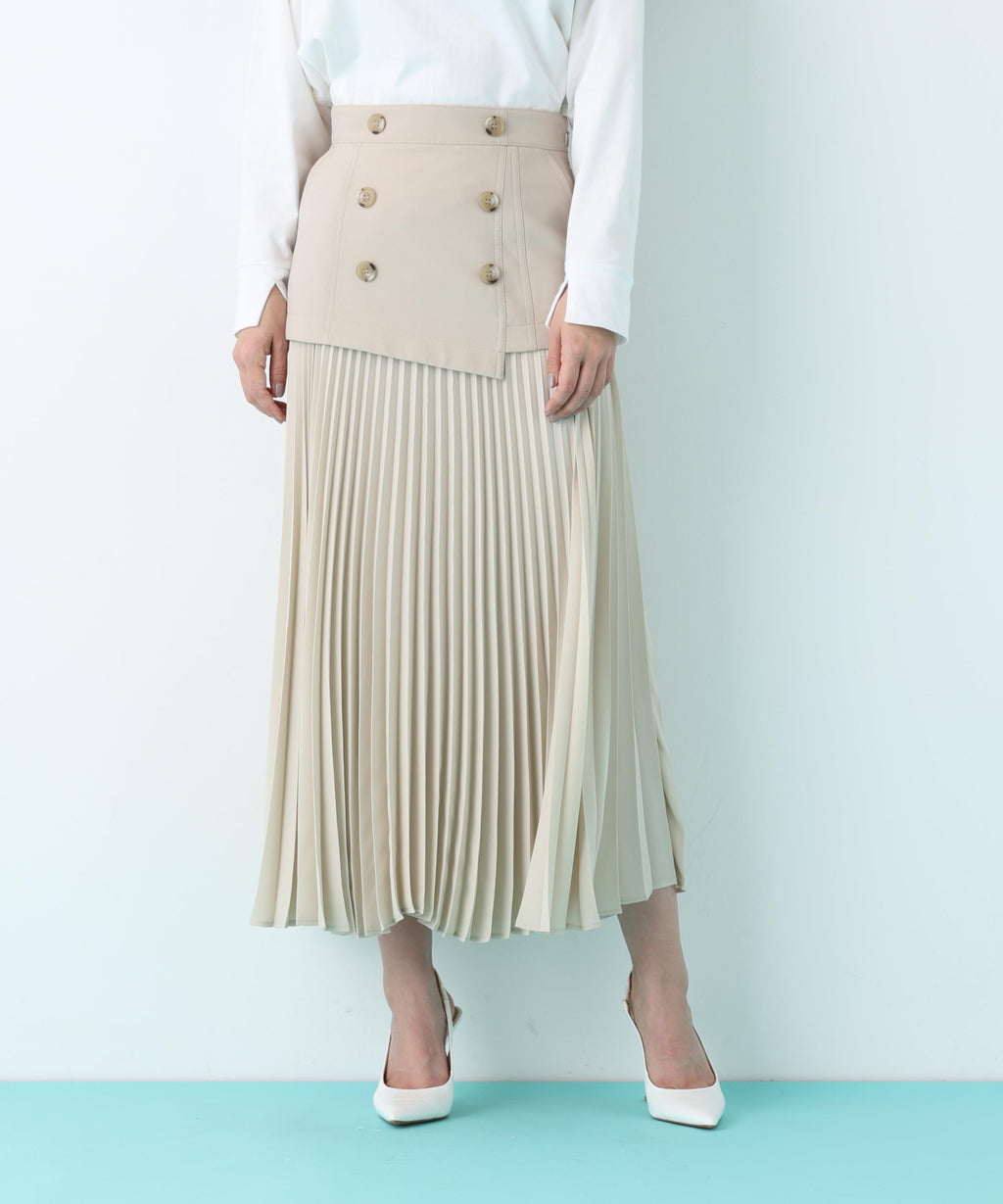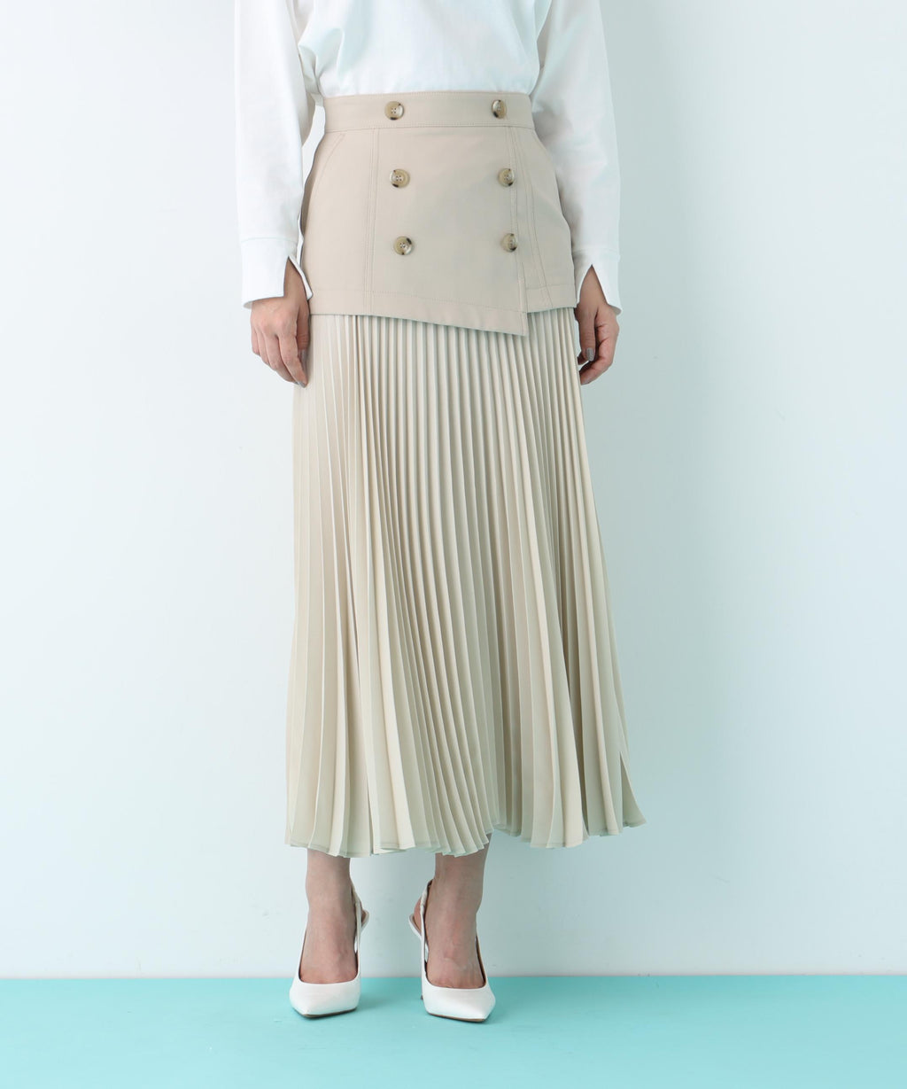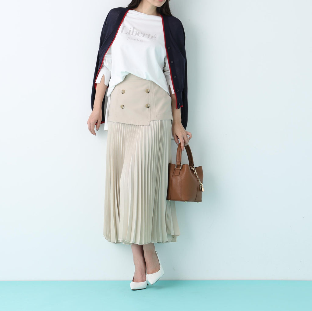 從腰圍到臀部的輪廓簡潔,像風衣一樣的細節展現出尖銳而精緻的氛圍的裙子。臀部下方的切換處輕盈地展開褶皺,營造出富有動感的女性印象。僅僅搭配簡單的上衣,造型便顯得格外時尚,與同材質的柔軟牛津短風衣(0316151221)搭配穿著也非常推薦。