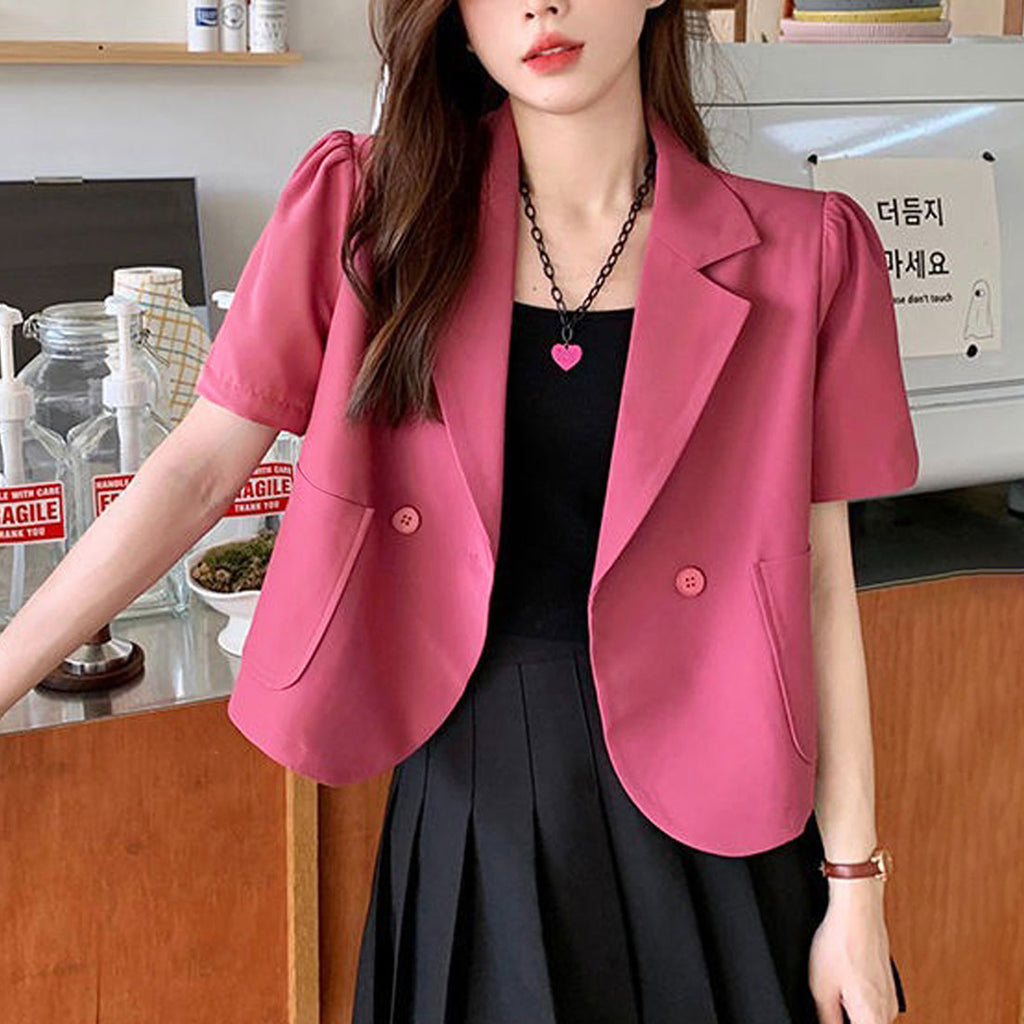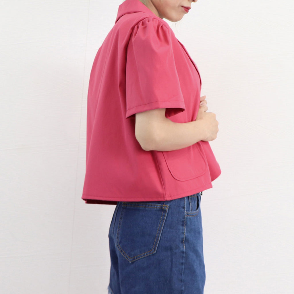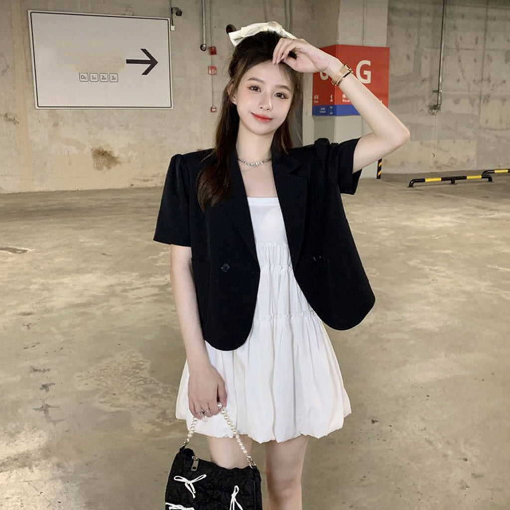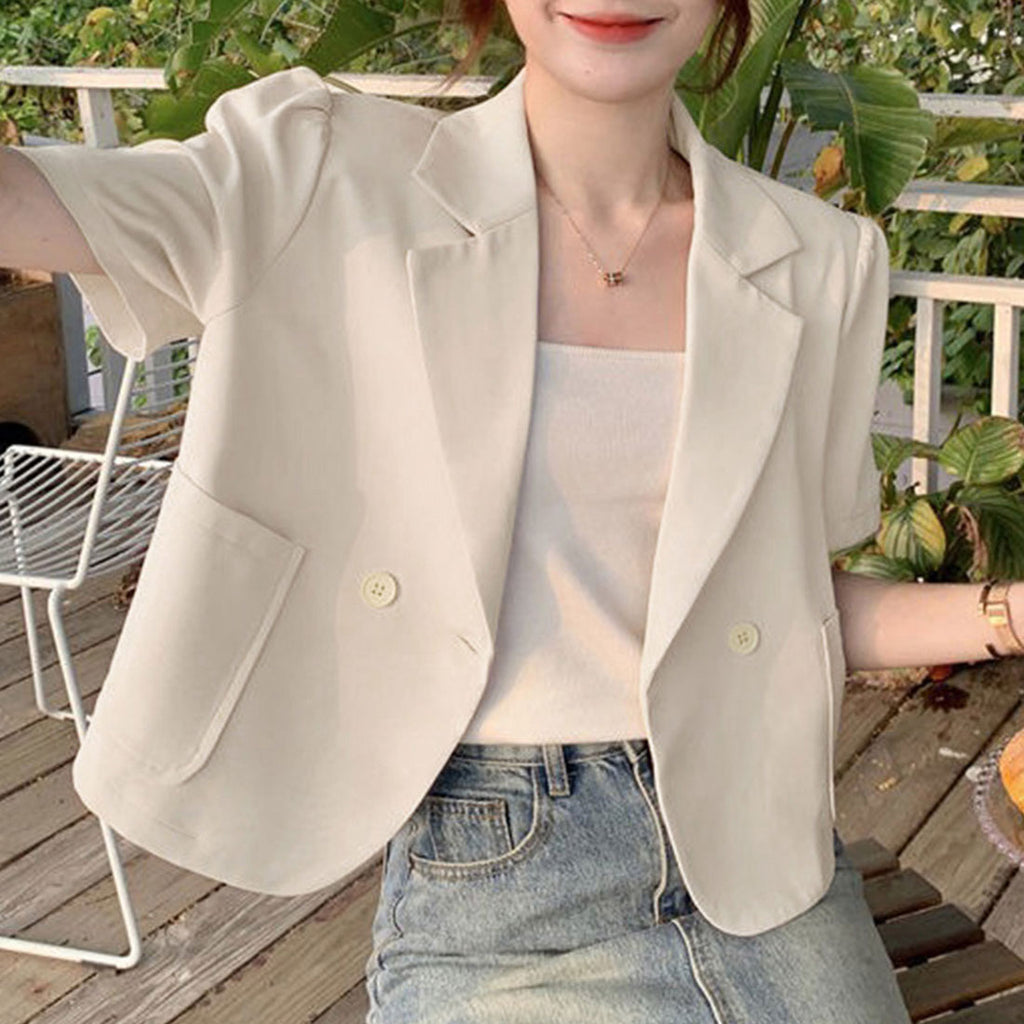 短款西裝外套 薄款襯衫外套 V領 短款春夏外套 帶領子輕便外套 韓國時尚夏季外搭 夏季夾克黑色