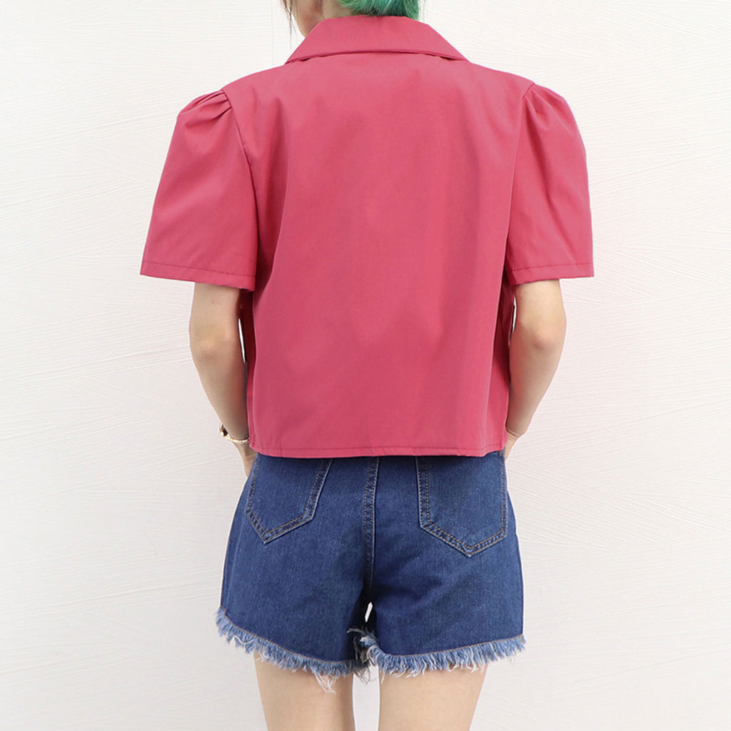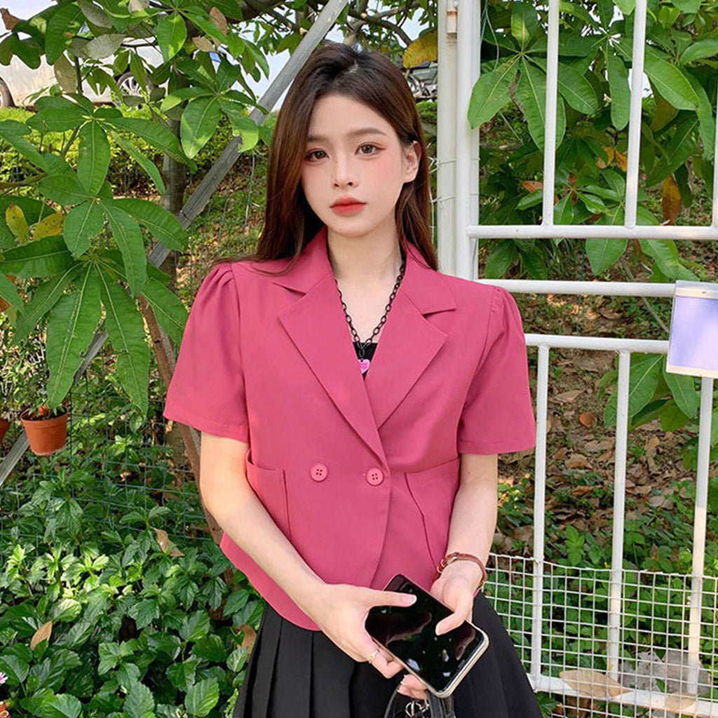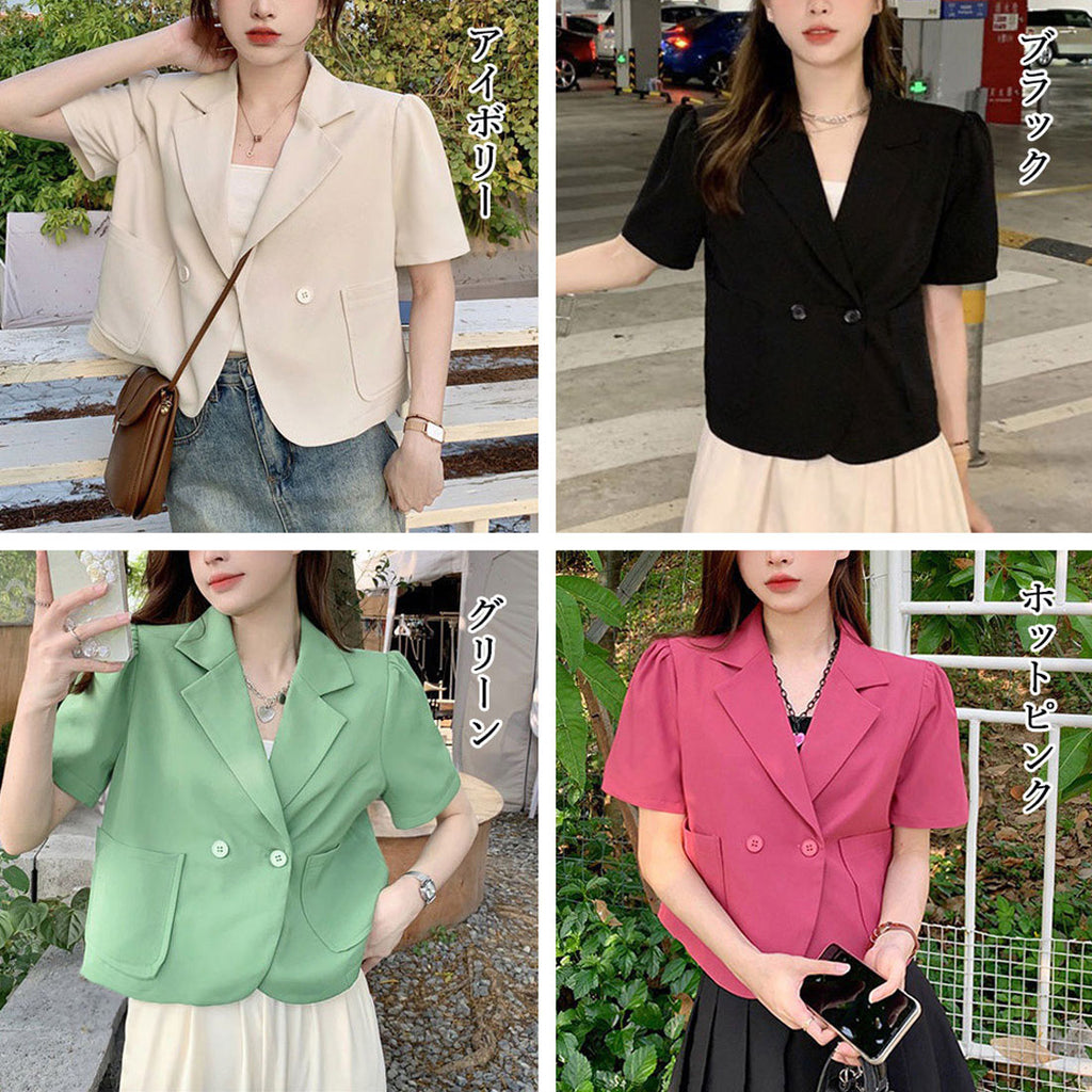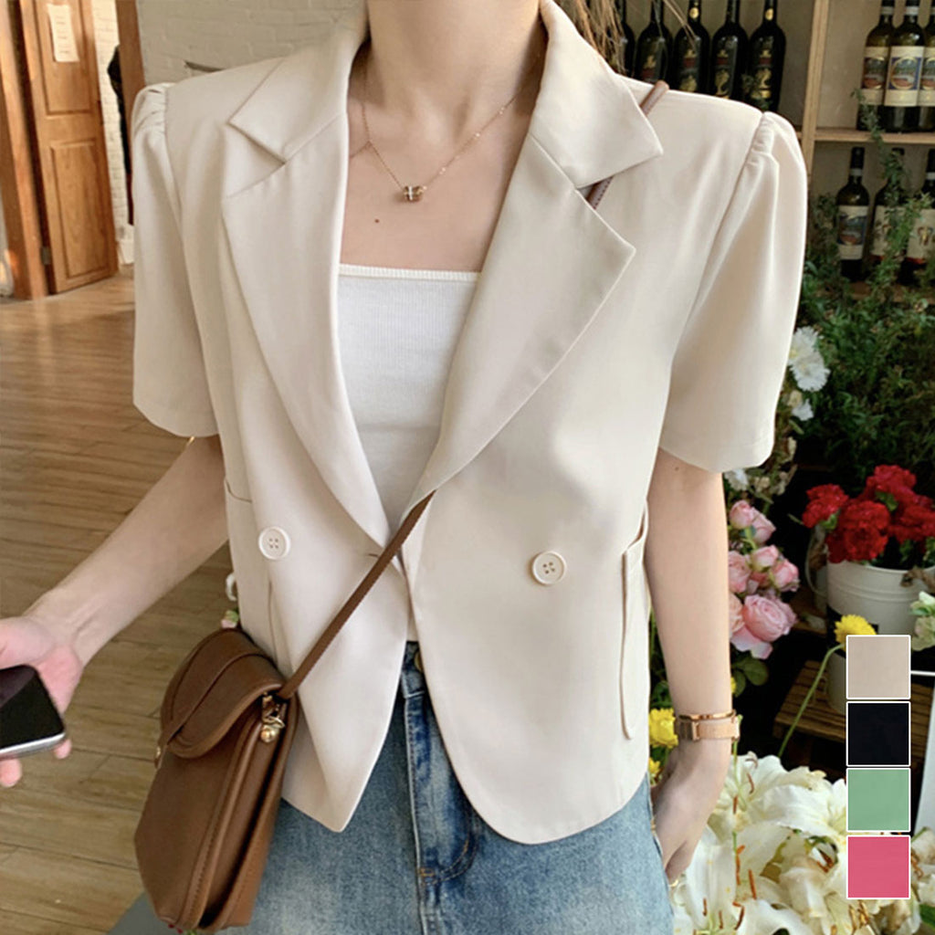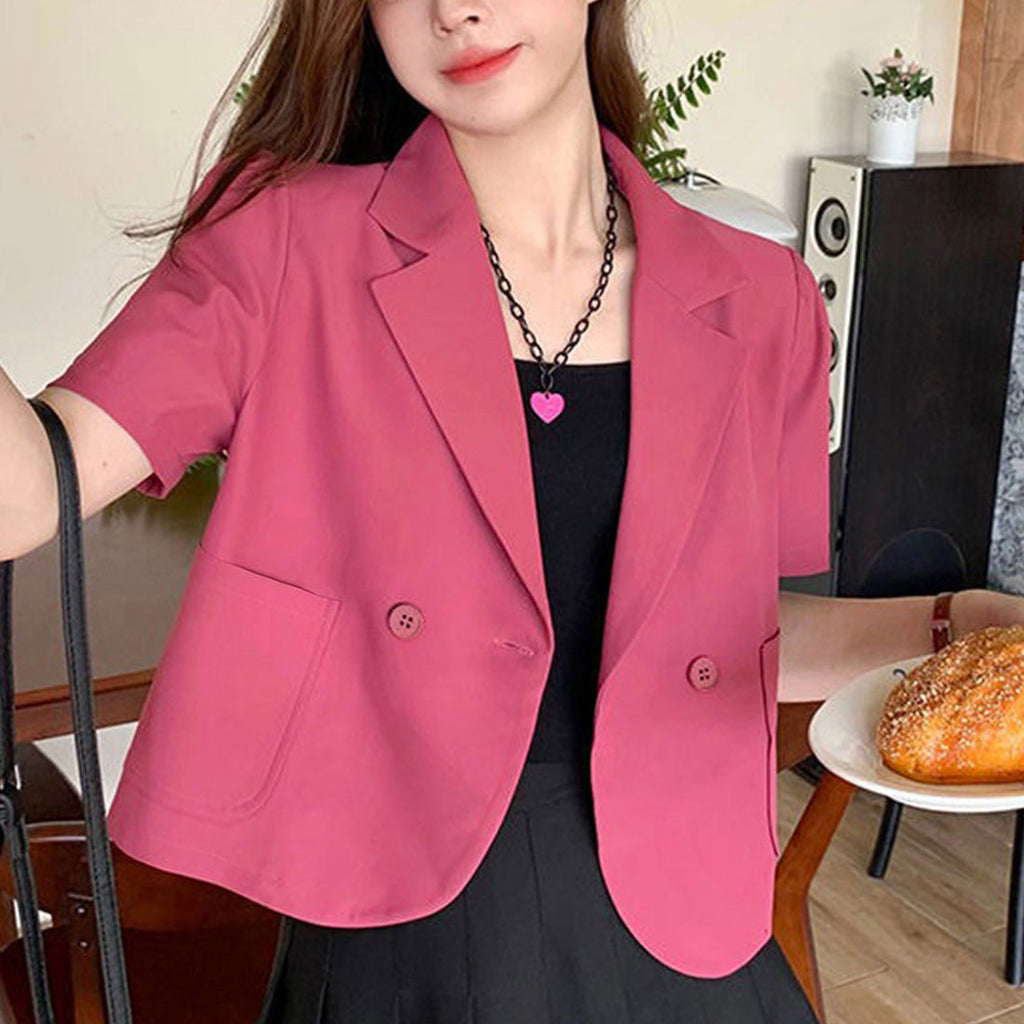 短款西裝外套 薄款襯衫外套 V領 短款春夏外套 帶領子輕便外套 韓國時尚夏季外搭 夏季夾克黑色