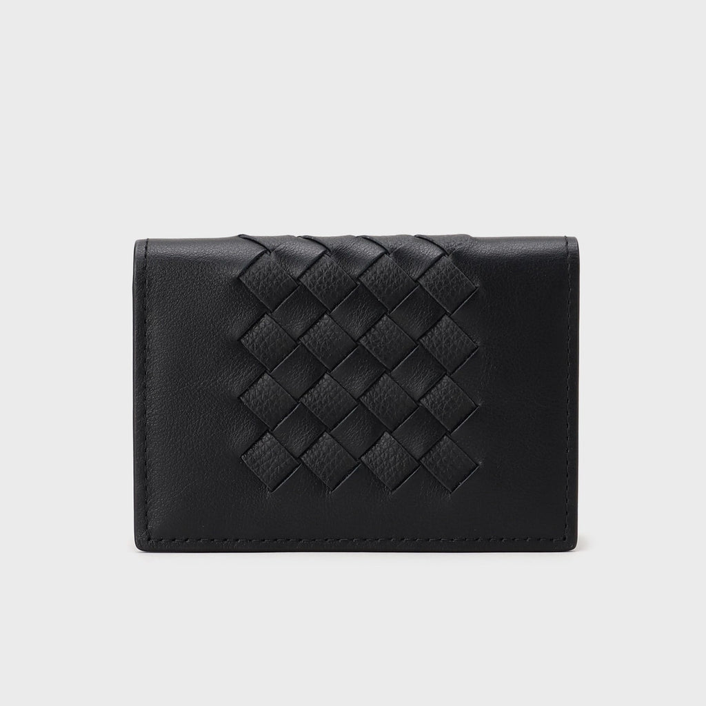 以線狀施加的插入網格(Intrecciato)設計的通過式名片夾。