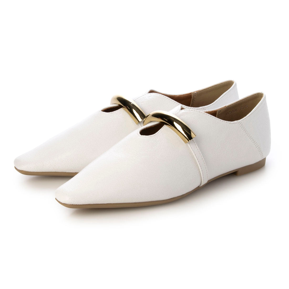 ル ソン Le son レザー調モカシン ドライビングサブリナシューズ (ホワイト) ホワイト