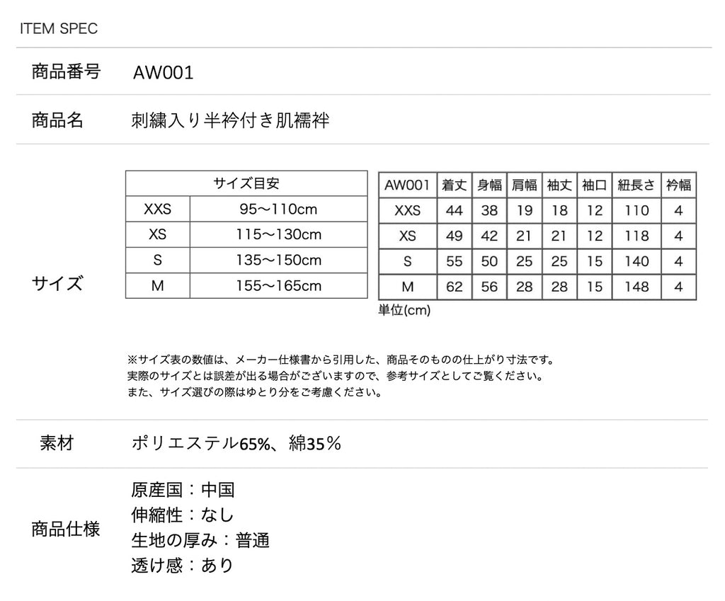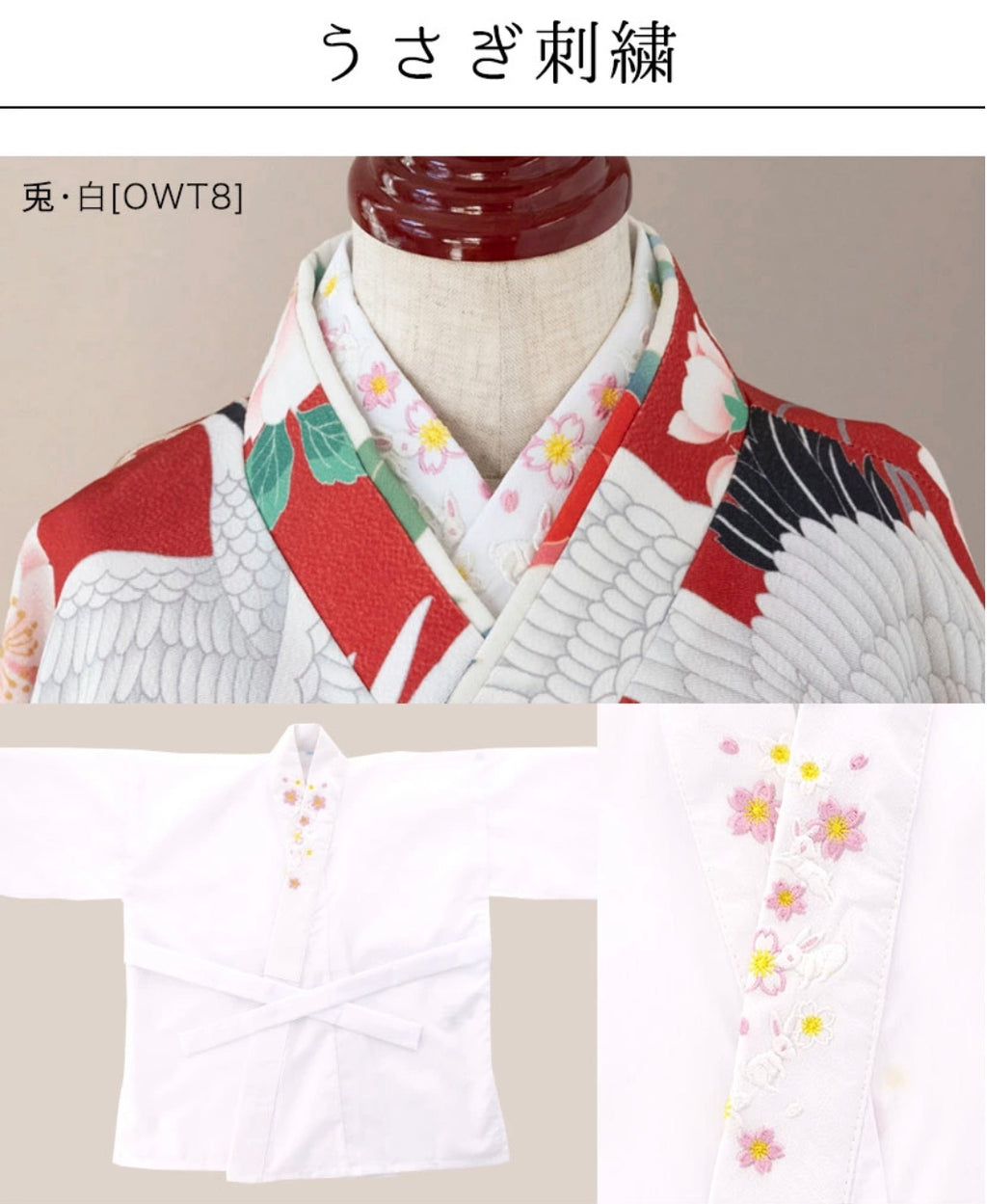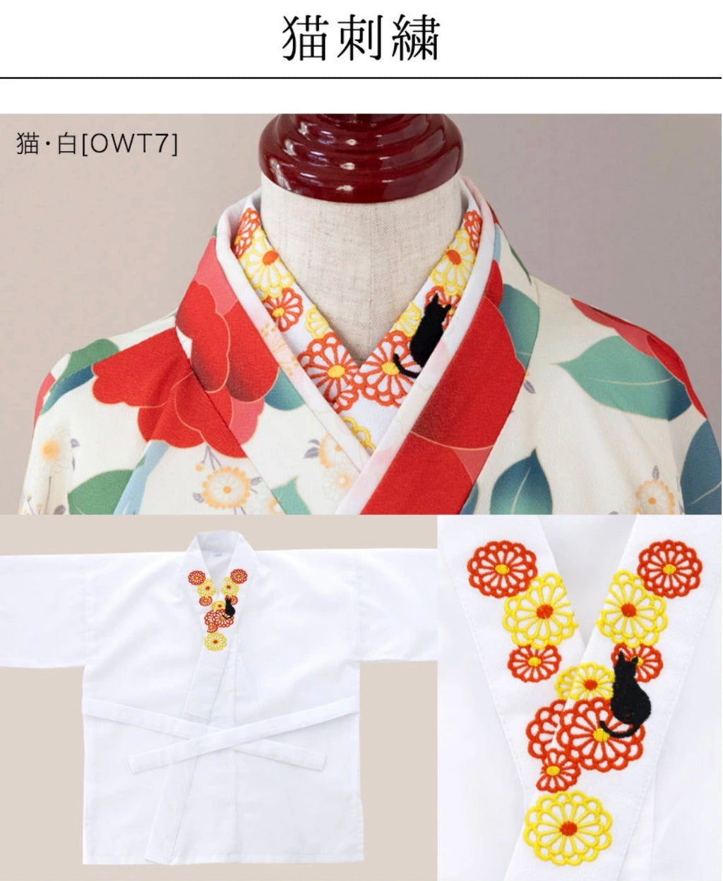 可愛的刺繡半襟肌襦袢