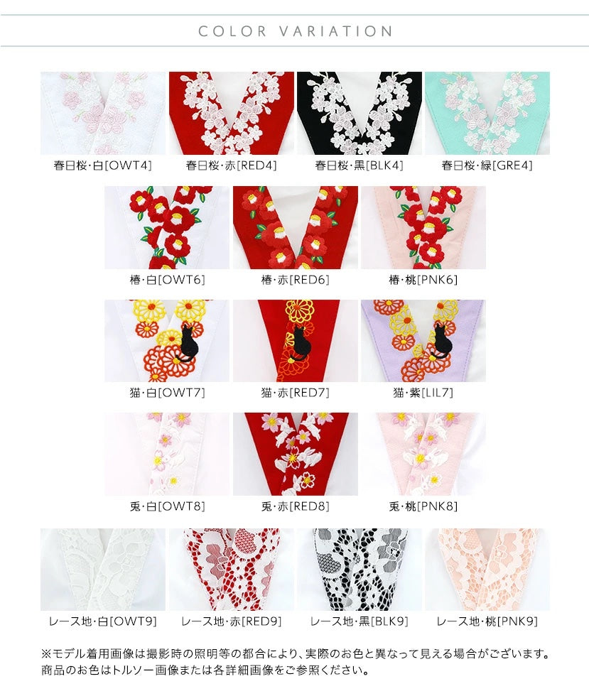 袴套裝搭配的原創設計。半襟的底色也準備了多種選擇♪