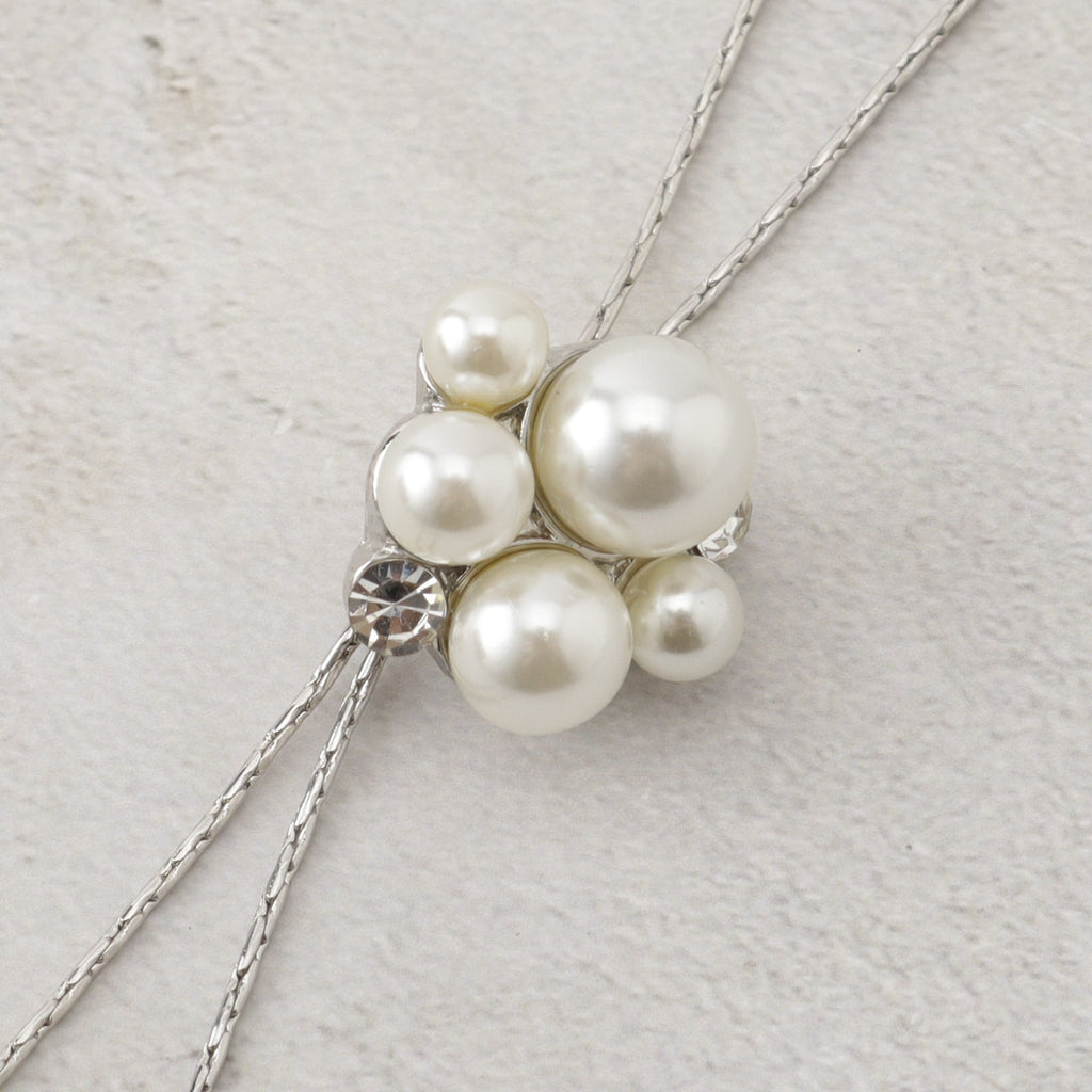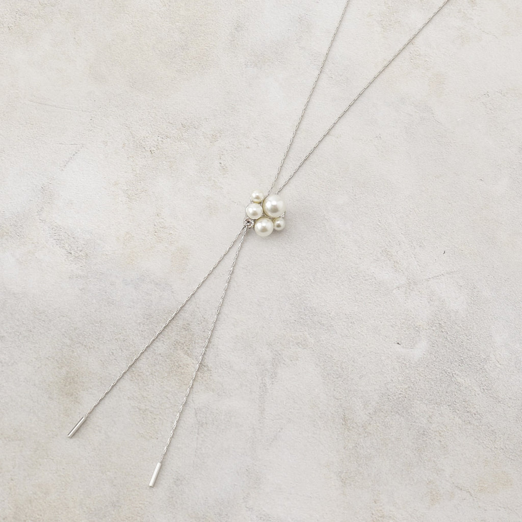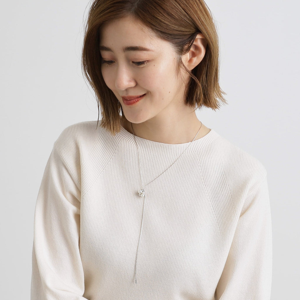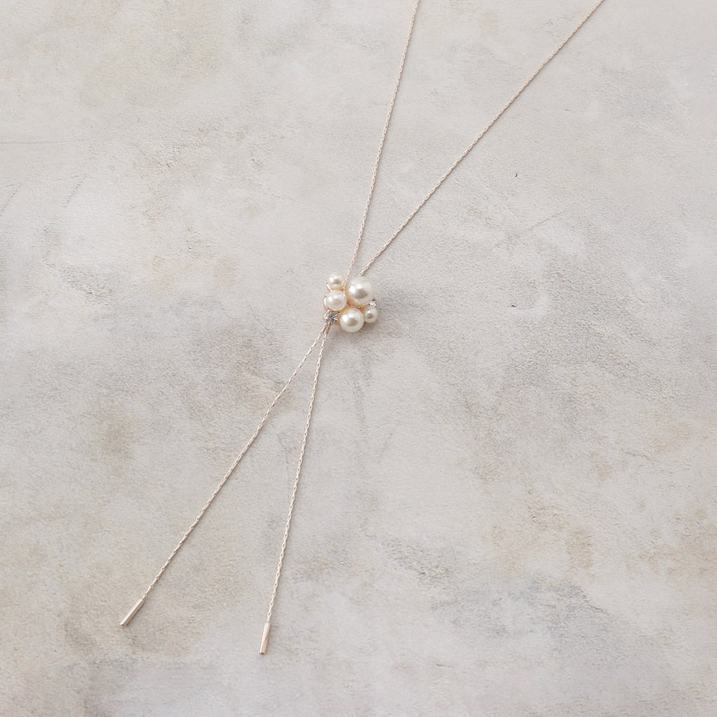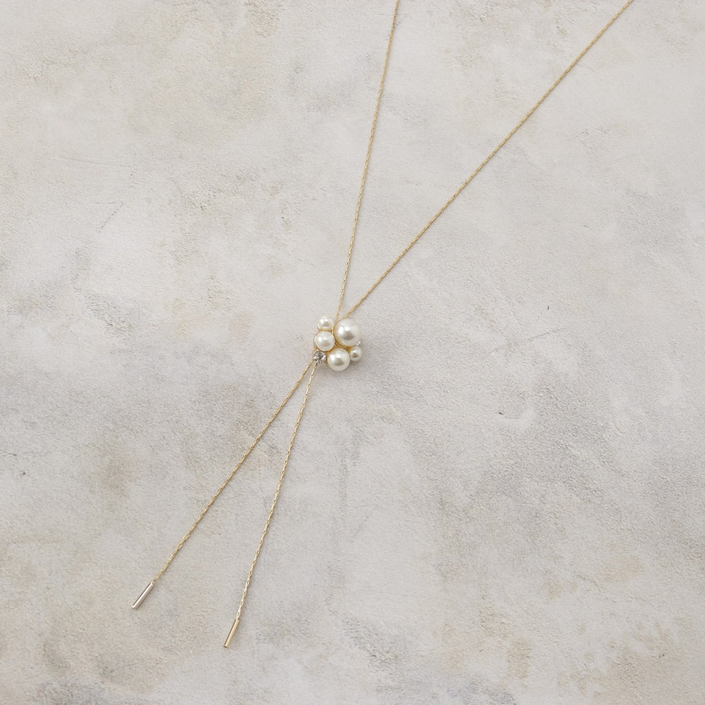 將假珍珠鋪滿的滑動配件與纖細設計的鏈條結合的項鍊,佩戴後即可展現出優雅的風格。