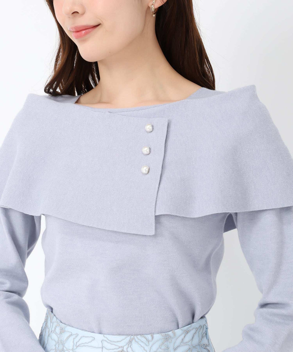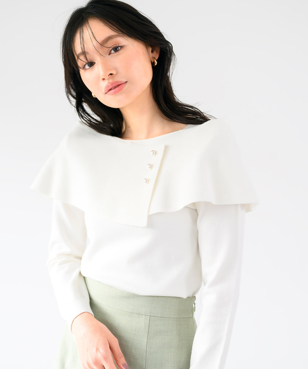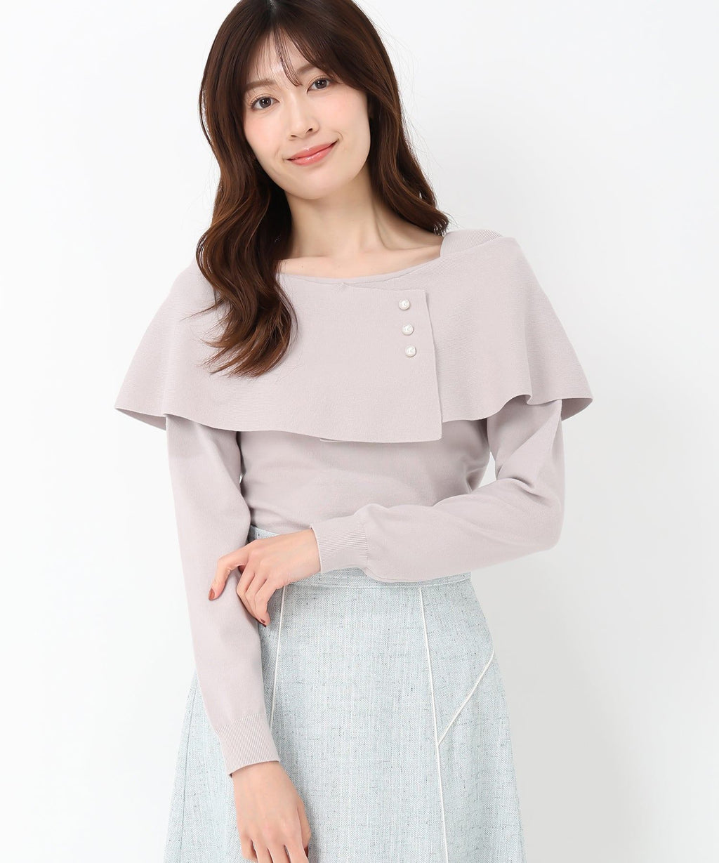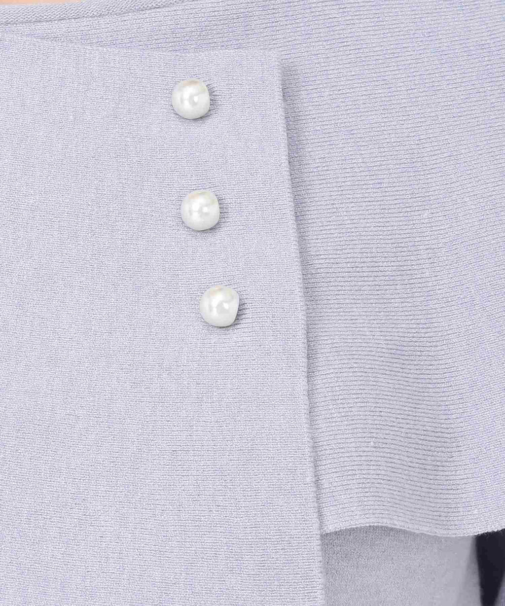 不對稱的斗篷上裝飾著珍珠鈕扣的針織品。