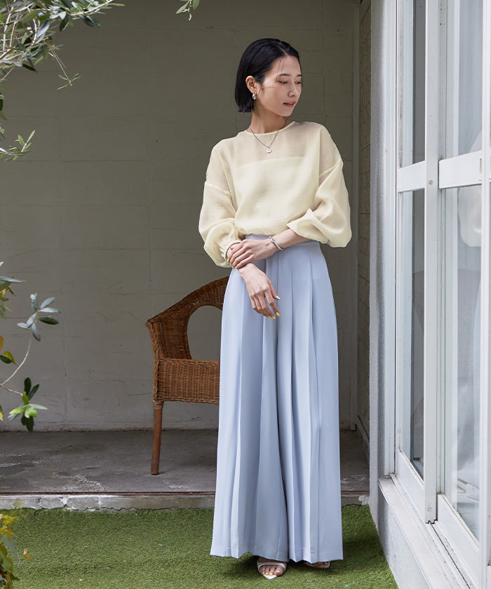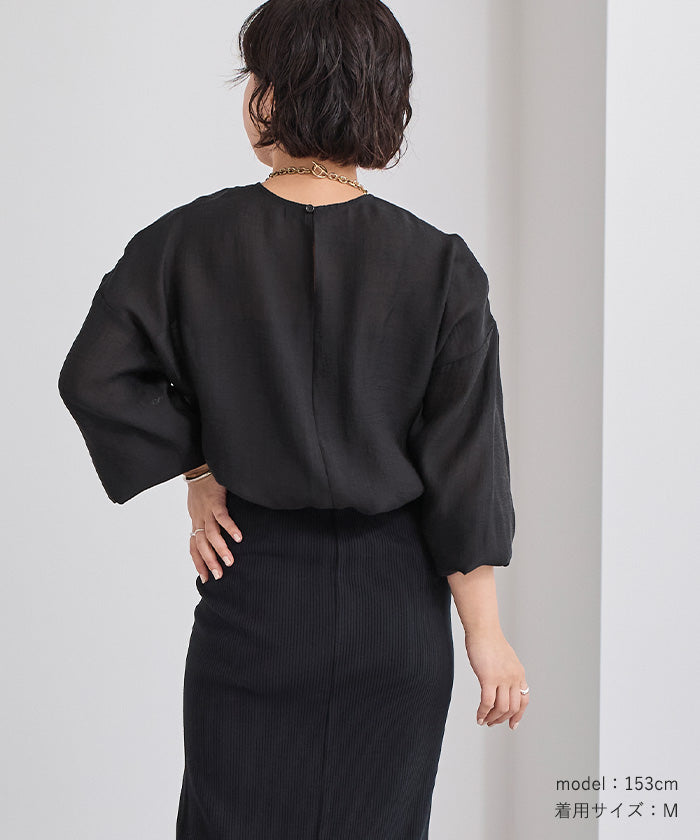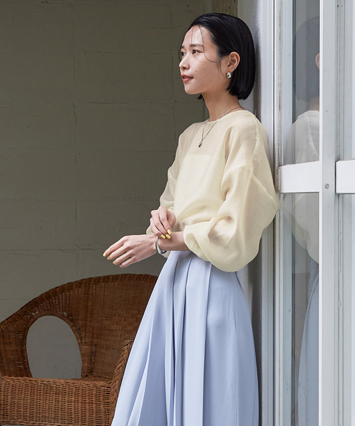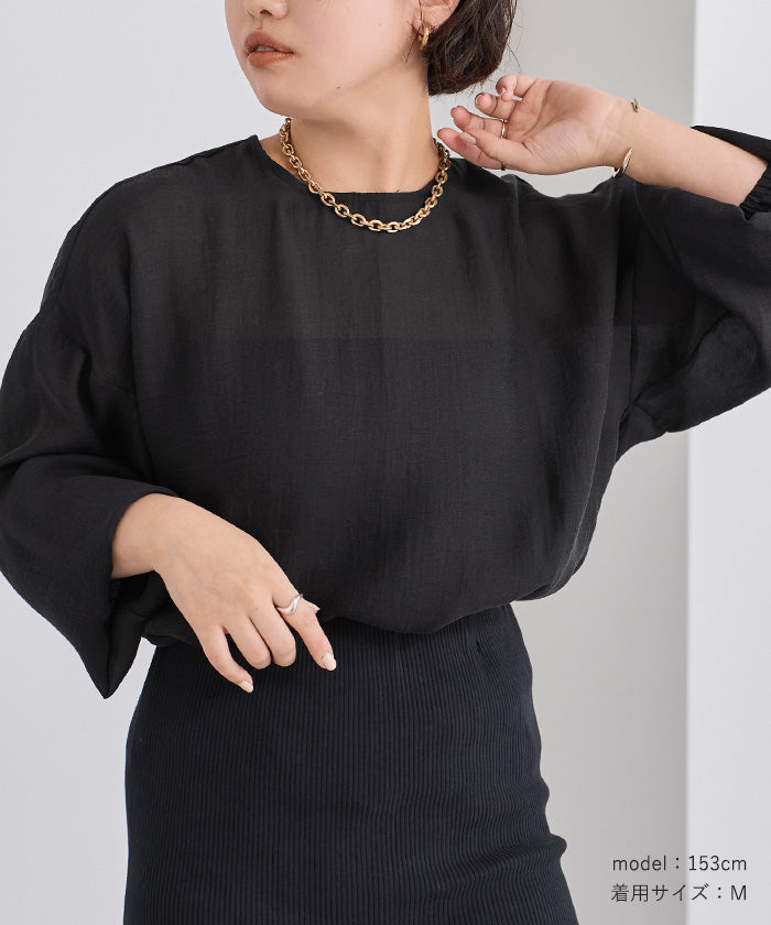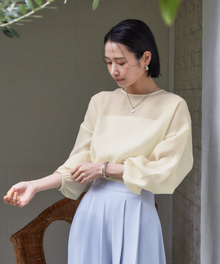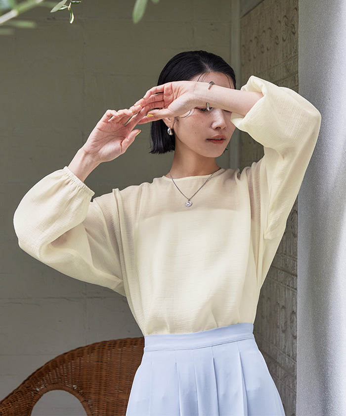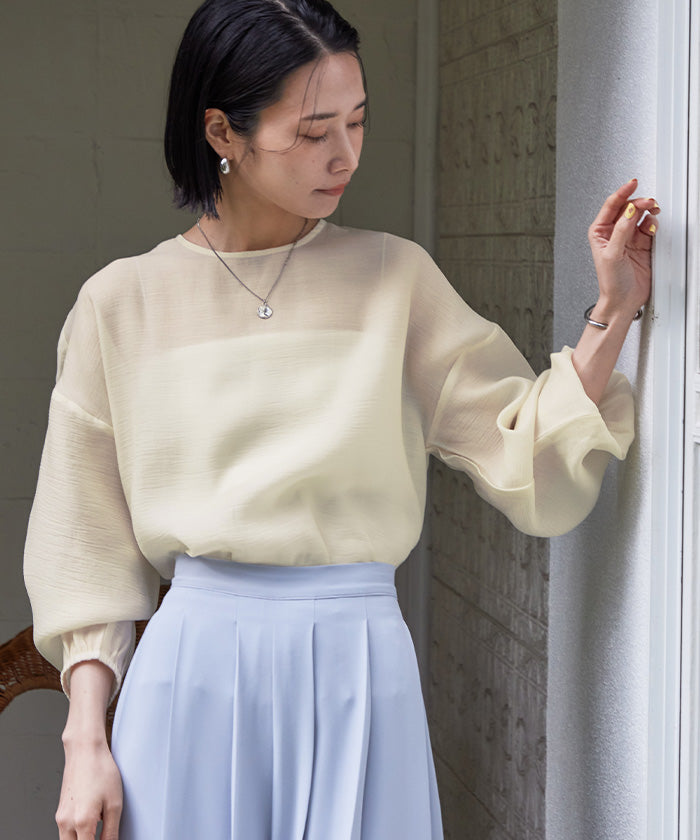 透視材質帶來春夏的印象,寬鬆版型的襯衫。
