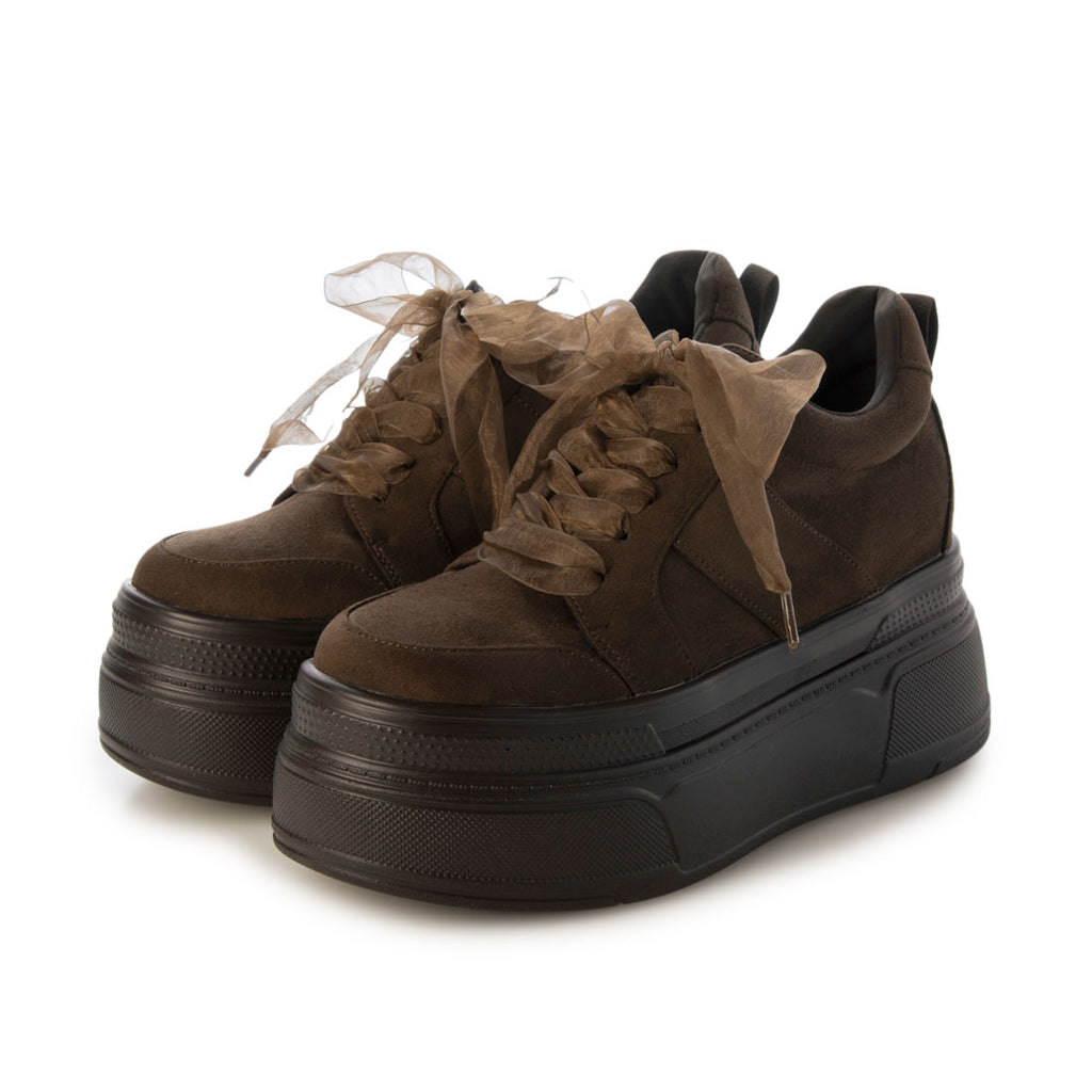 從XS尺寸到LL尺寸的尺寸展開!豐富的體積感為搭配增添層次感的厚底運動鞋。由於厚底鞋底幾乎沒有高低差,因此可以輕鬆打造身形◎柔軟的薄紗鞋帶設計,讓女性穿著也很合適,並且容易搭配裙子。