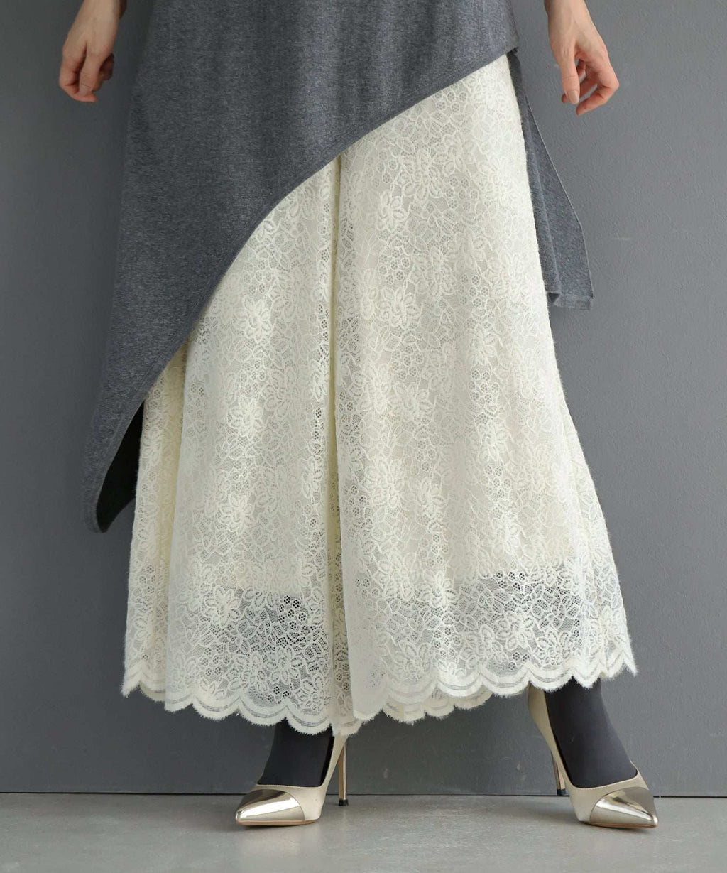 重疊穿著也不會顯得沉重,裙擺的透視感帶來輕盈感,雖然想再加長一點,但也能實現◎不經意間能優雅地隱藏雙腿◎