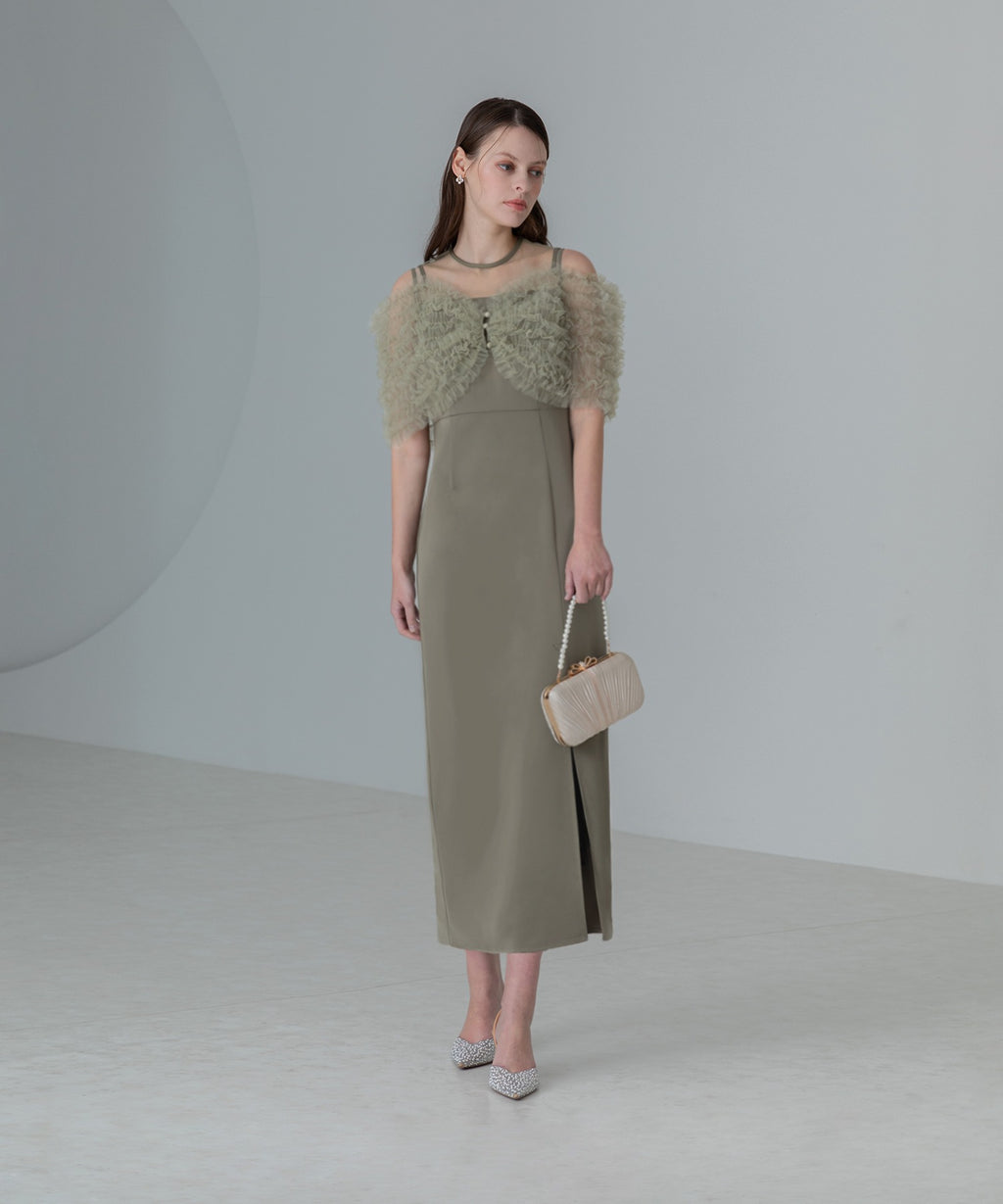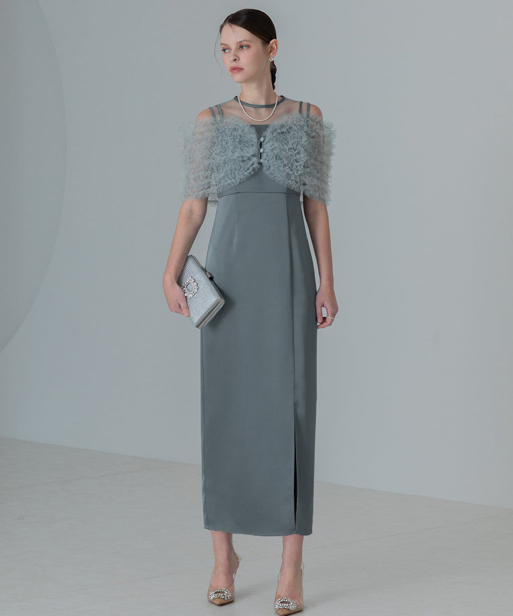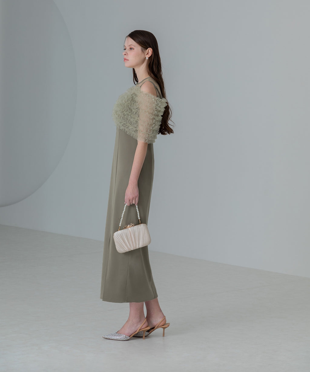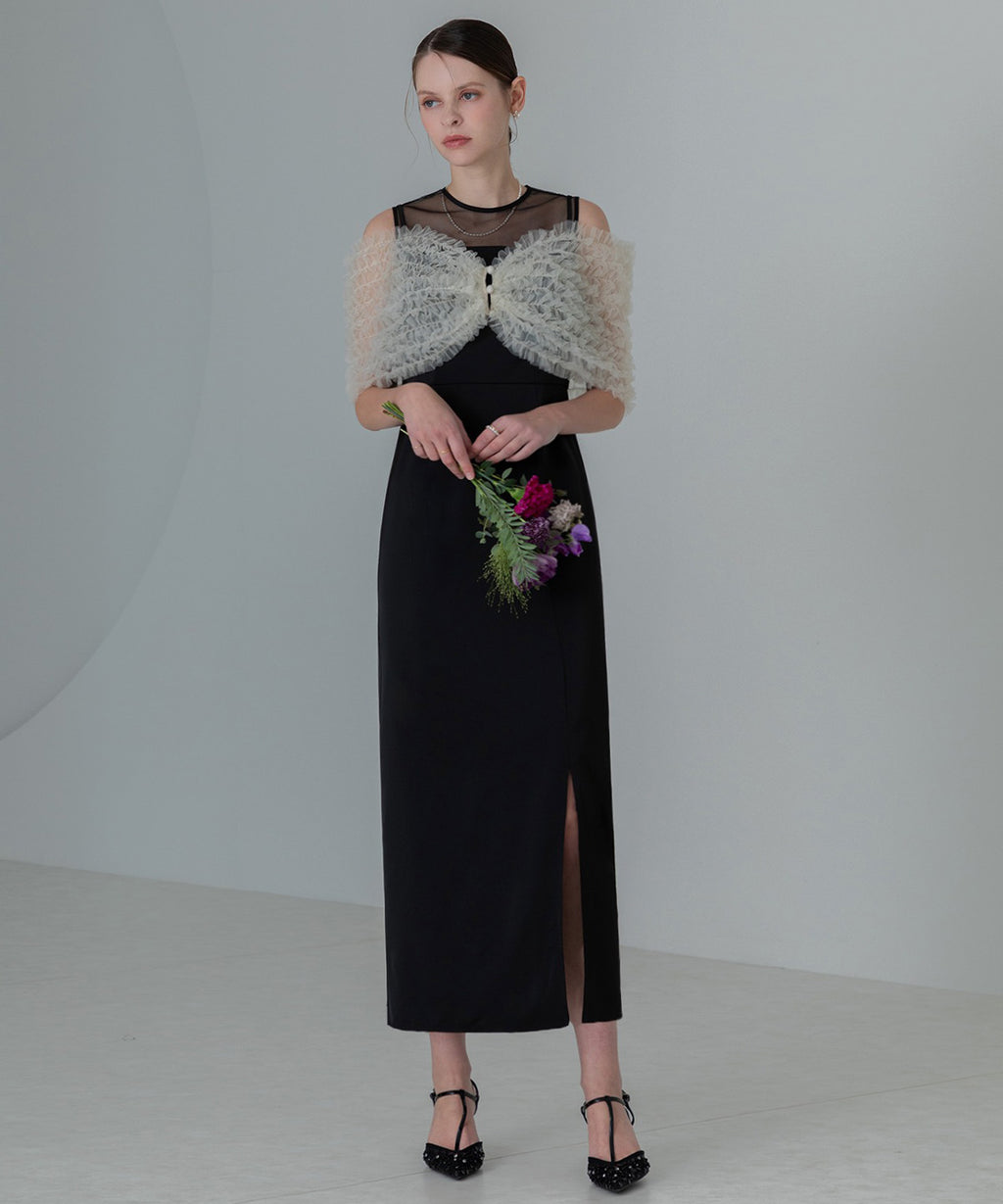 透過在胸口部分採用透明材質,營造出輕盈感,展現出優雅的印象。