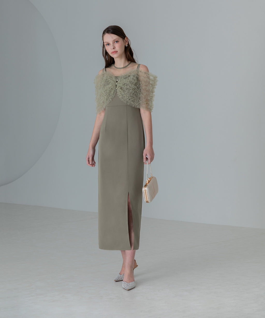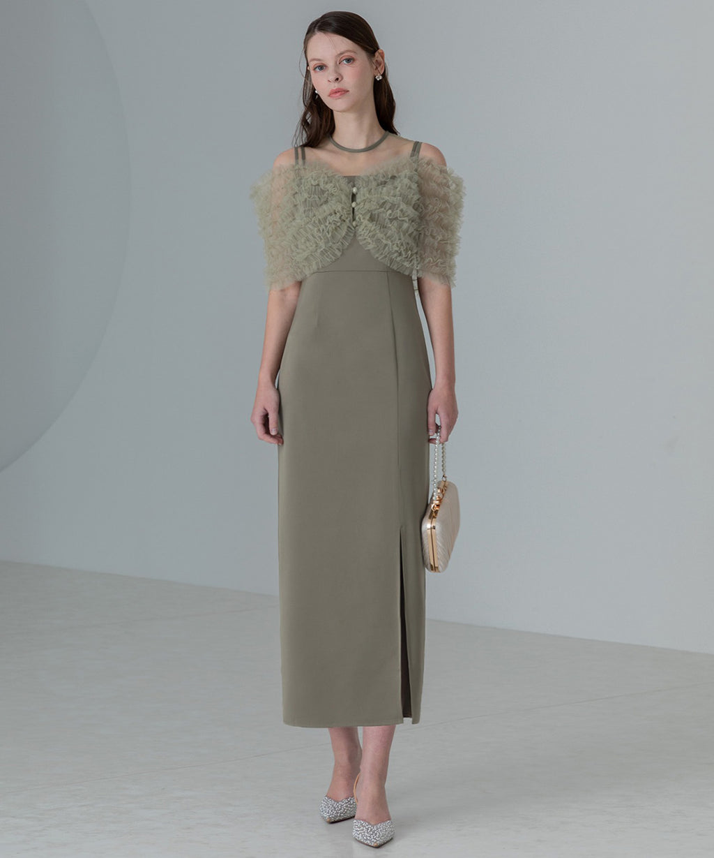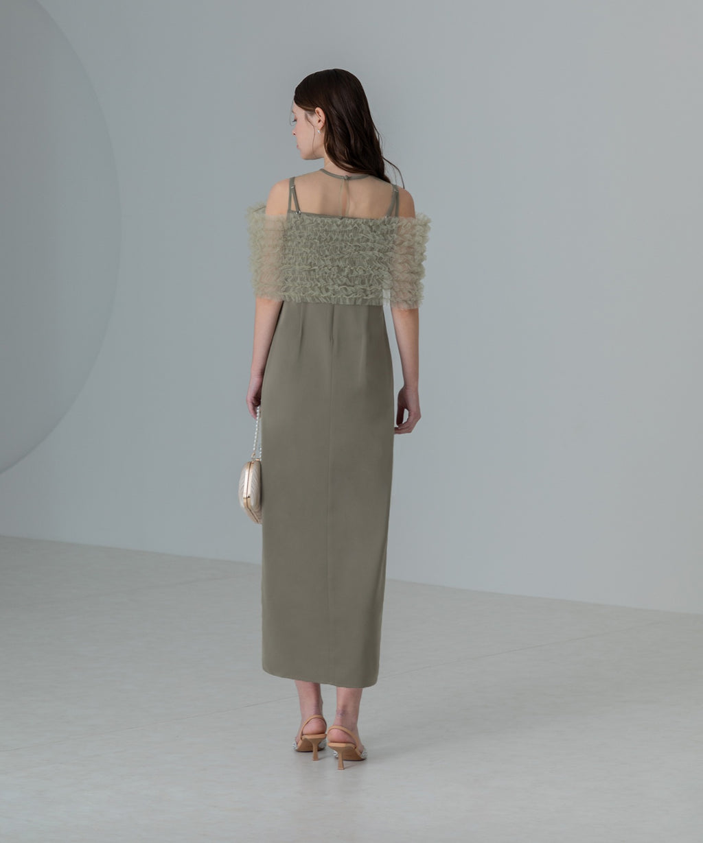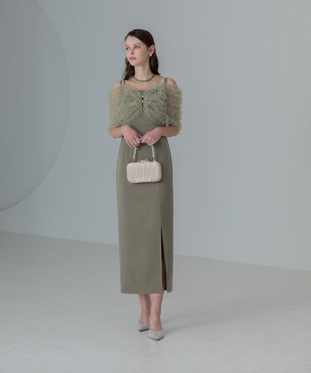 透過在胸口部分採用透明材質,營造出輕盈感,展現出優雅的印象。