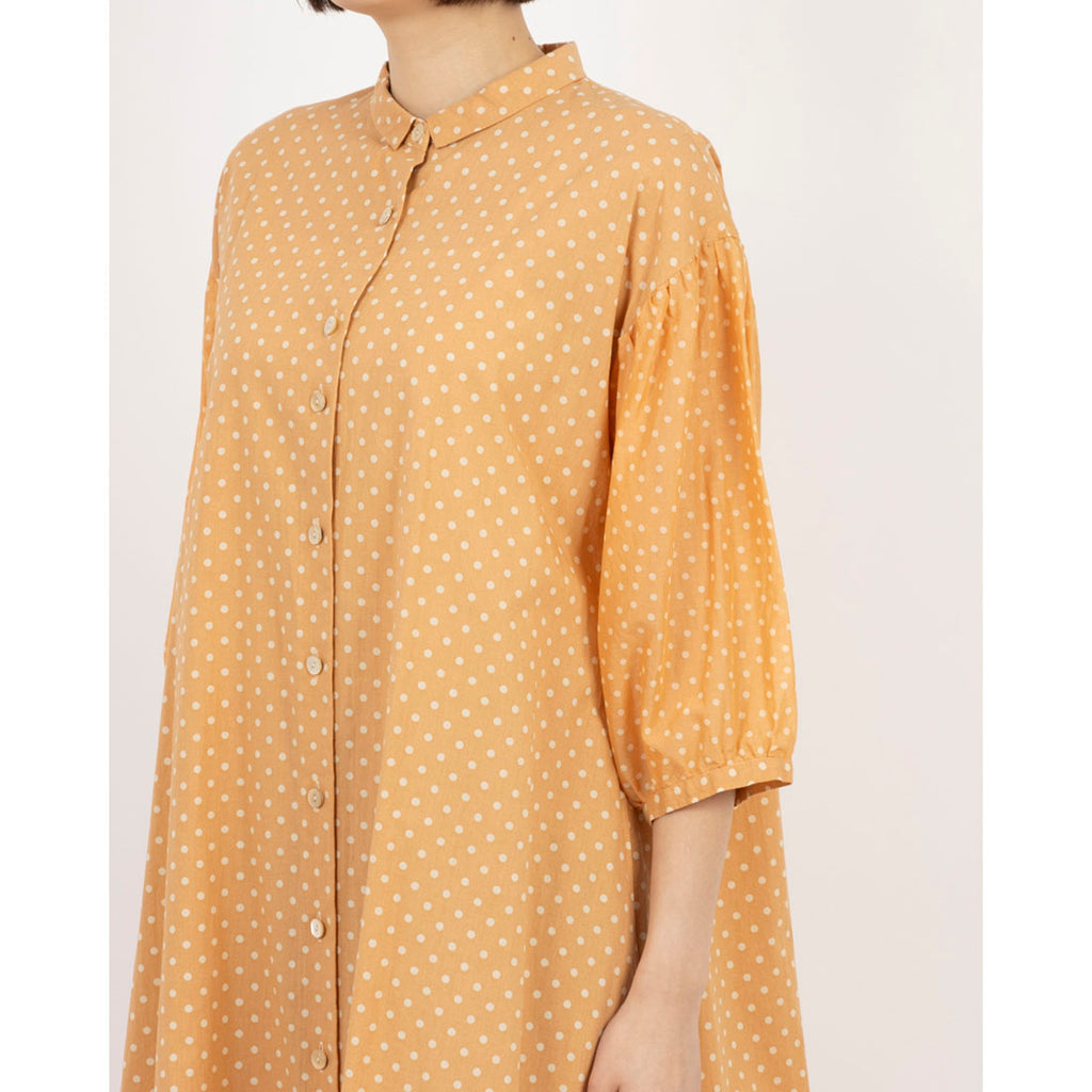 身頃採用60支羅紋布,蓬鬆的袖子則使用80支羅紋布,展現輕盈感的襯衫連衣裙。