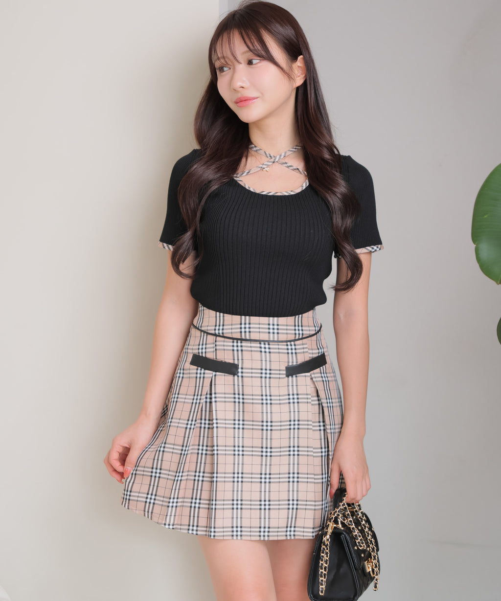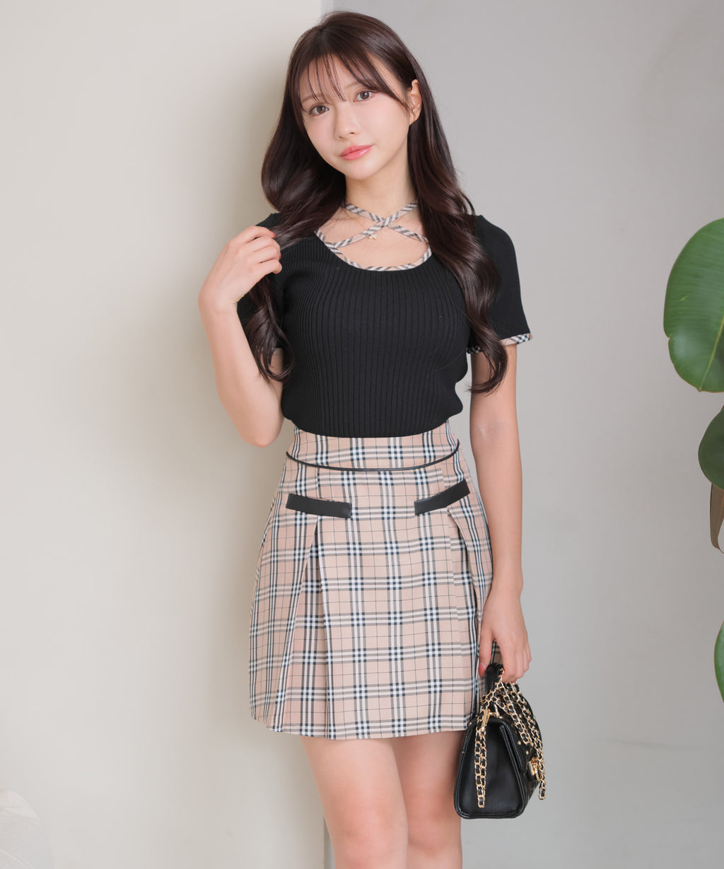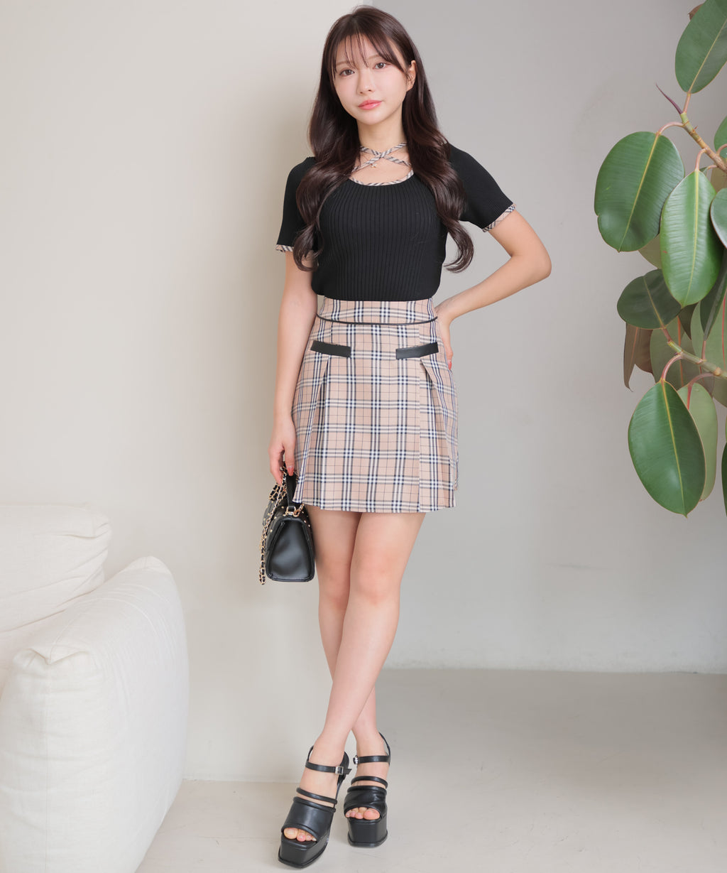 ・搭配使用相同布料的《000453010260 / 格紋邊條半肋針織衫》是推薦的搭配!
