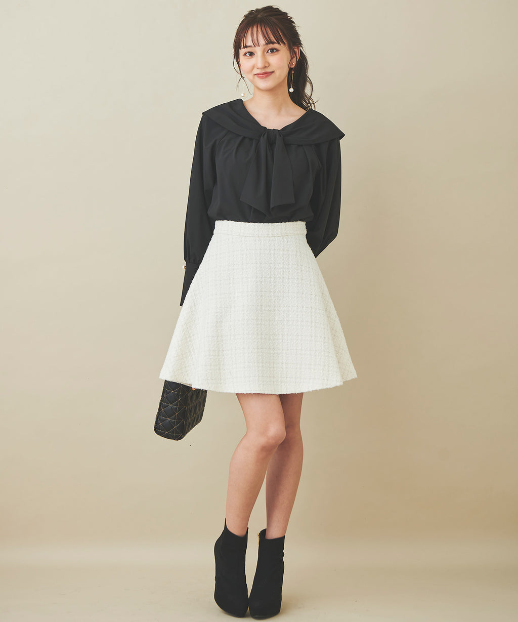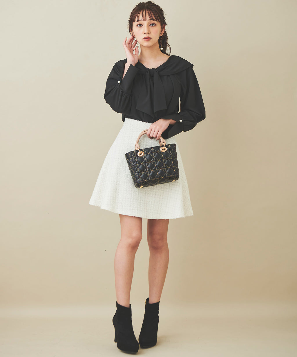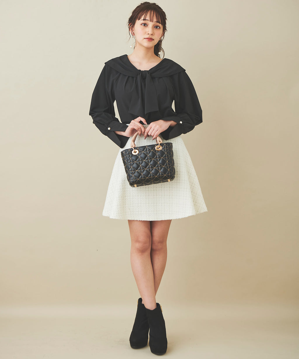 黑色搭配藏青色或炭灰色的MIX,以及象牙白搭配銀色亮片線的兩色展開,方便搭配。