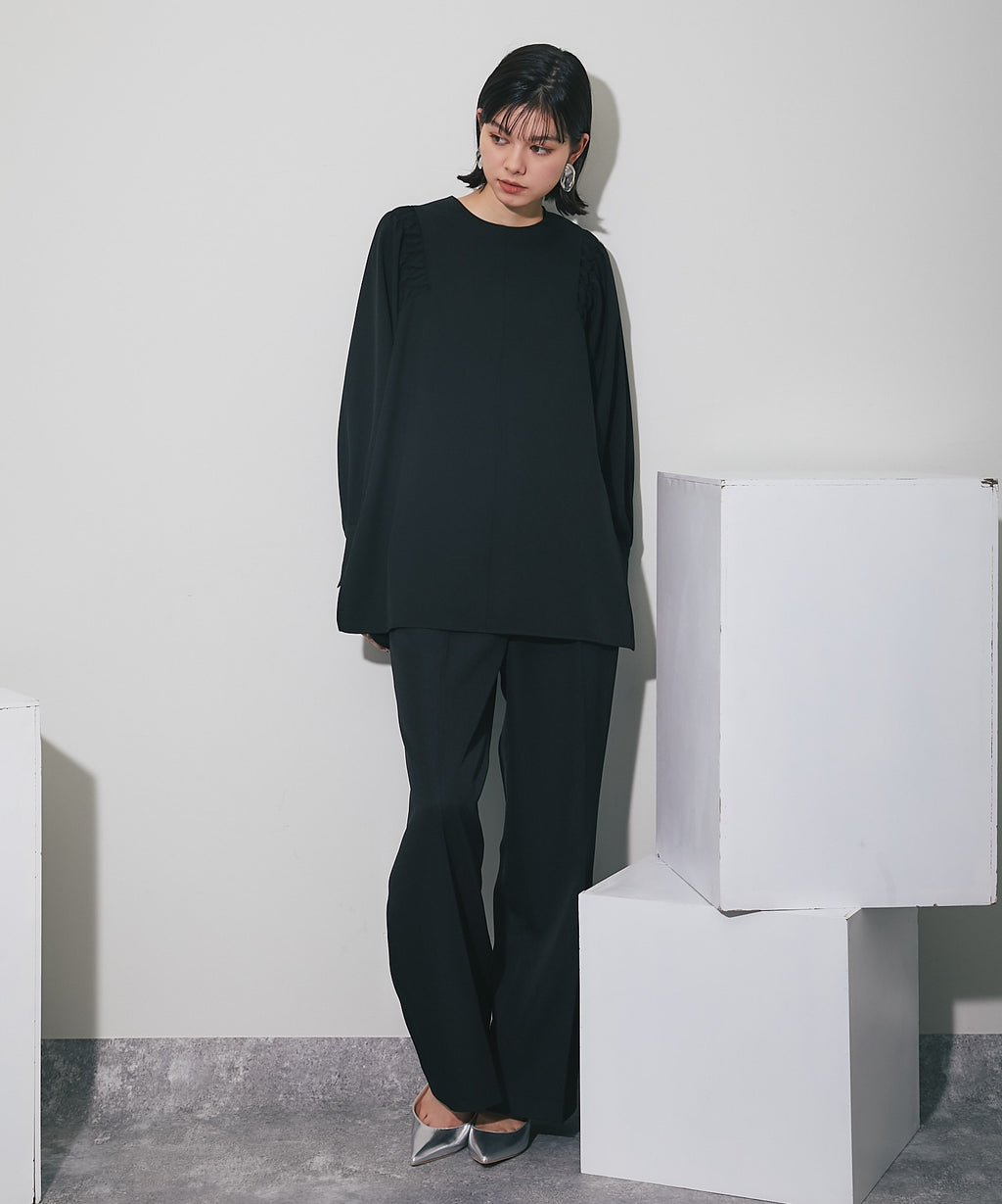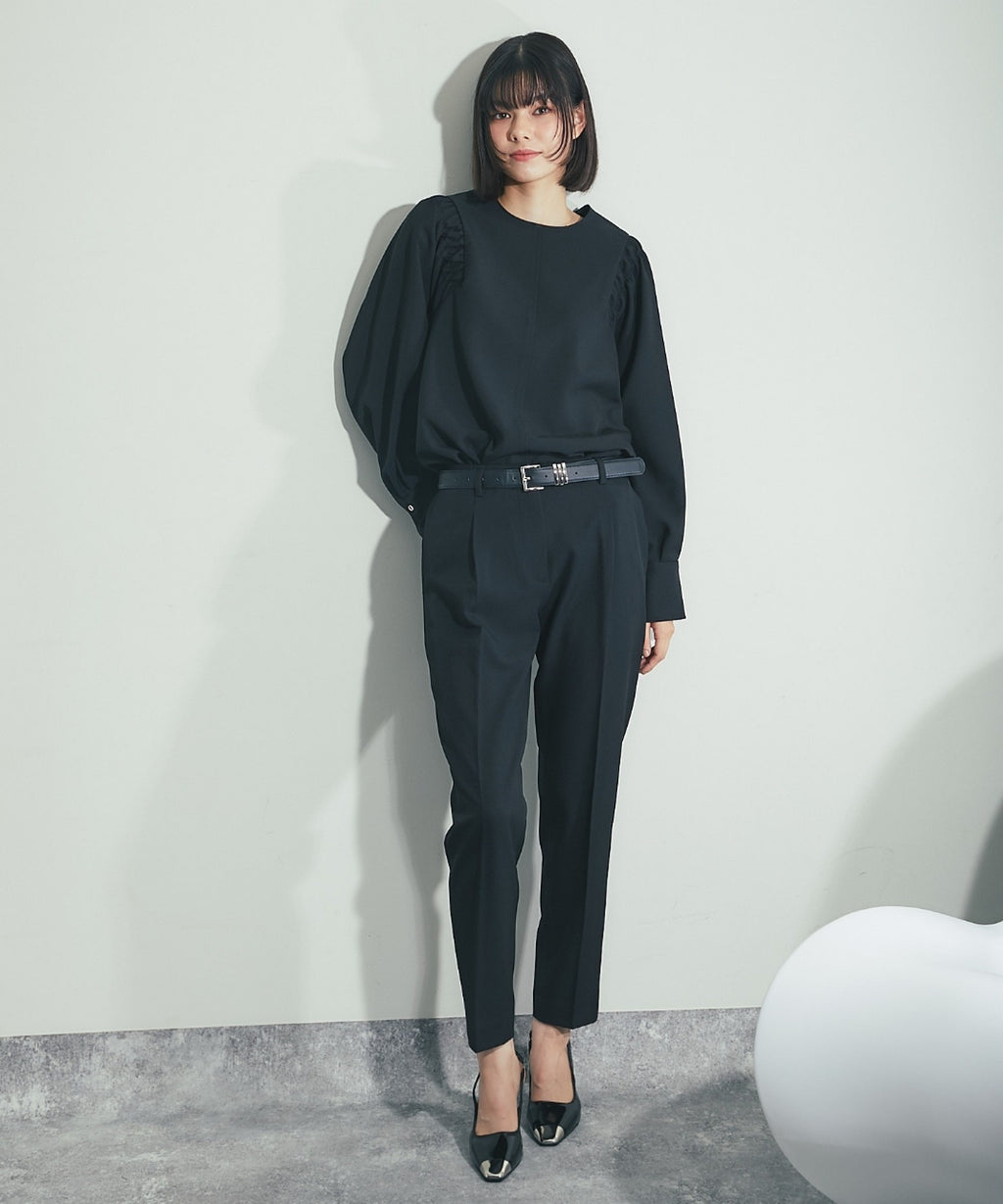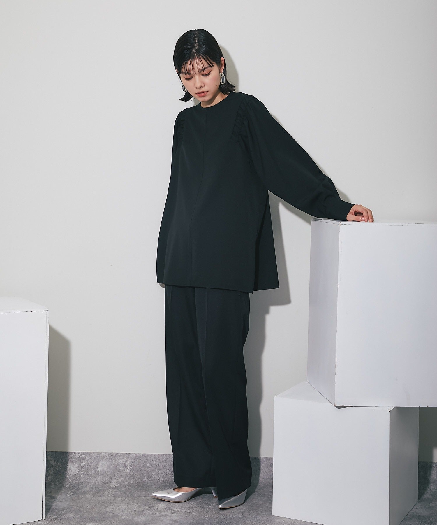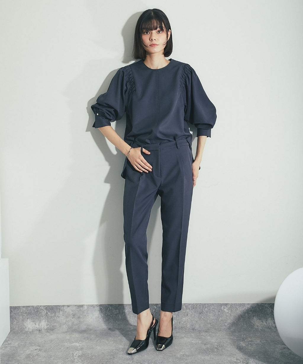 ●因為是稍微過大的輪廓,所以不僅可以搭配寬鬆的下身,輕鬆的造型,還推薦搭配修身的錐形褲,增添層次感的造型。