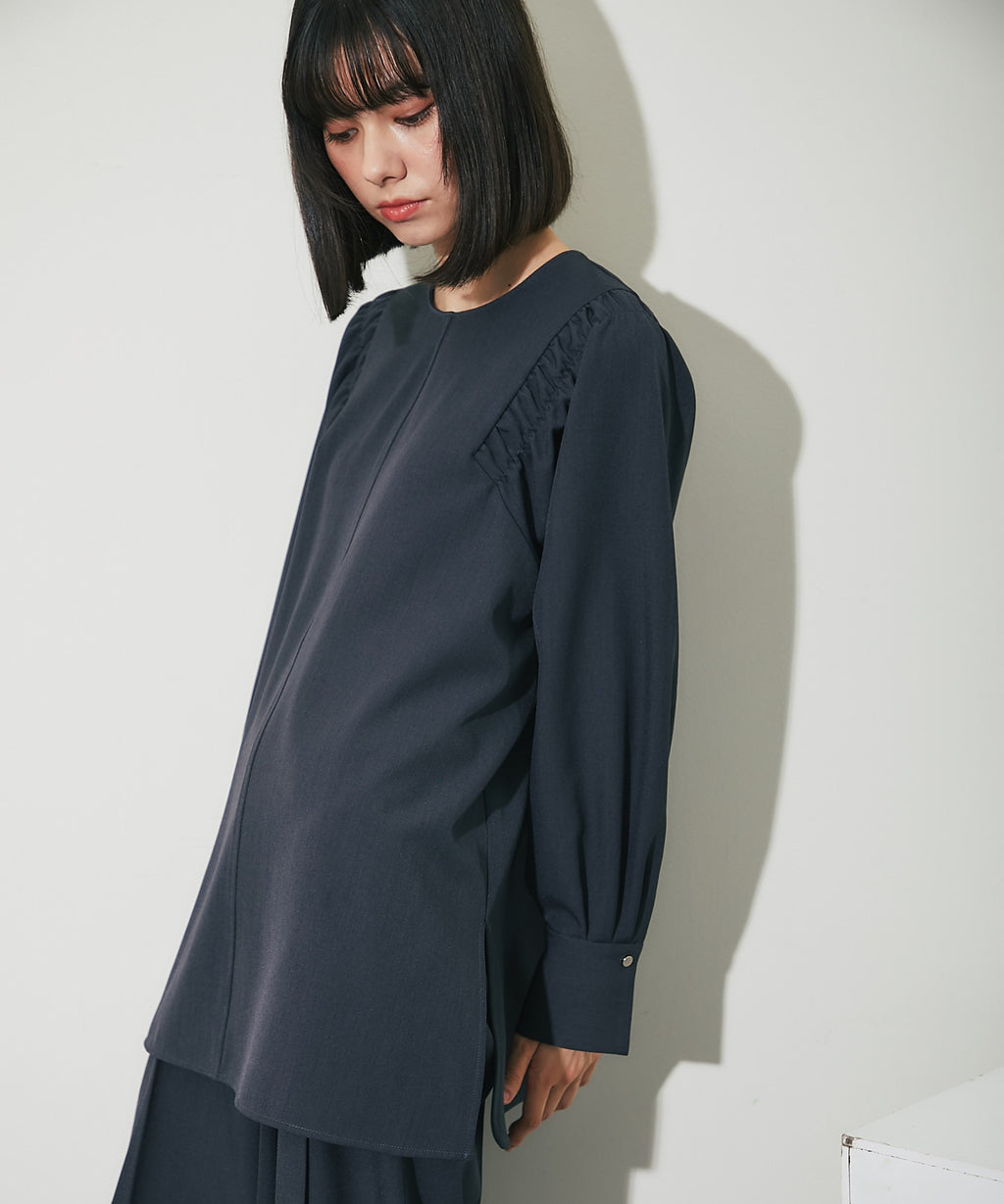 ●背面施加的銀色拉鍊增添了奢華感,無論從哪個角度看都是完美無瑕的剪影襯衫。