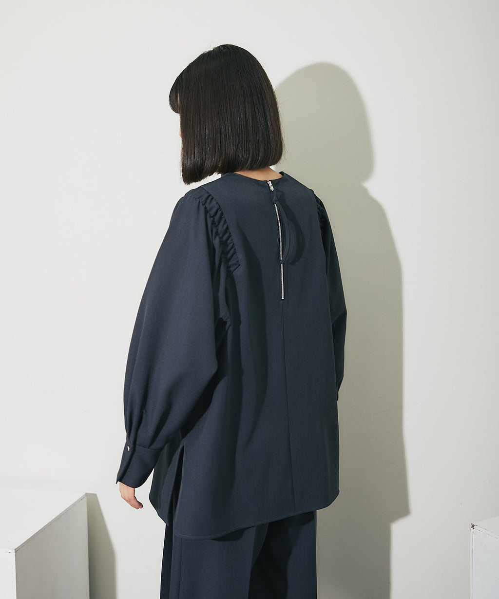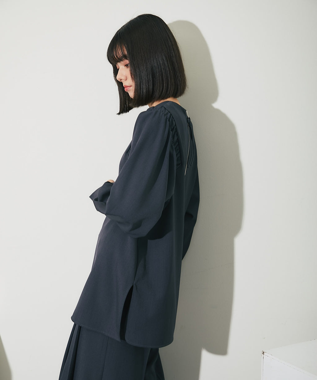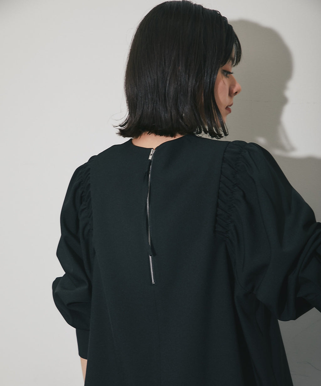 微笑蘭 SMILE ORCHID 背部拉鍊肩部聚攏蓬鬆袖上衣