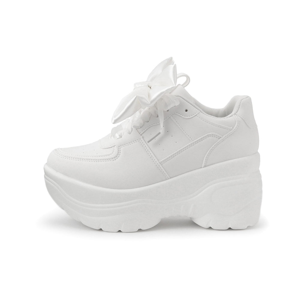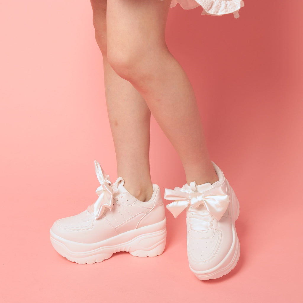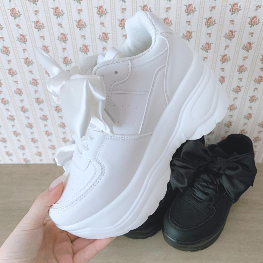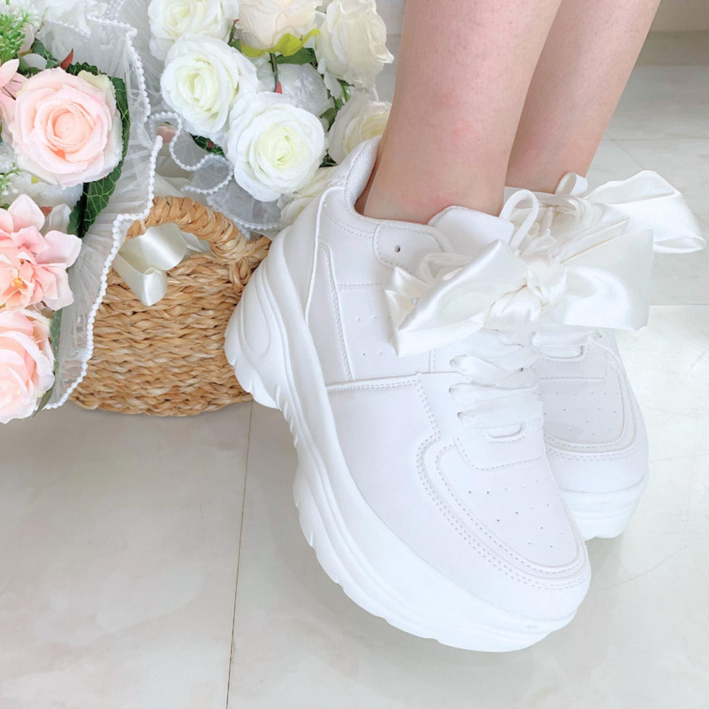 簡約的厚底運動鞋上附有大蝴蝶結的可愛運動鞋