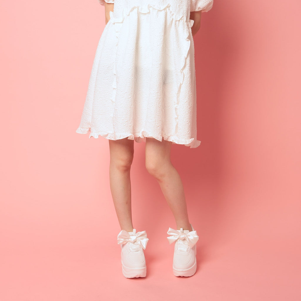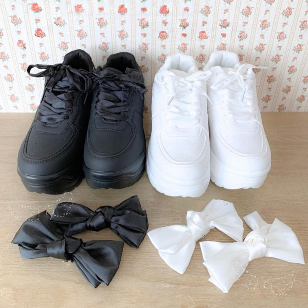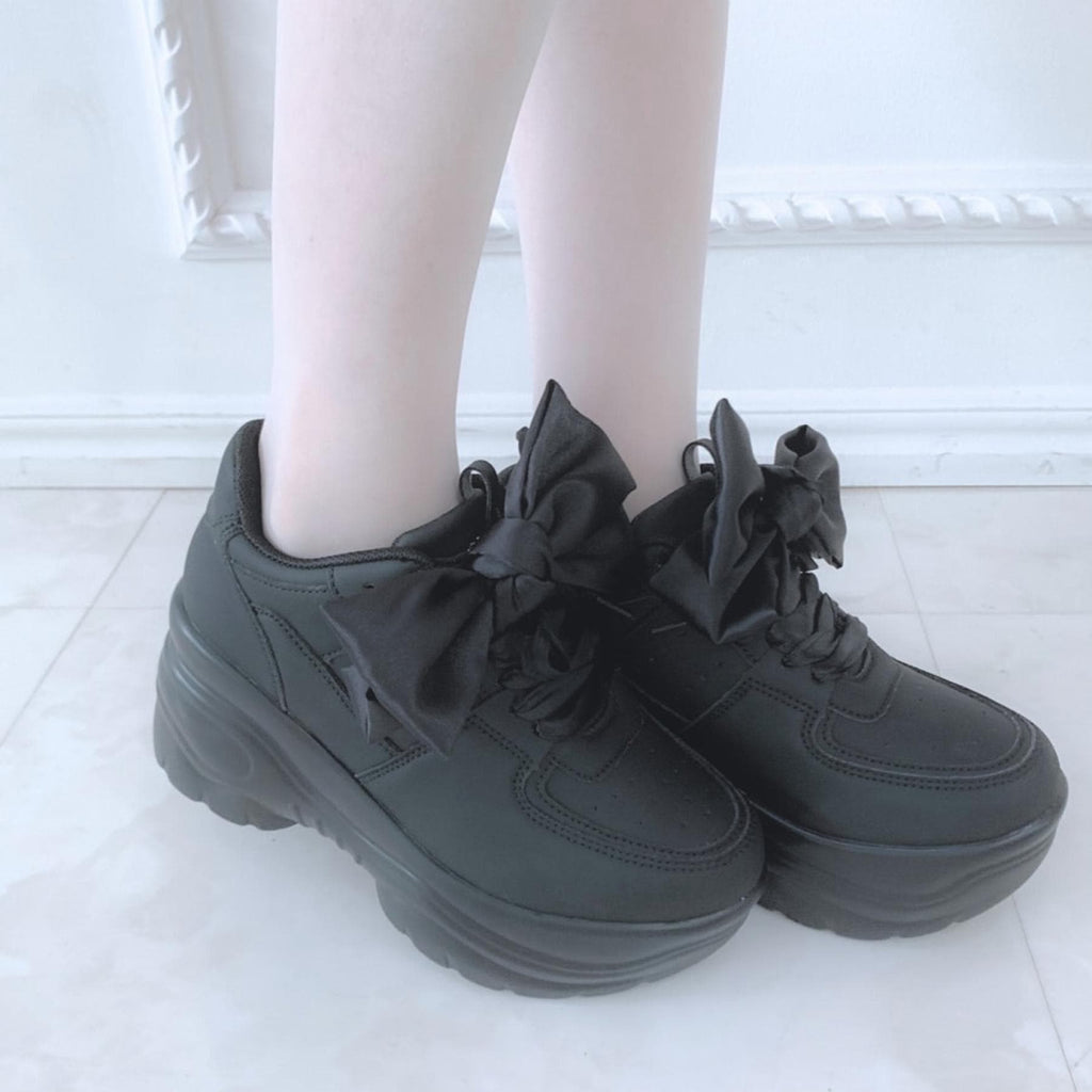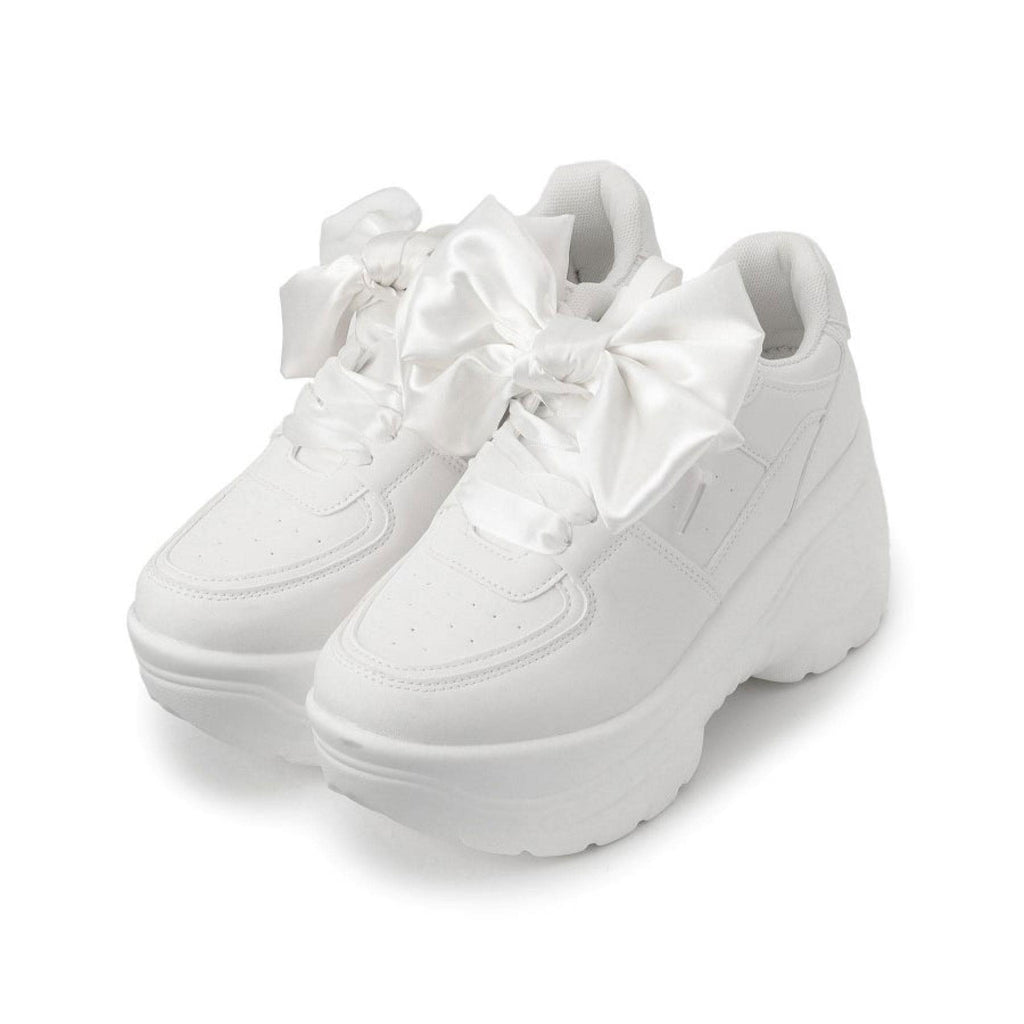 簡約的厚底運動鞋上附有大蝴蝶結的可愛運動鞋