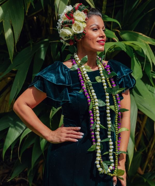 毛伊島代表的玫瑰(洛克拉尼)長項鍊。當然可以單串使用,也推薦雙串或三串使用。優雅搖曳的長項鍊能讓舞蹈更加柔美。
