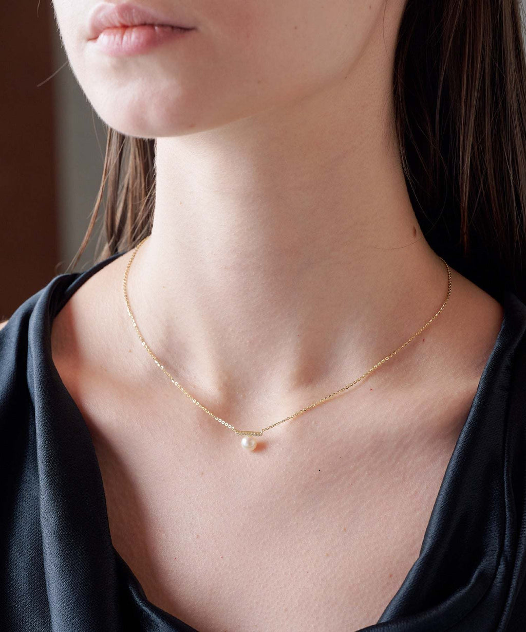 珍珠為頸部增添了優雅,靜靜地依偎著的鋯石增添了低調的華麗感。