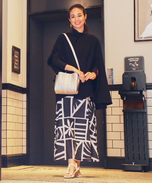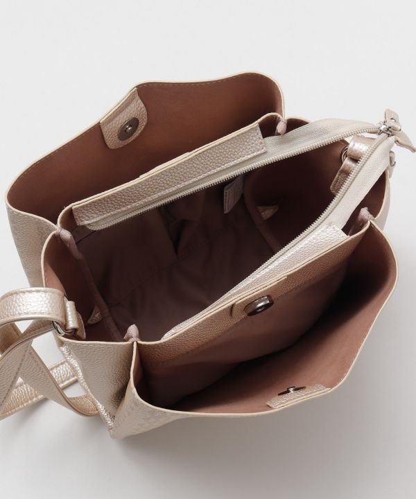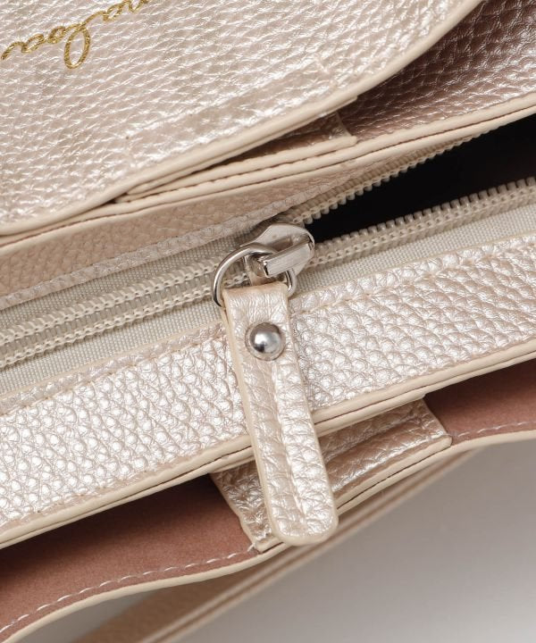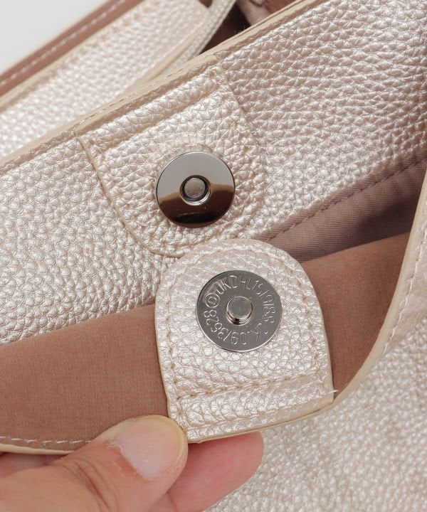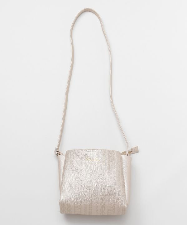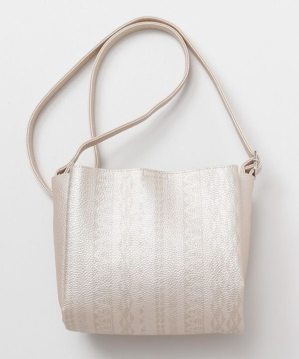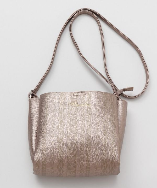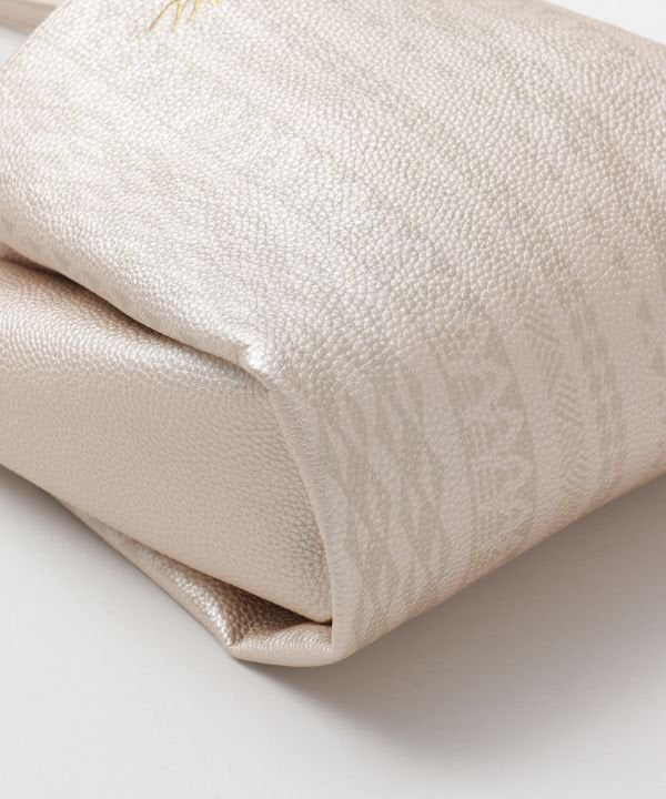 光澤感的合成皮革上印有オヘカパラ圖案的肩背包。正面和背面的口袋可用磁扣開關,方便快速取出內部物品,而中間的口袋則配有拉鍊,可以放置重要物品。肩帶可調整,具備手提包和肩背包的2WAY設計。