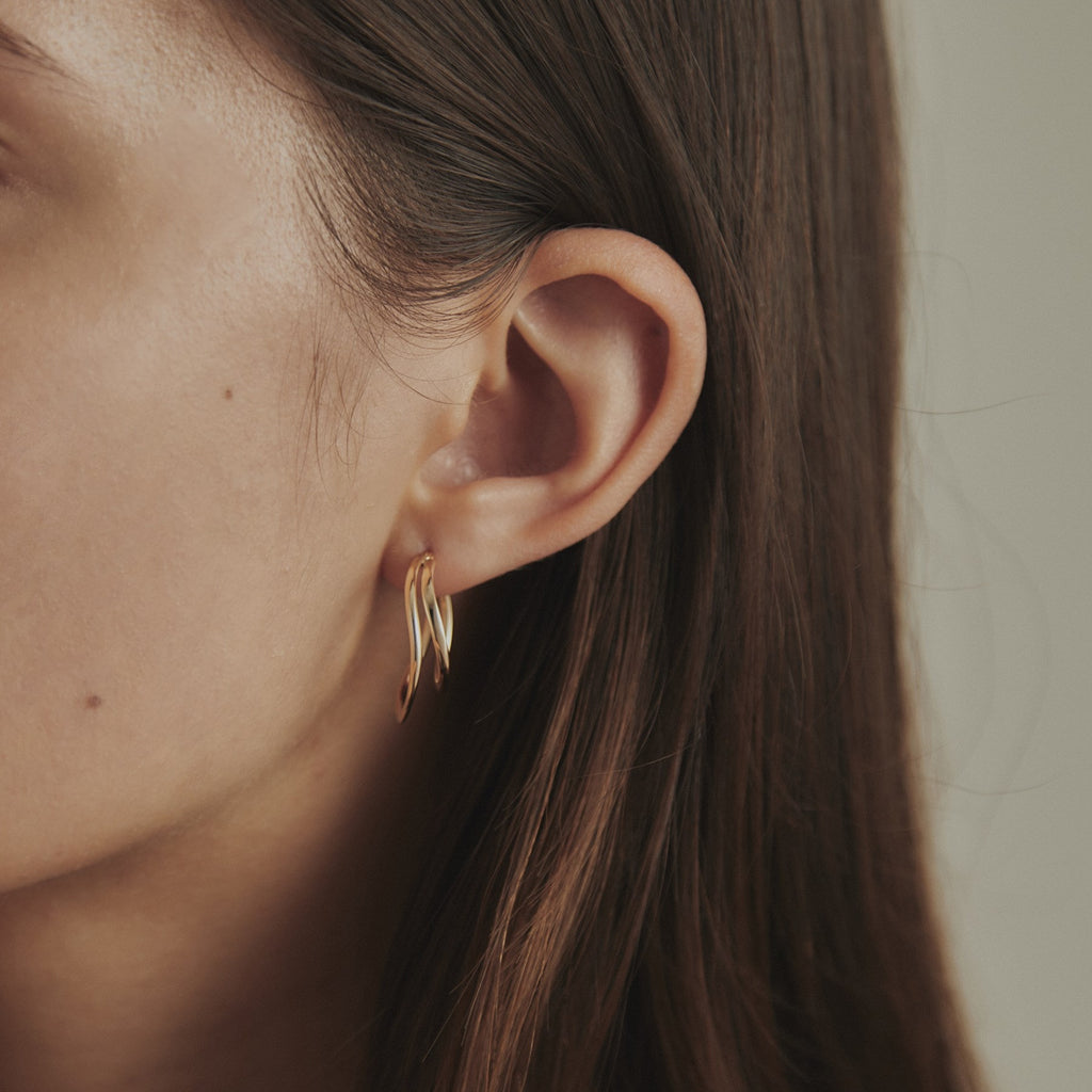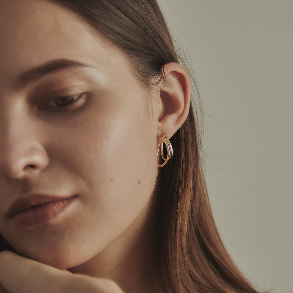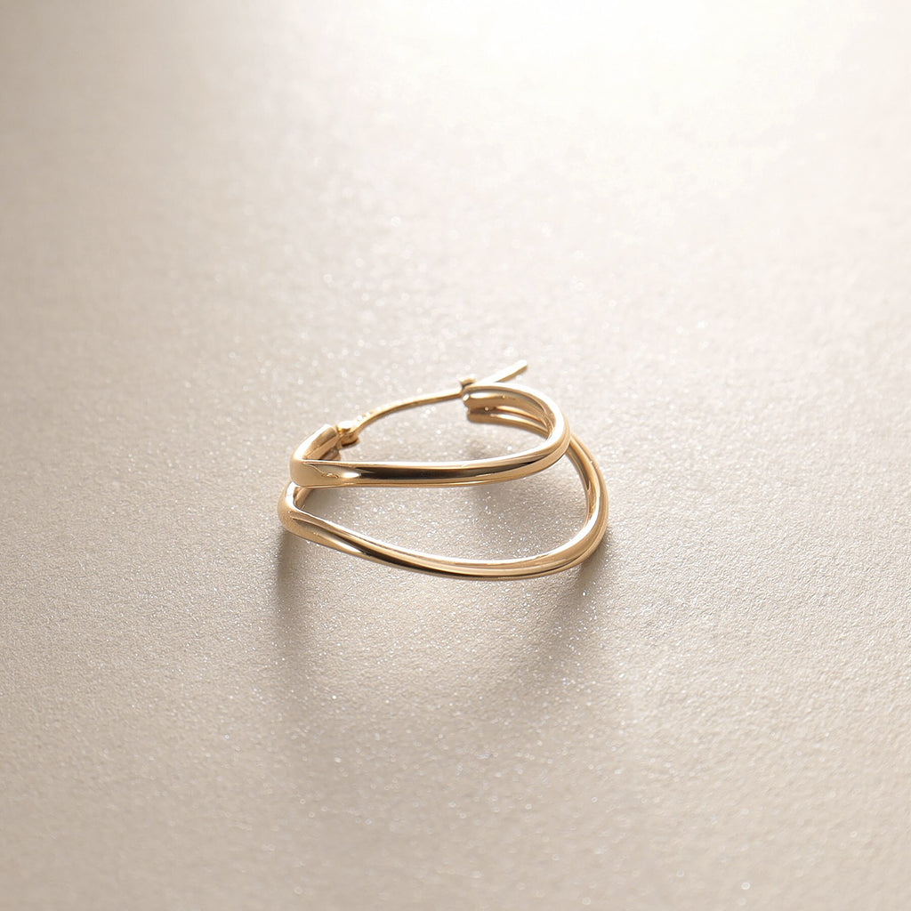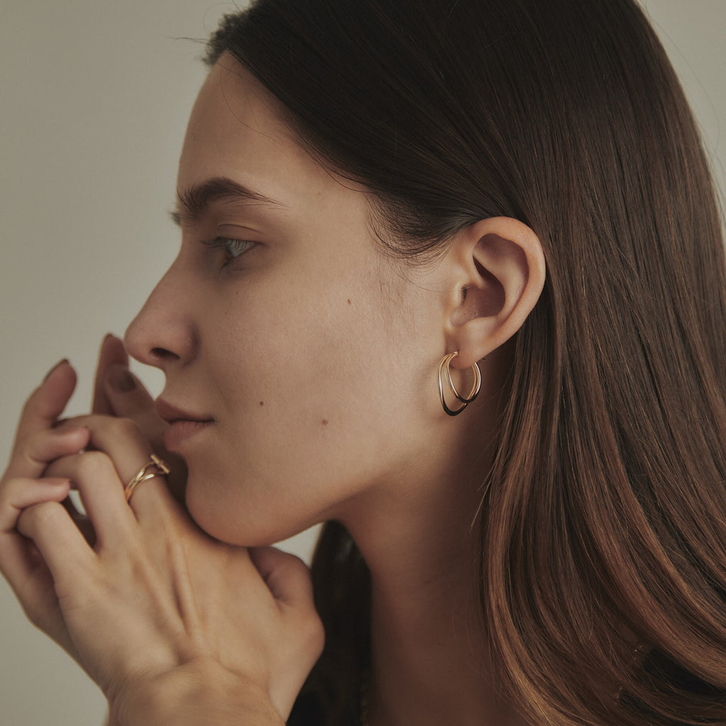 斷面變化的弧線設計,為耳畔帶來衝擊感的中空雙圈耳環。