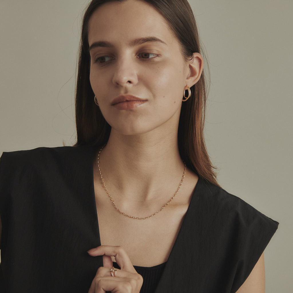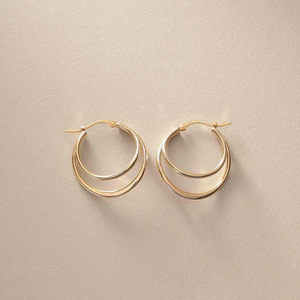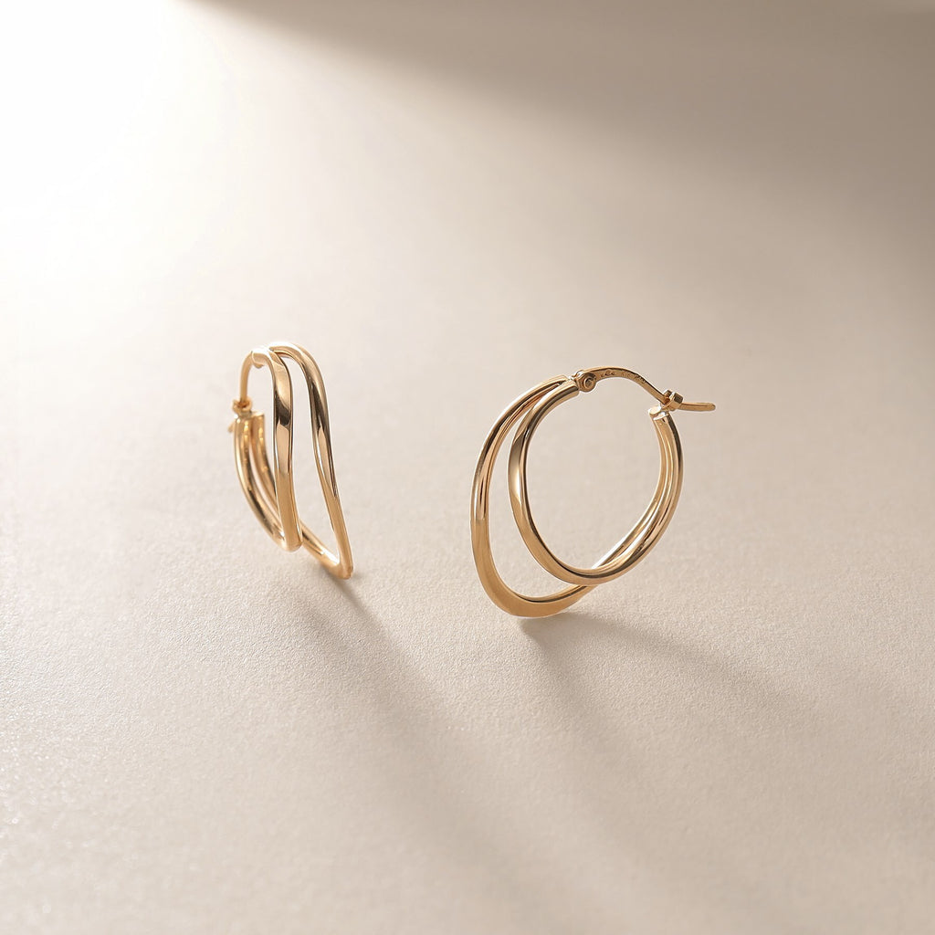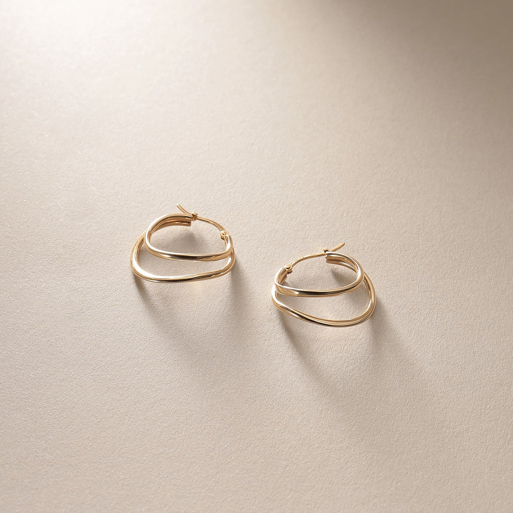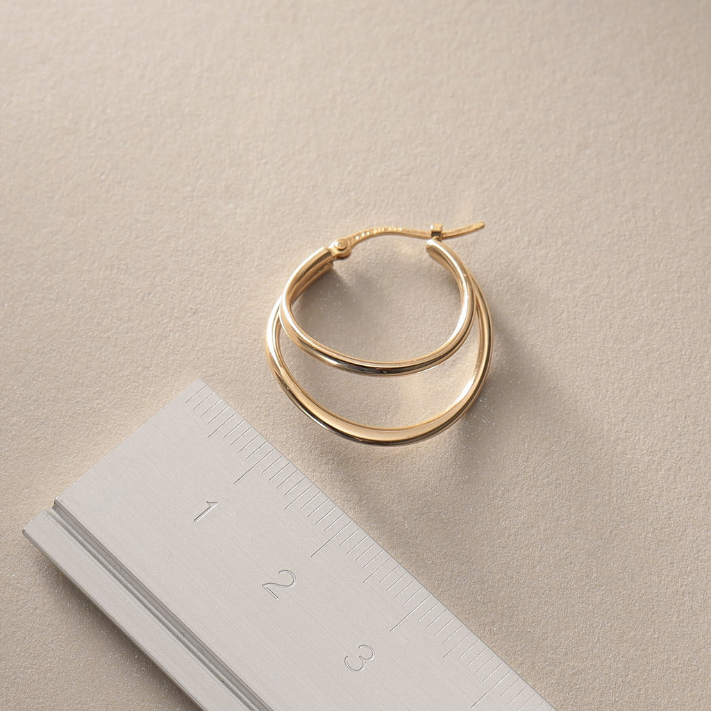 斷面變化的弧線設計,為耳畔帶來衝擊感的中空雙圈耳環。