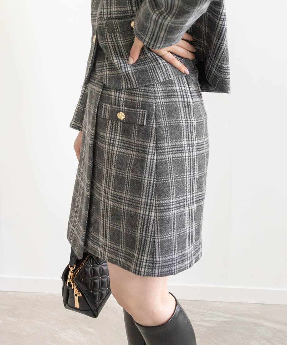 復古風格的金色扣子吸引目光,充滿潮流感的迷你裙。