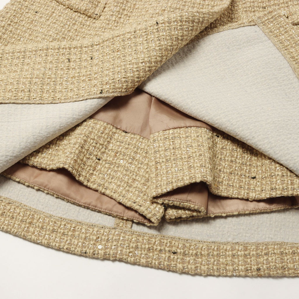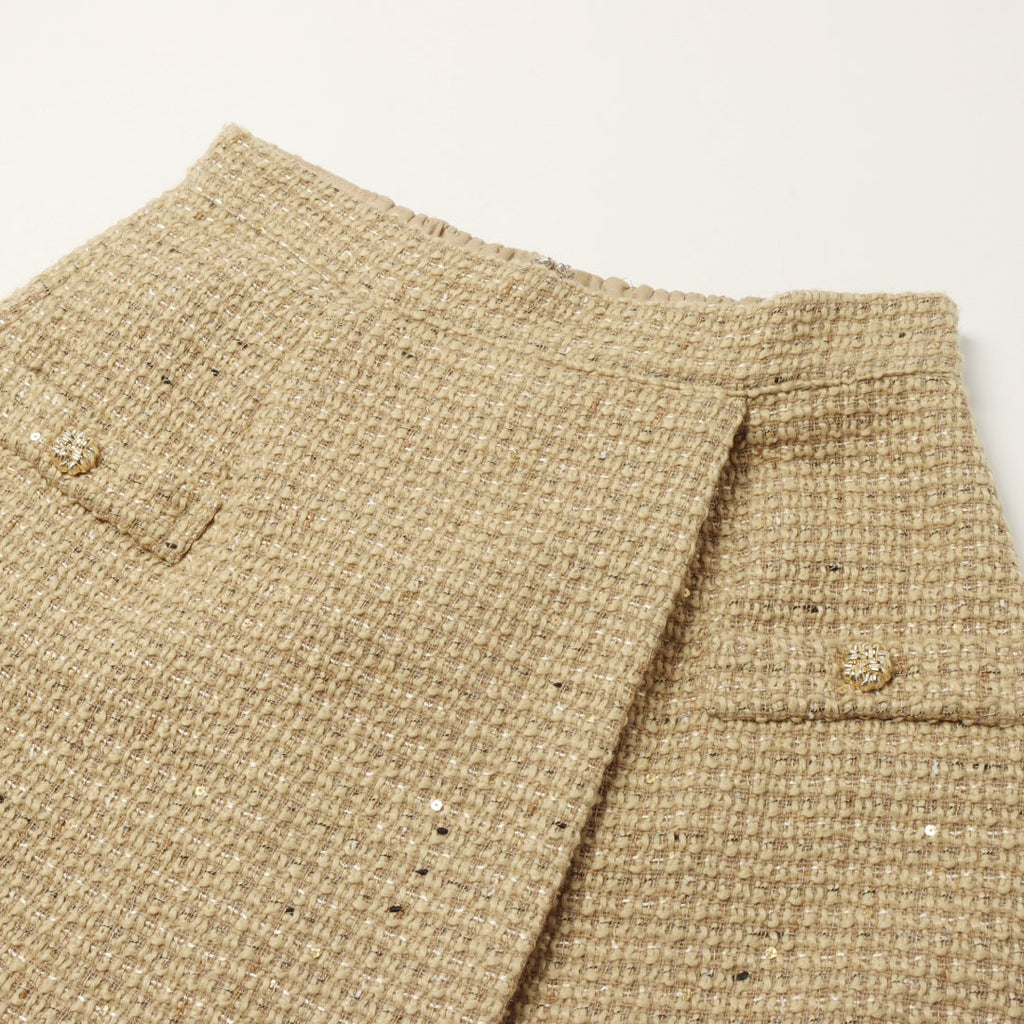 這是一件融合經典設計與充滿趣味的細節的單品,例如亮片呢絨布料、潮流格紋以及包覆式設計。