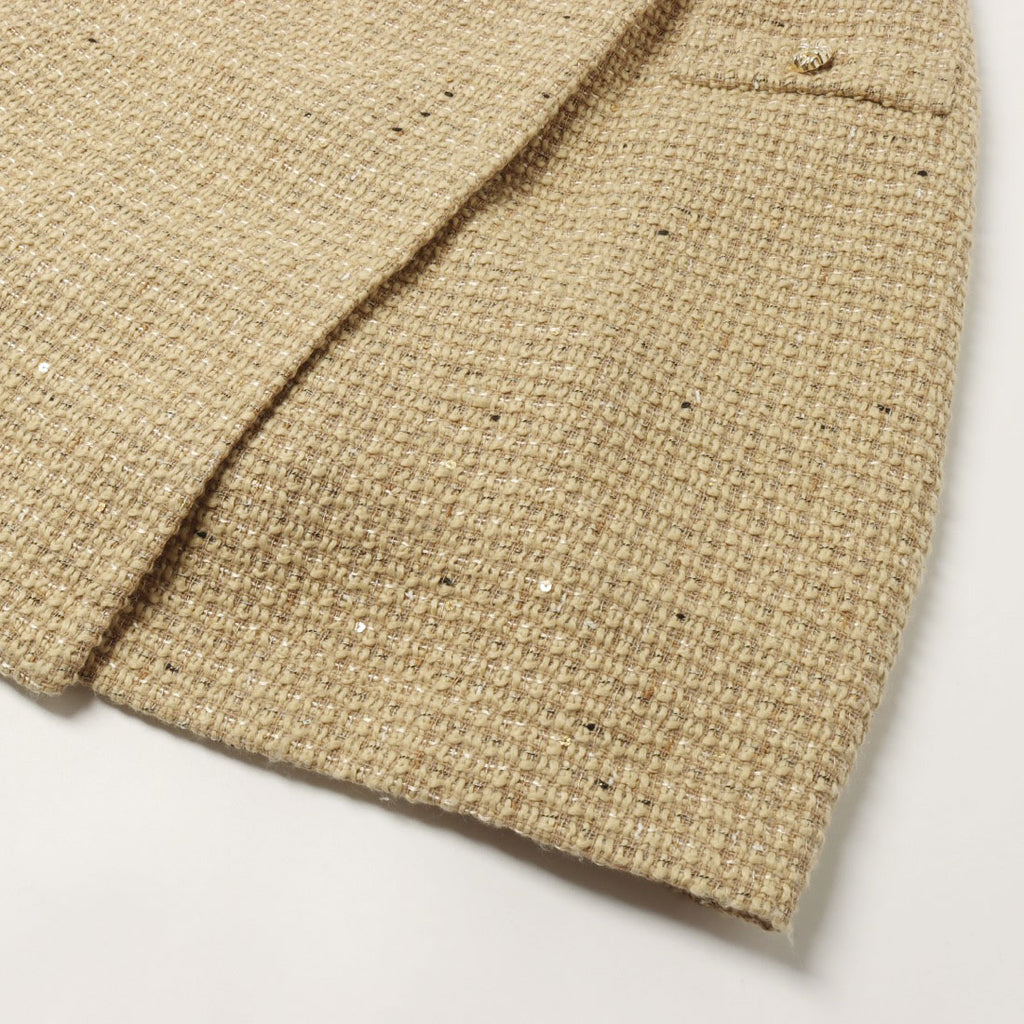 ・黑色與米白色採用動作時閃耀的金色亮片呢絨布料