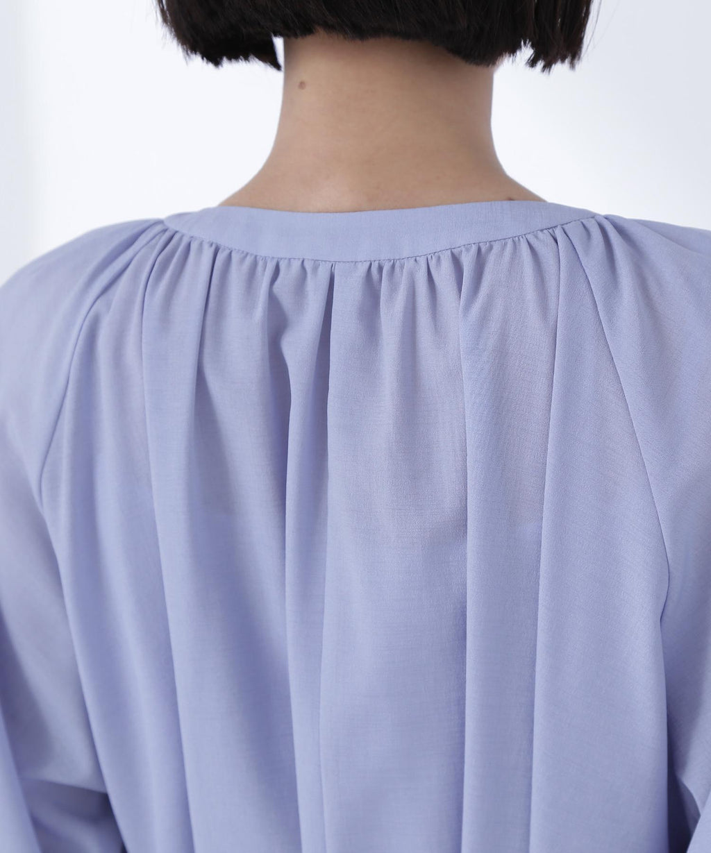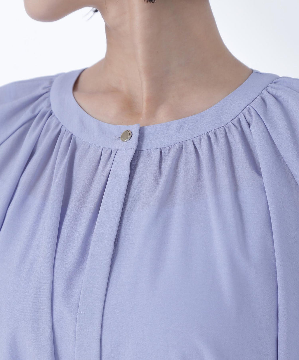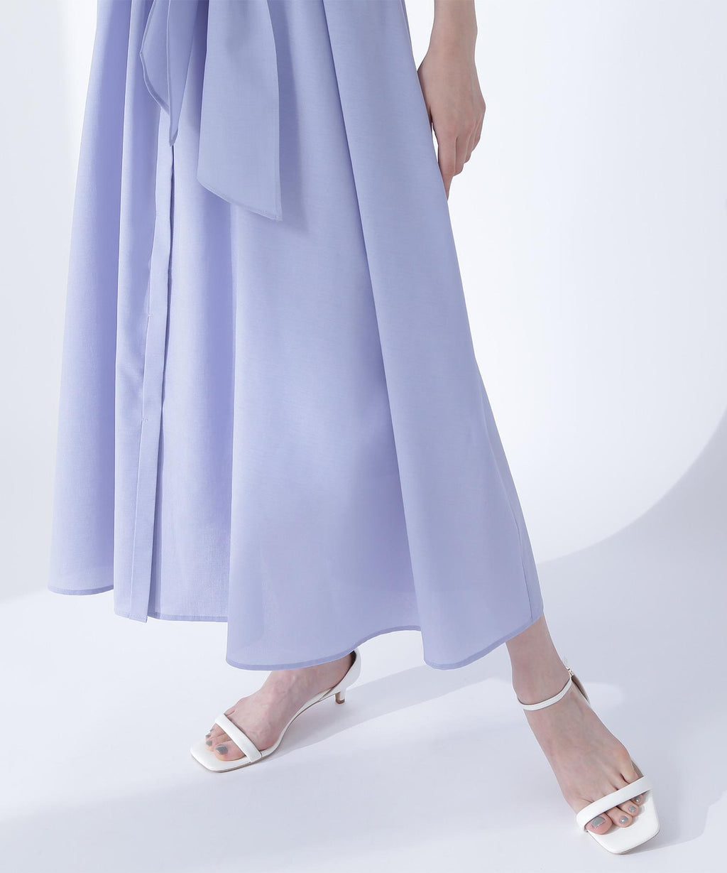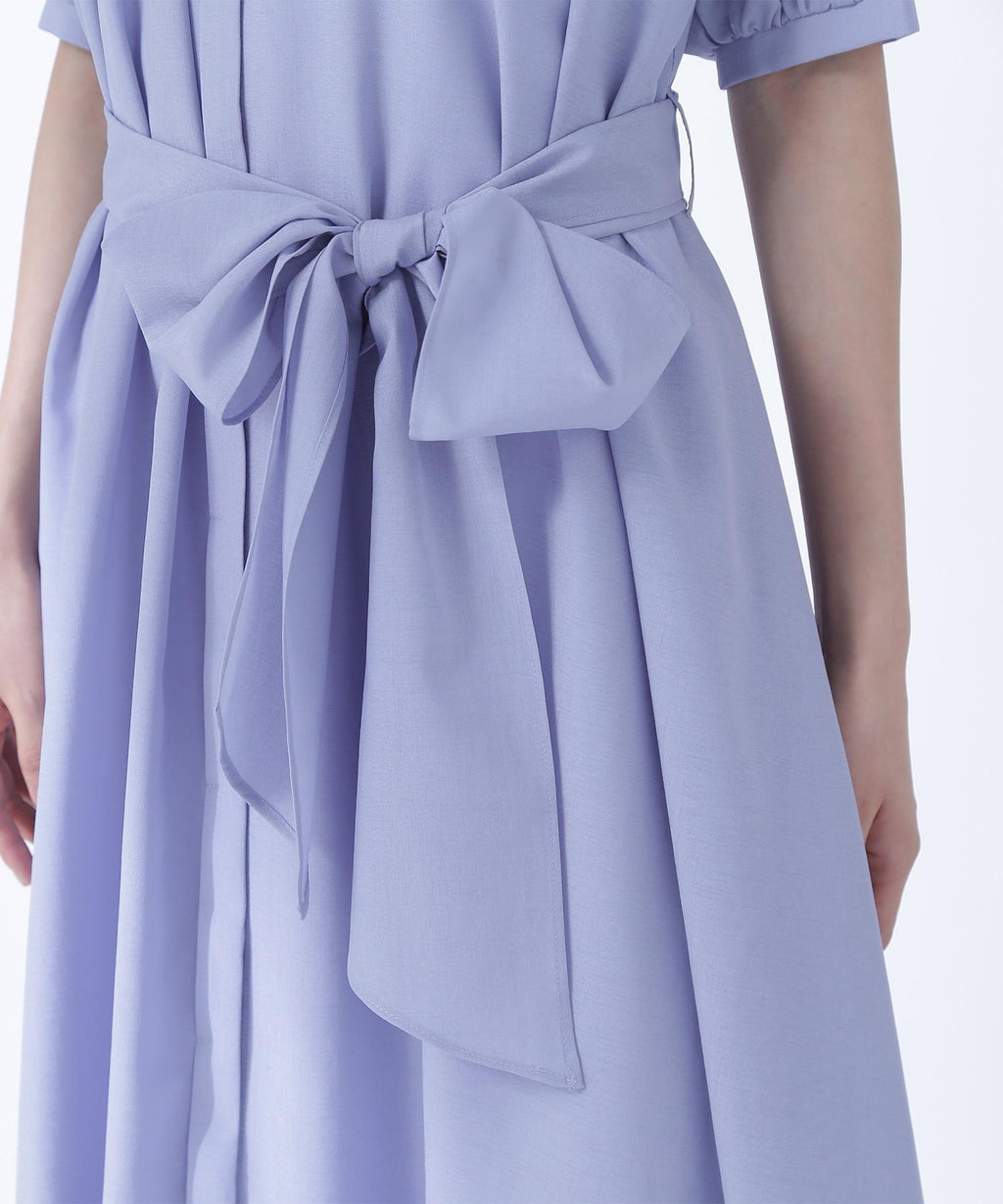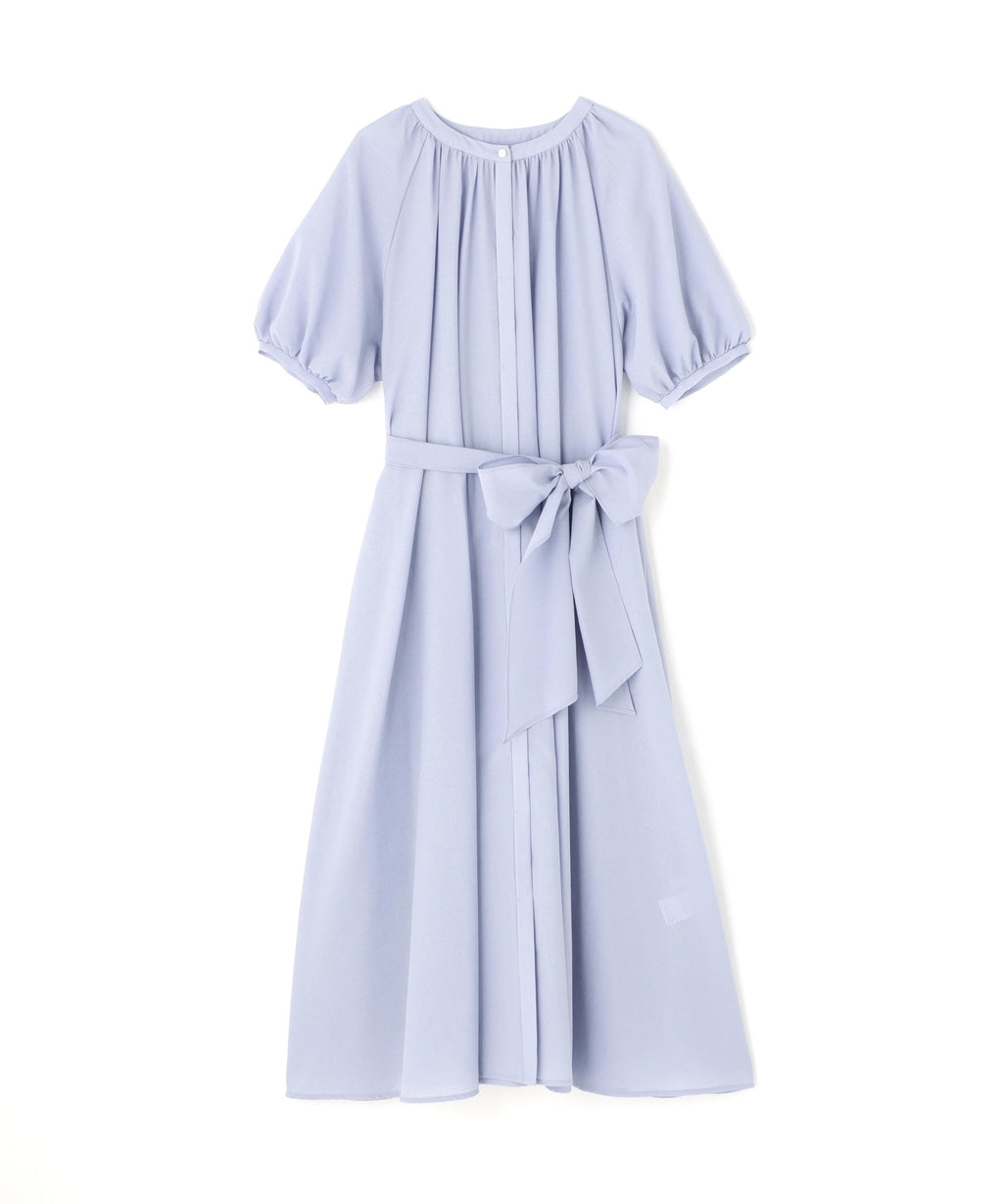 採用透視材質的帶腰帶連衣裙,建議在側面用同色系的絲帶打結來強調腰圍。若將同色系的腰帶取下,也可以作為休閒風格的寬鬆連衣裙穿著。前面採用比翼內扣設計,給人整潔的印象。裙擺寬度充裕,隨著動作輕輕擺動,營造出飄逸的輪廓。附有內搭背心連衣裙。