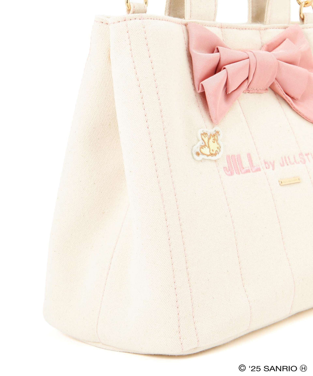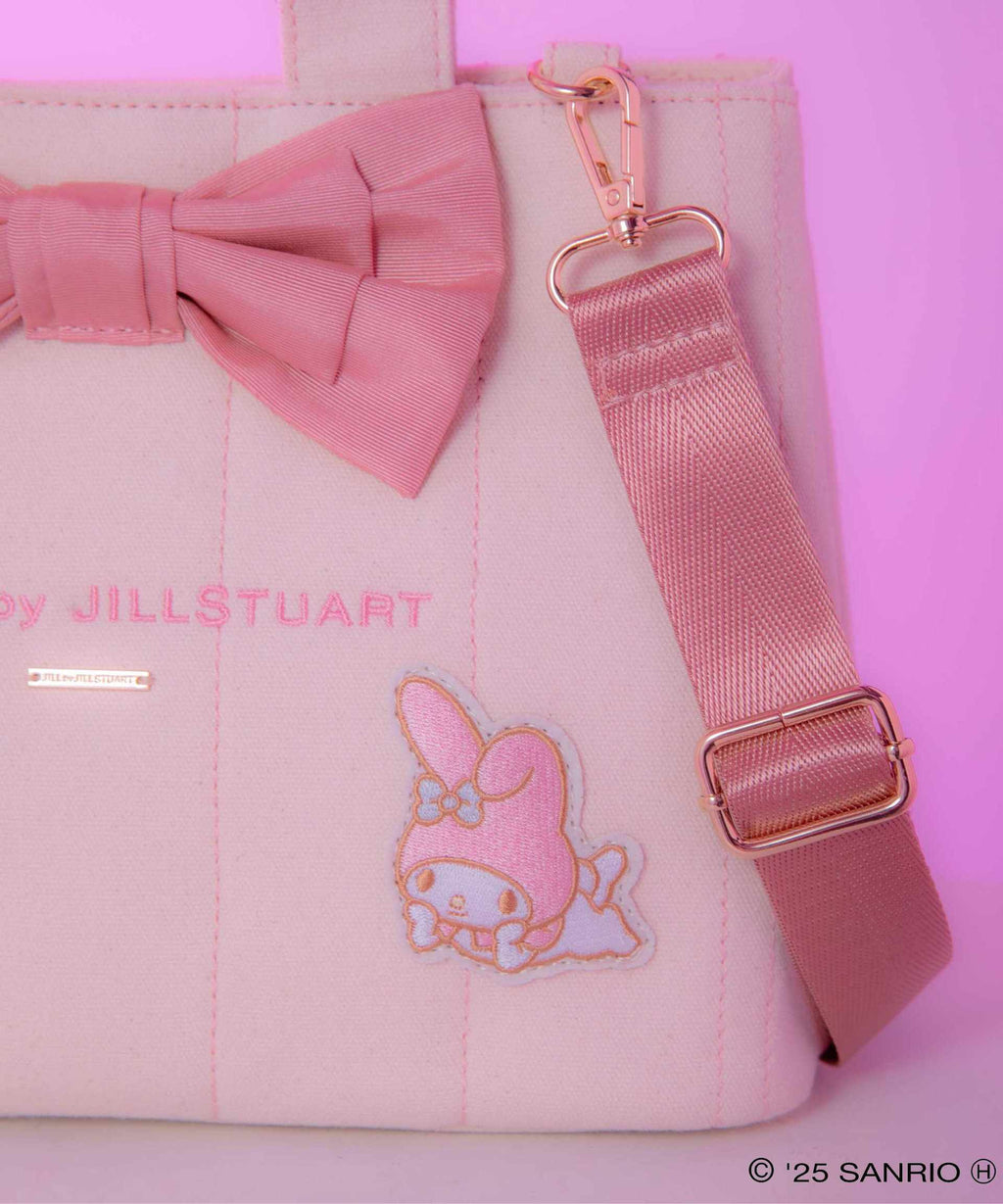 美樂蒂×JILL by JILL STUART的合作!JILL by JILL STUART中非常受歡迎的蝴蝶結縫線手提包設計保持不變,搭配符合角色的配色、內裡和正面的亮點,是一款吸引人的商品。雖然尺寸較小,但可以通過側面按扣調整大小。附帶肩帶。同系列的吉祥物吊飾(店鋪商品編號125-5199003)也有販售。※由於拍攝時的照明原因,顏色可能會看起來不同。