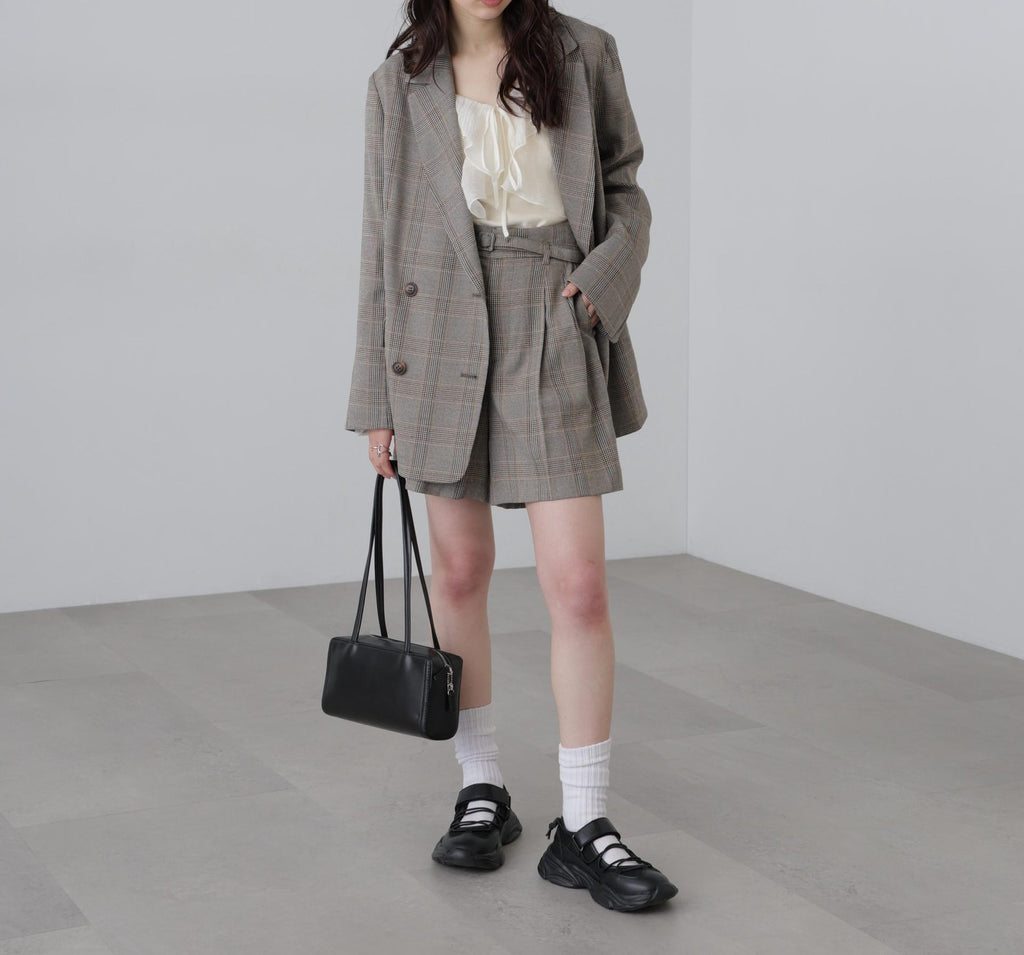 | 材質 | 灰色格子1: (表面布料)聚酯纖維 98% 聚胺酯 2%(裏面布料)聚酯纖維 100% 米白色/摩卡棕: (表面布料)造絲 54% 聚酯纖維 33% 尼龍 13%(裏面布料)聚酯纖維 100% |