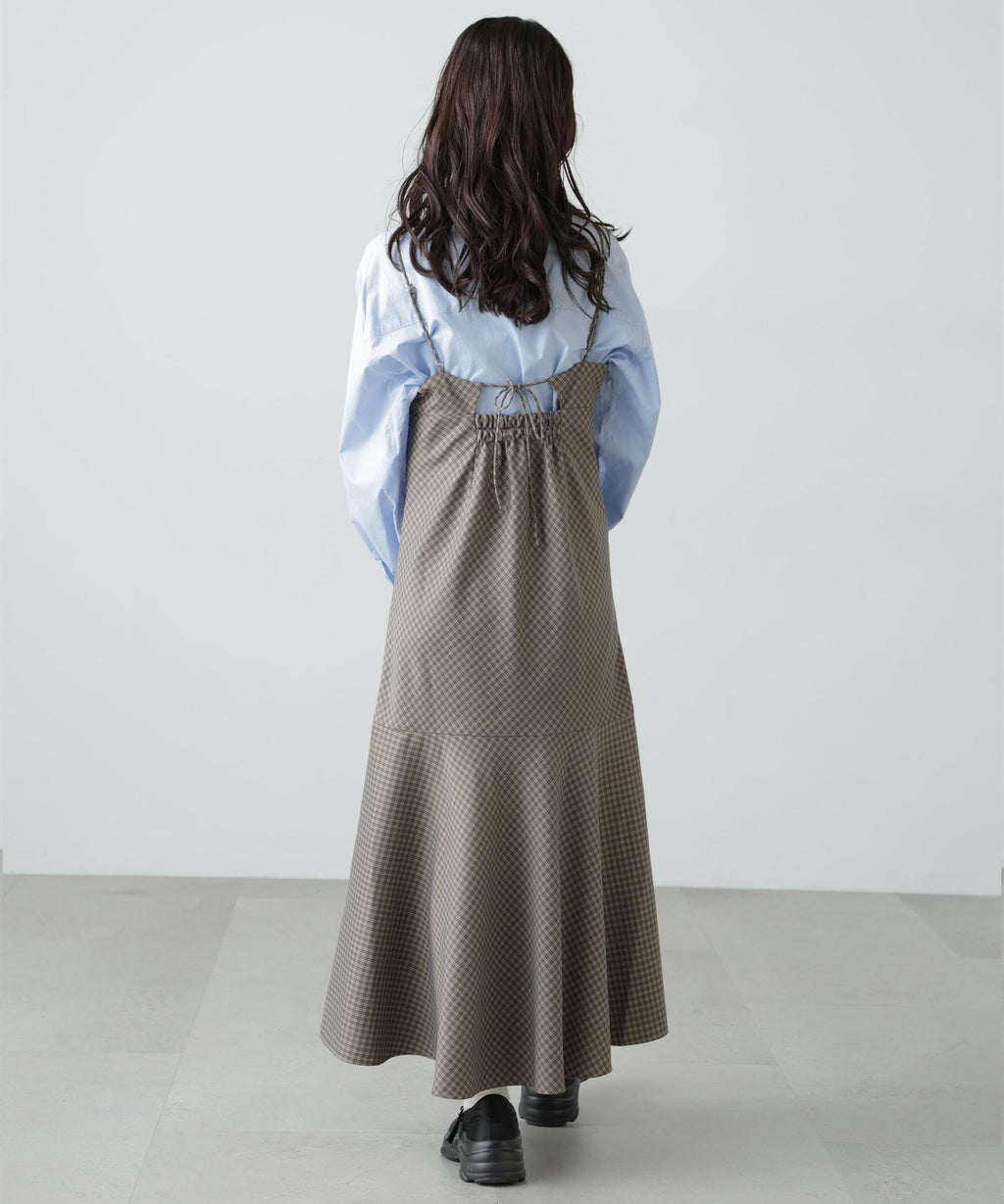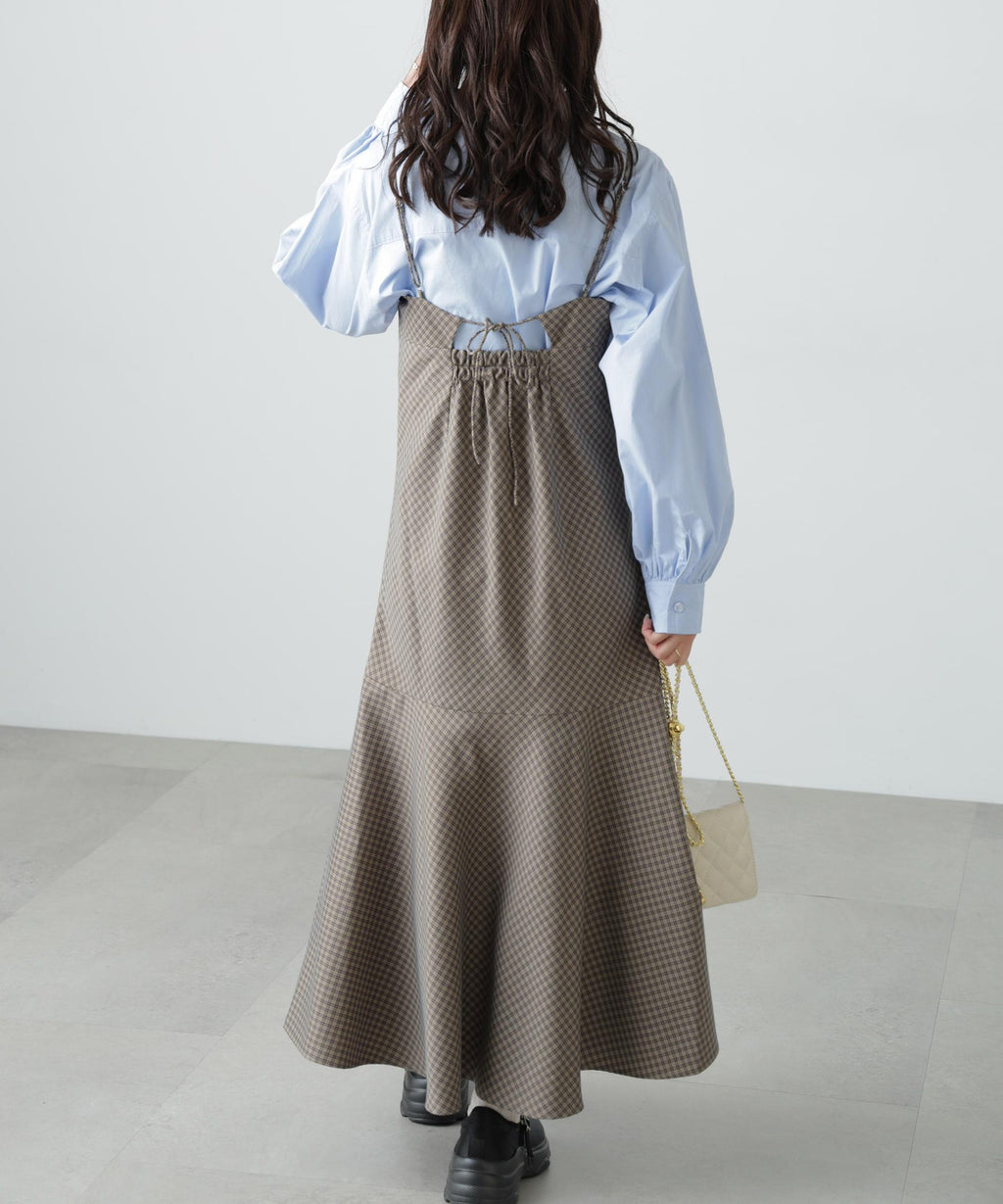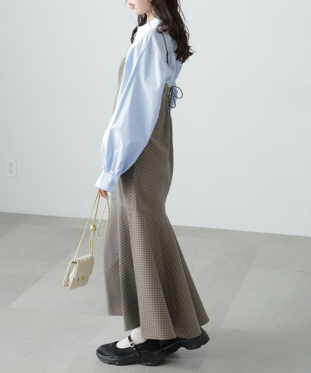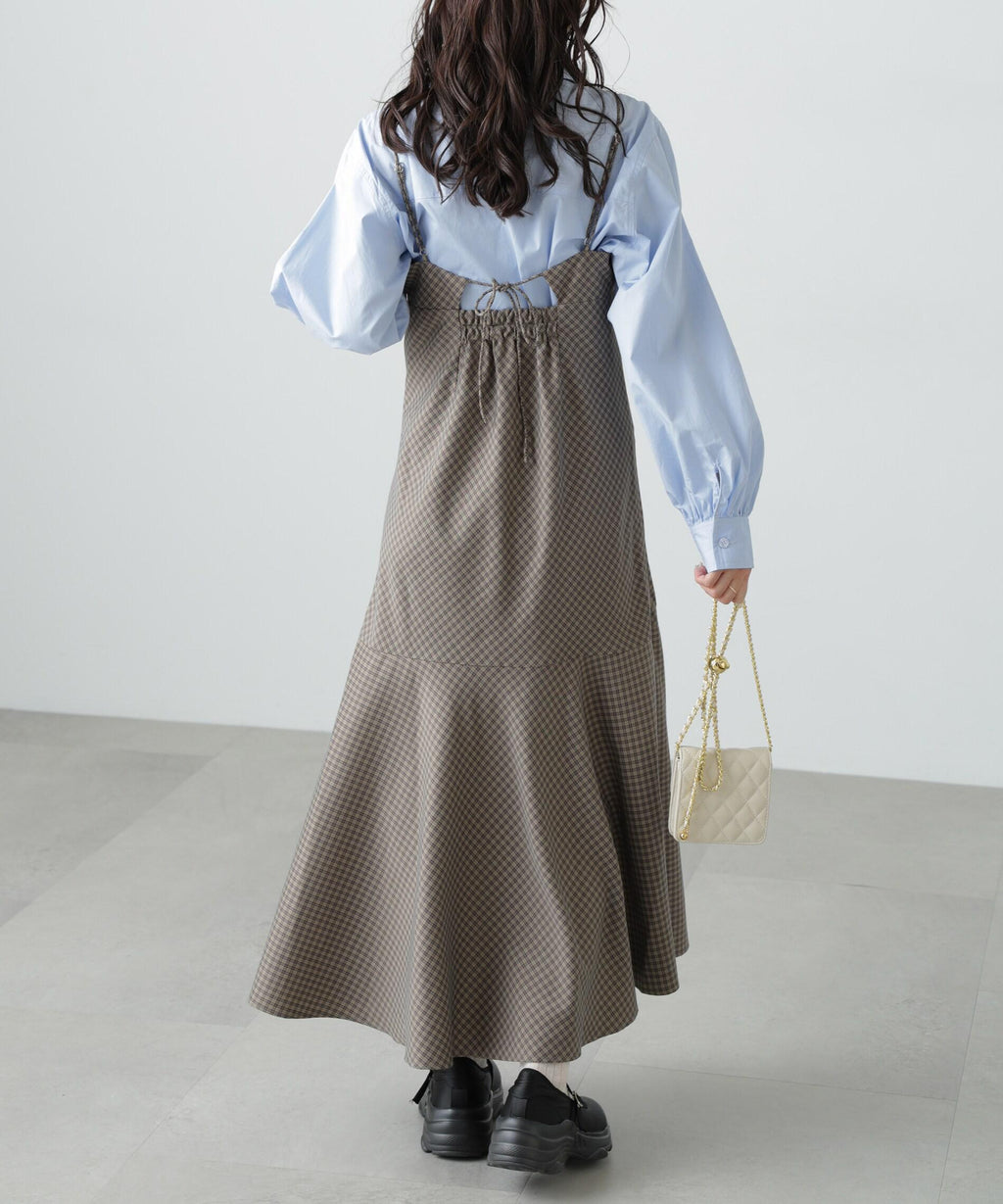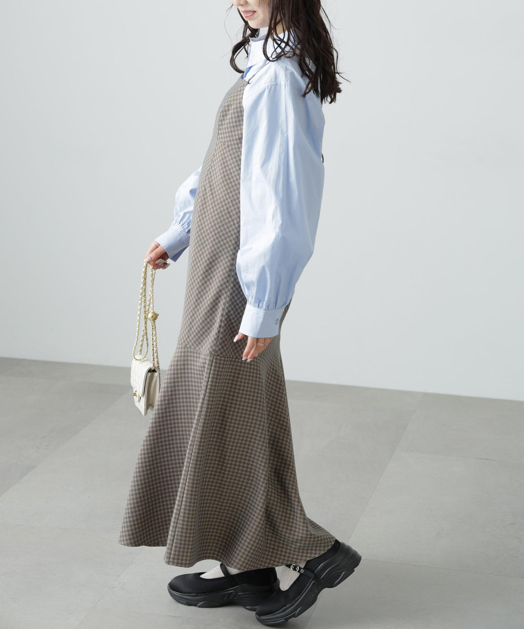 追隨潮流偏見的設計,展現漂亮的輪廓的美人魚背心連衣裙。由於使用了略帶彈性的材質,不會過度貼合身形,且全裏布設計,沒有透光感,一件即可穿著,這點令人高興。背部造型以同色系蝴蝶結作為點綴,後背也不失精緻。側開拉鍊方便穿脫,肩帶和後蝴蝶結的長度可以調節。基本的純黑色當然是推薦款,還有充滿潮流感的休閒格子花紋也很推薦。搭配外套或針織衫的風格,內搭可以是T恤或針織衫層疊穿,根據搭配的單品可以長時間穿著。