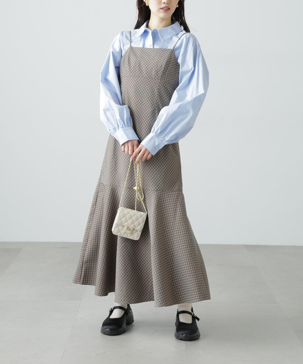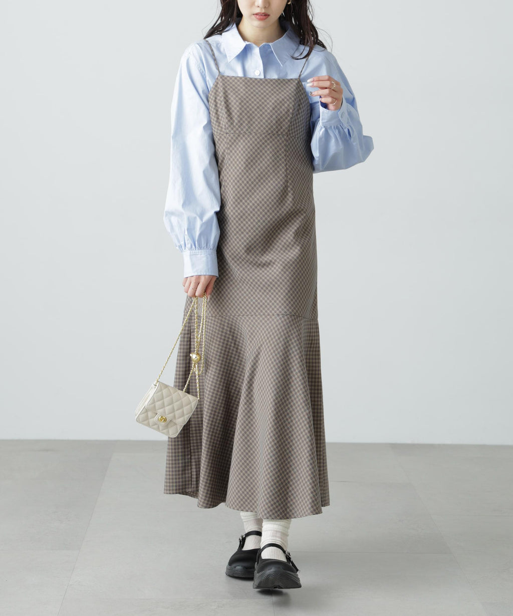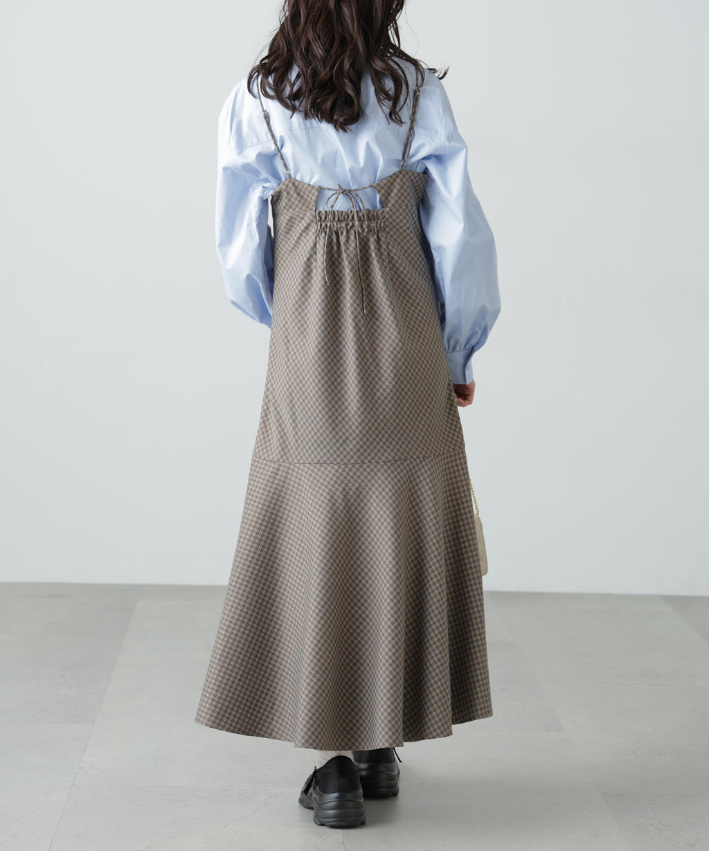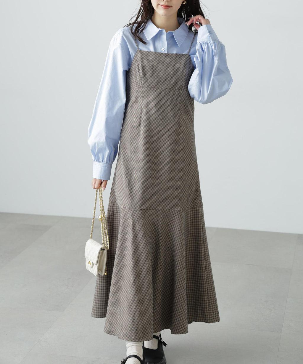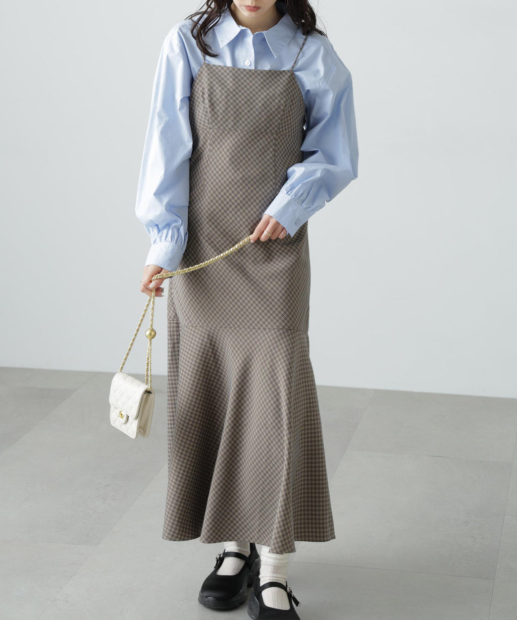 追隨潮流偏見的設計,展現漂亮的輪廓的美人魚背心連衣裙。由於使用了略帶彈性的材質,不會過度貼合身形,且全裏布設計,沒有透光感,一件即可穿著,這點令人高興。背部造型以同色系蝴蝶結作為點綴,後背也不失精緻。側開拉鍊方便穿脫,肩帶和後蝴蝶結的長度可以調節。基本的純黑色當然是推薦款,還有充滿潮流感的休閒格子花紋也很推薦。搭配外套或針織衫的風格,內搭可以是T恤或針織衫層疊穿,根據搭配的單品可以長時間穿著。