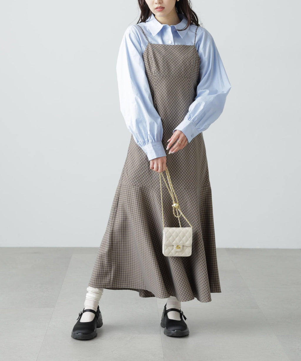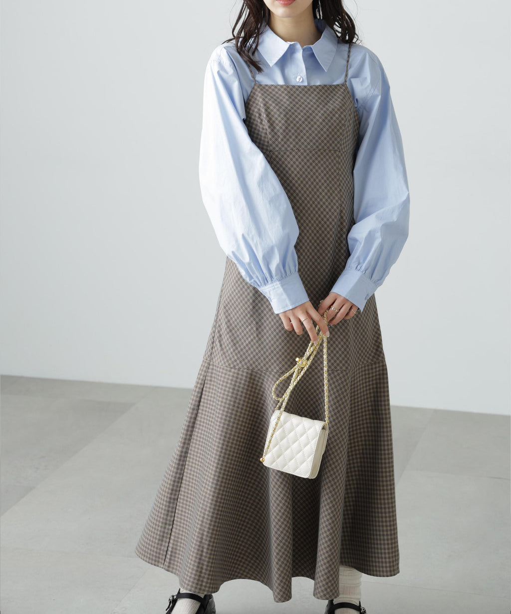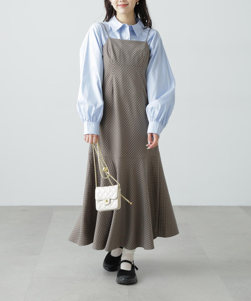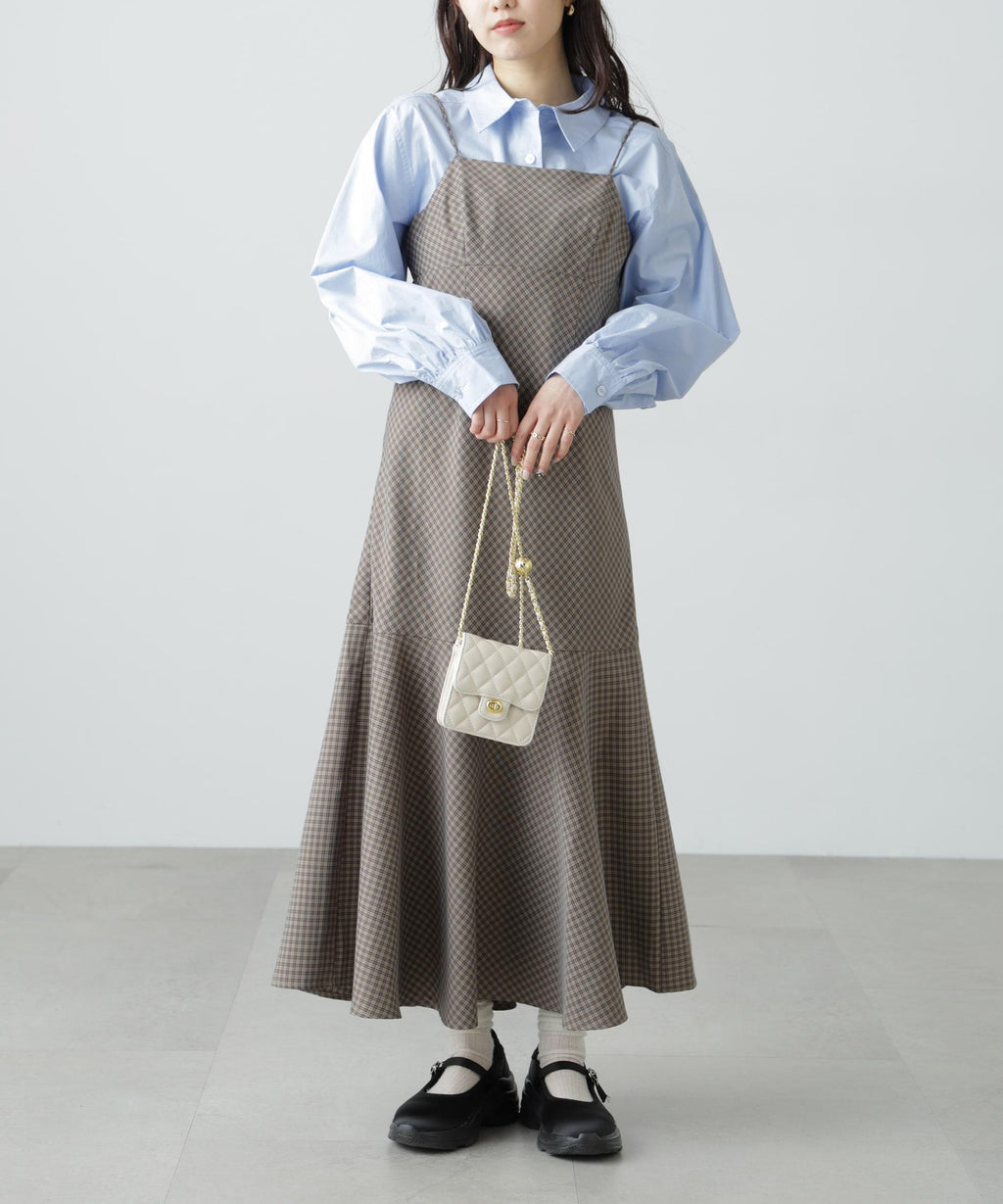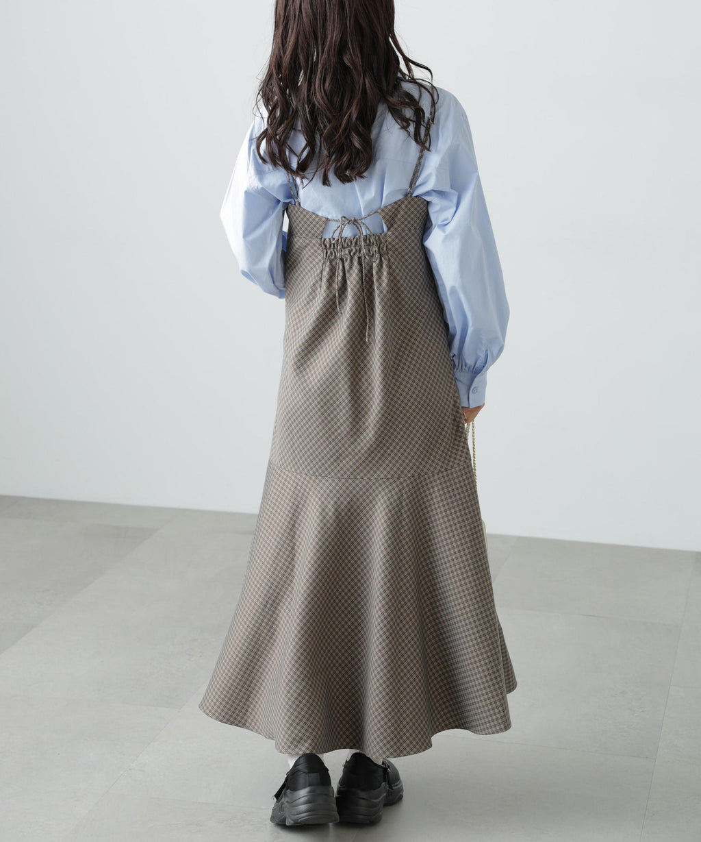 追隨潮流偏見的設計,展現漂亮的輪廓的美人魚背心連衣裙。由於使用了略帶彈性的材質,不會過度貼合身形,且全裏布設計,沒有透光感,一件即可穿著,這點令人高興。背部造型以同色系蝴蝶結作為點綴,後背也不失精緻。側開拉鍊方便穿脫,肩帶和後蝴蝶結的長度可以調節。基本的純黑色當然是推薦款,還有充滿潮流感的休閒格子花紋也很推薦。搭配外套或針織衫的風格,內搭可以是T恤或針織衫層疊穿,根據搭配的單品可以長時間穿著。