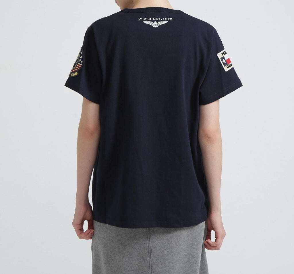 代表AVIREX的《TOP GUN/捍衛戰士》貼片細節T恤。