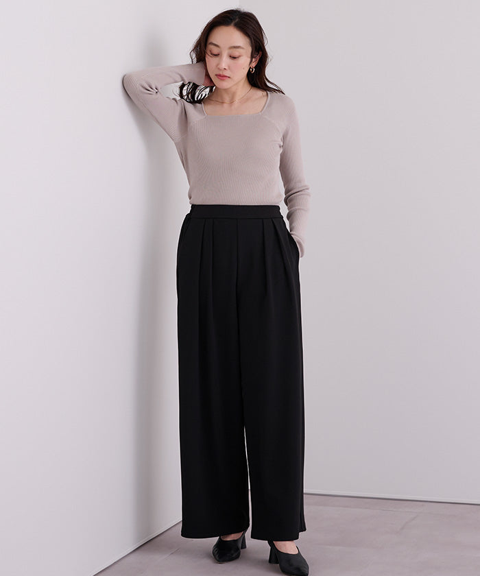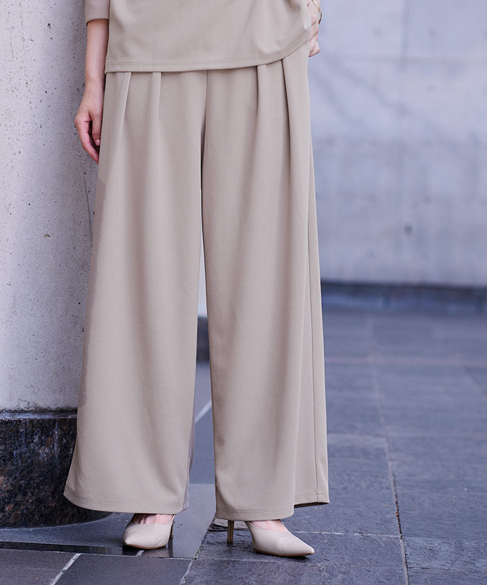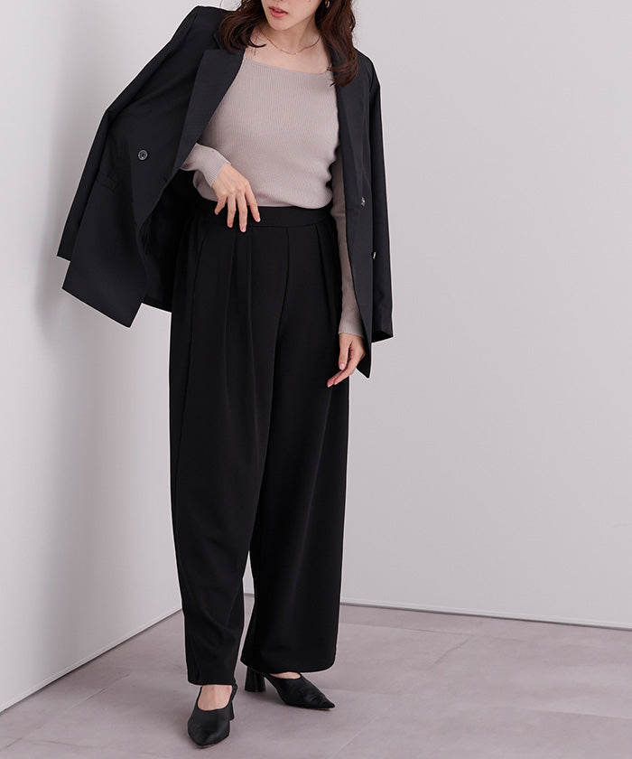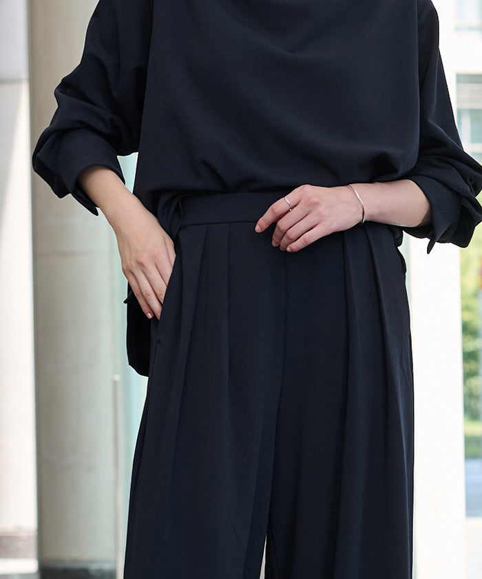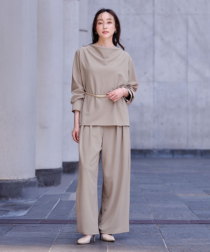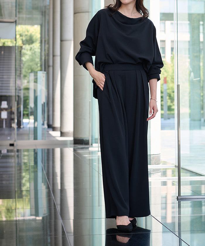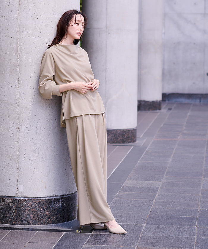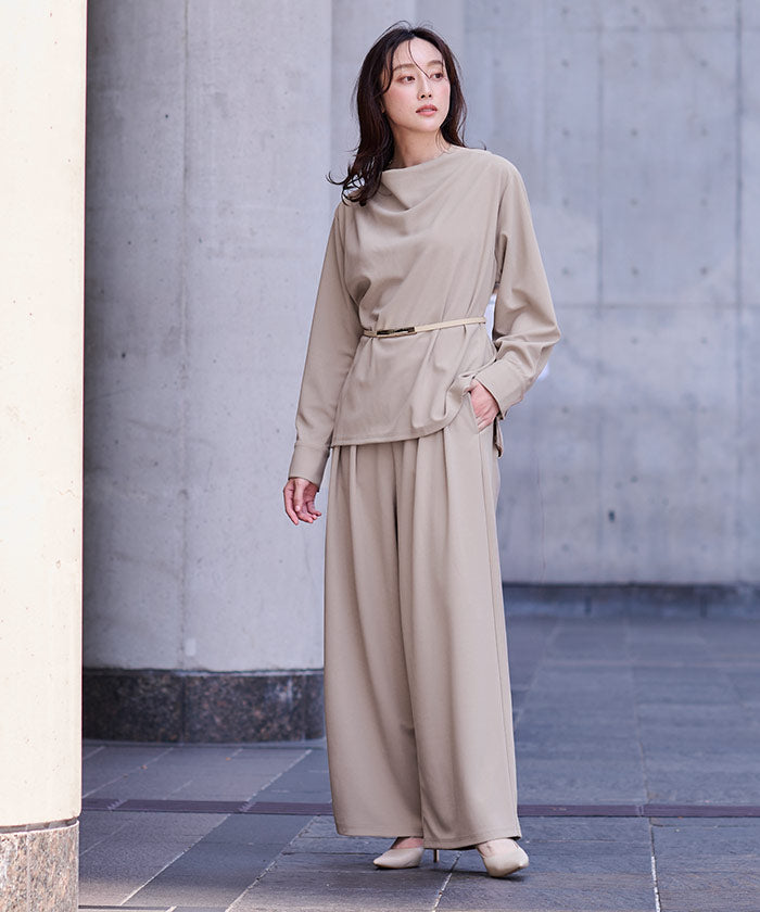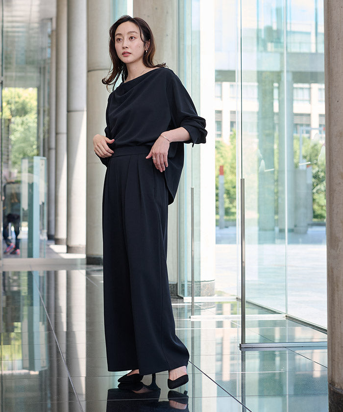 採用優雅的垂感柔軟材質。不易起皺,保持精緻的印象。具有彈性,活動自如,舒適度極佳。