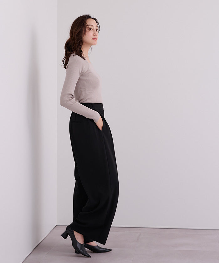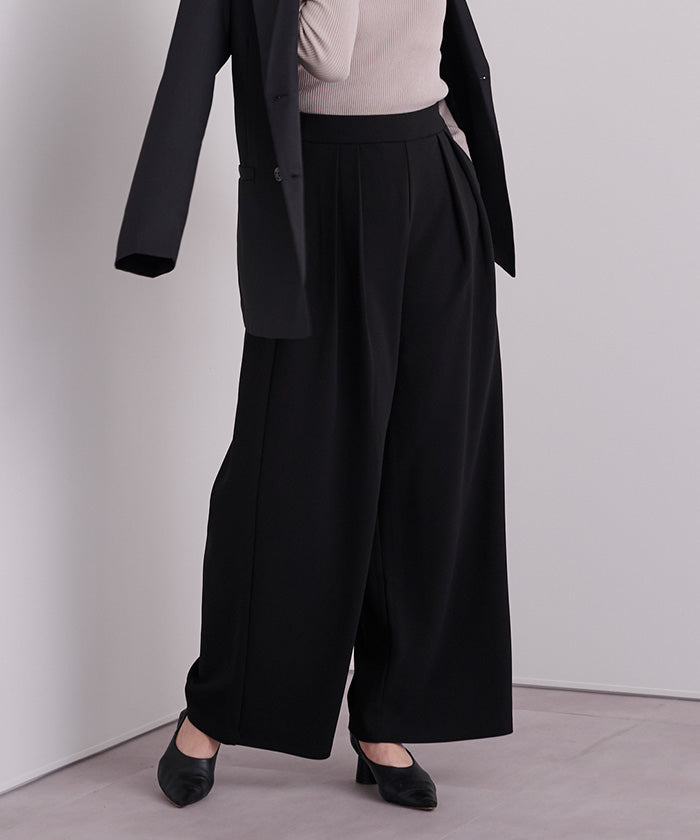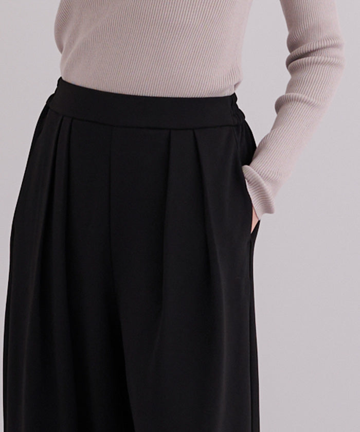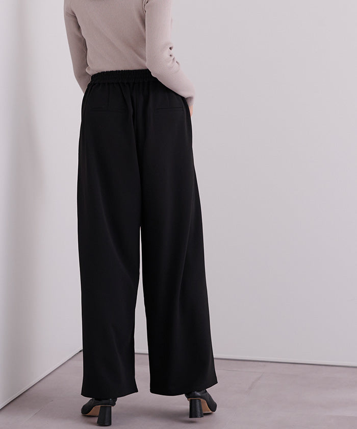 前面施加的摺痕強調了縱向線條,並以自然的垂感遮掩身形。雖然是寬鬆剪裁,但腰部不會顯得臃腫,實現了清爽的外觀。後腰為橡膠設計,便於穿脫,全天候舒適的穿著感受。