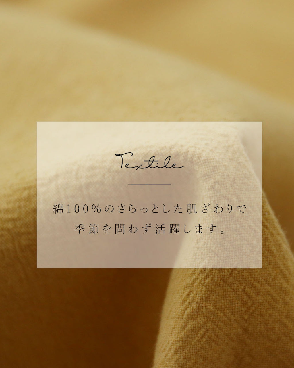 綿100%のさらっとした肌ざわりで季節を問わず活躍します。