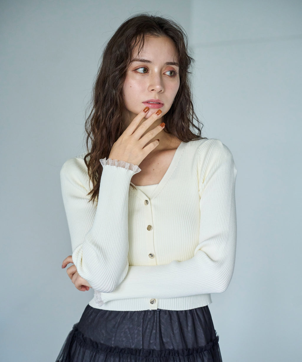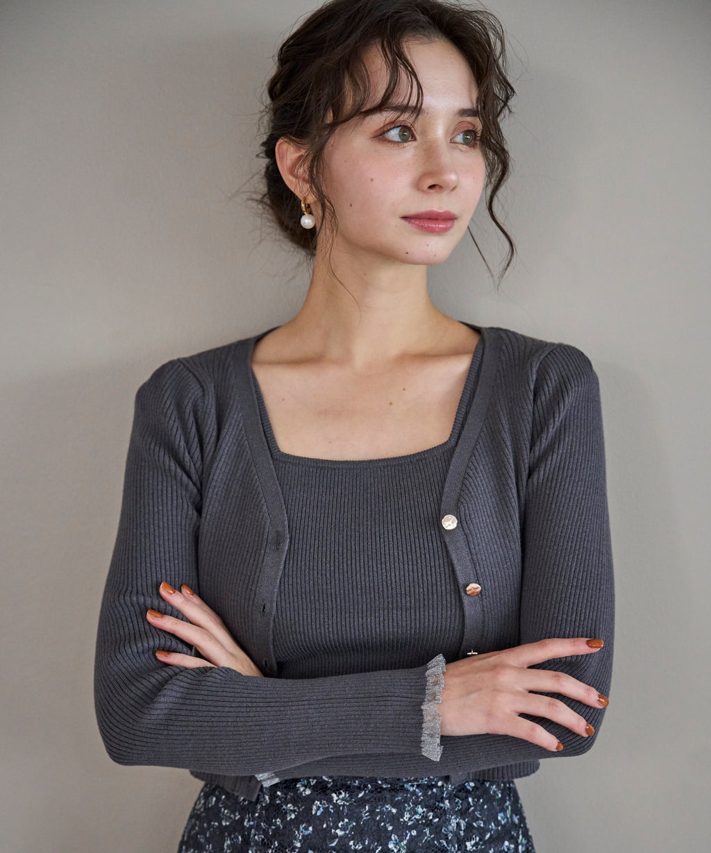 實際尺寸 サイズ:(カーディガン)衣長:41.5 胸寬33.0 肩寬30.0 袖長59.0 (內搭)衣長49.0 胸寬32.0 肩寬40.5