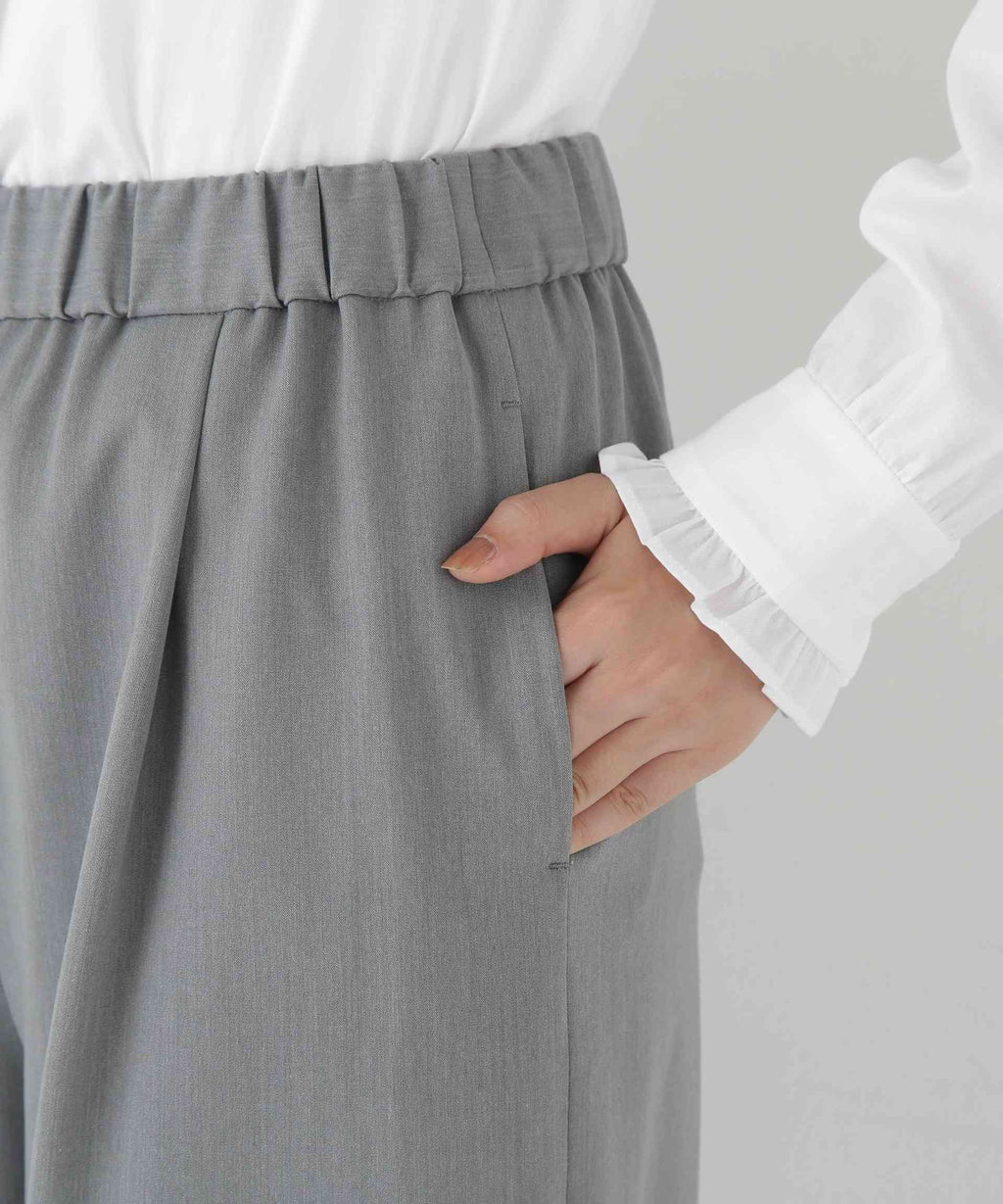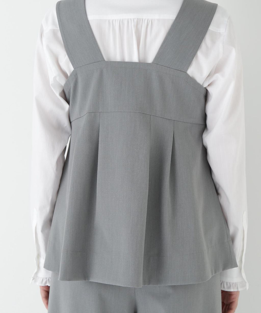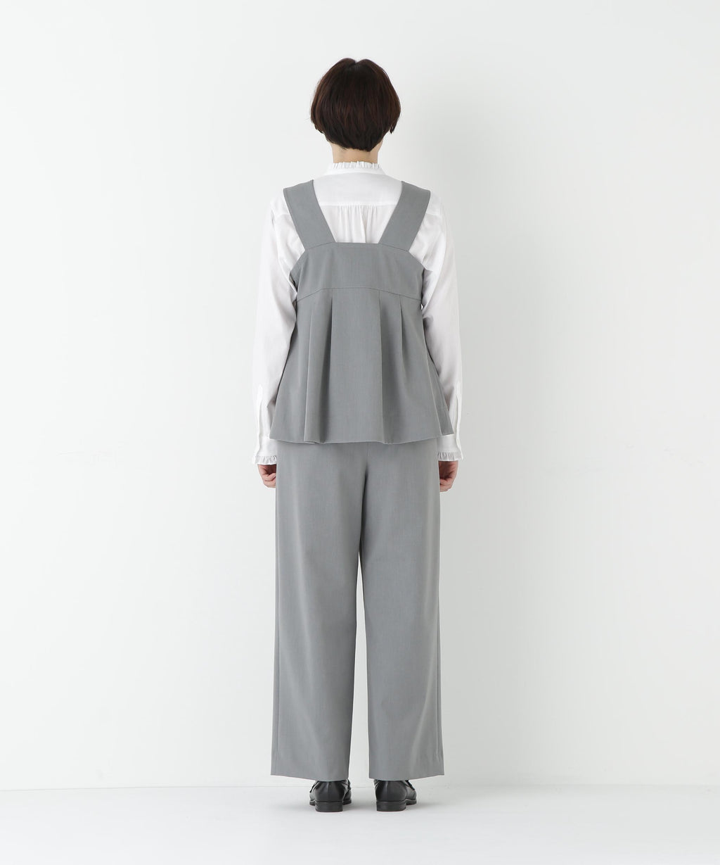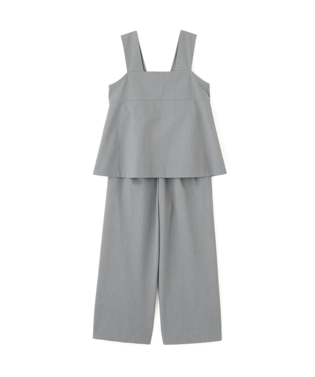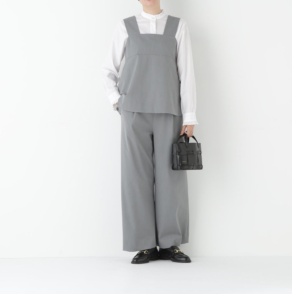 這款背心套裝適合全年穿著。較粗的肩帶和折皺喇叭的輪廓,以及掛在臀部的背心長度,讓您展現成熟的風格。同素材的褲子是鬆緊腰帶,既舒適又能展現美麗的輪廓,是優秀的褲款。