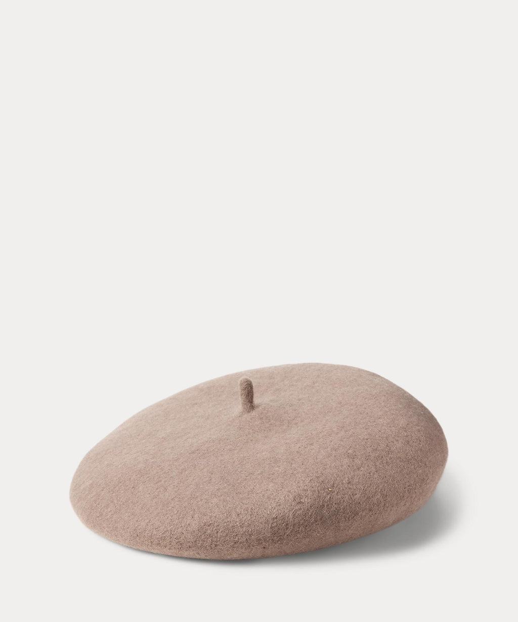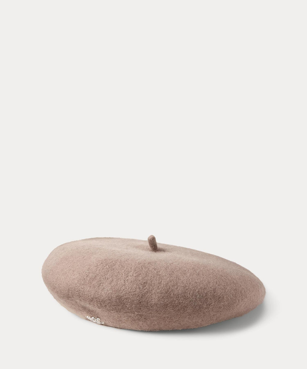 用柔軟的羊毛氈製成的經典貝雷帽。前面裝飾有LRL字樣標誌的款式。