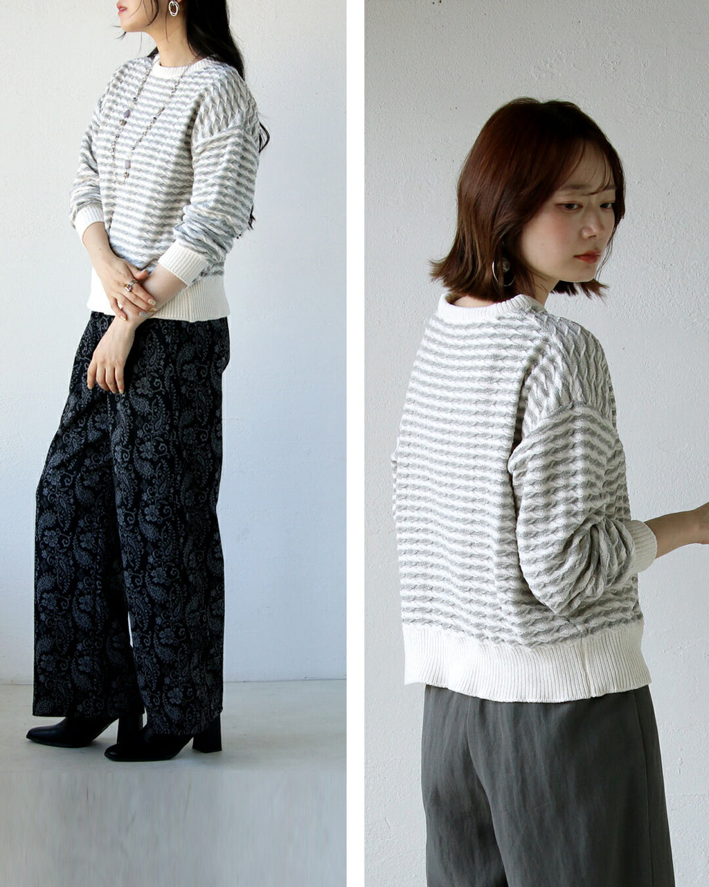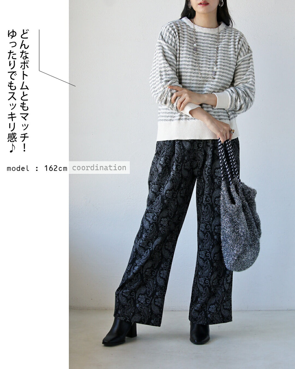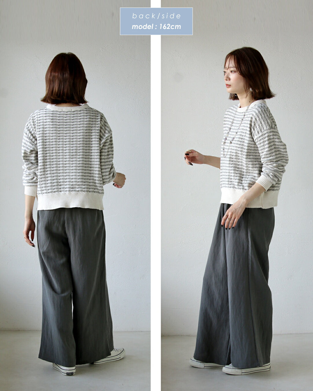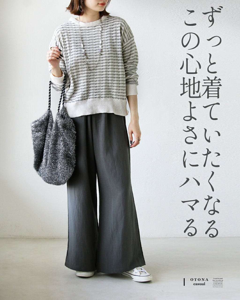 無論搭配褲子或裙子,都能整體感清爽,並具有腿長效果的設計。
