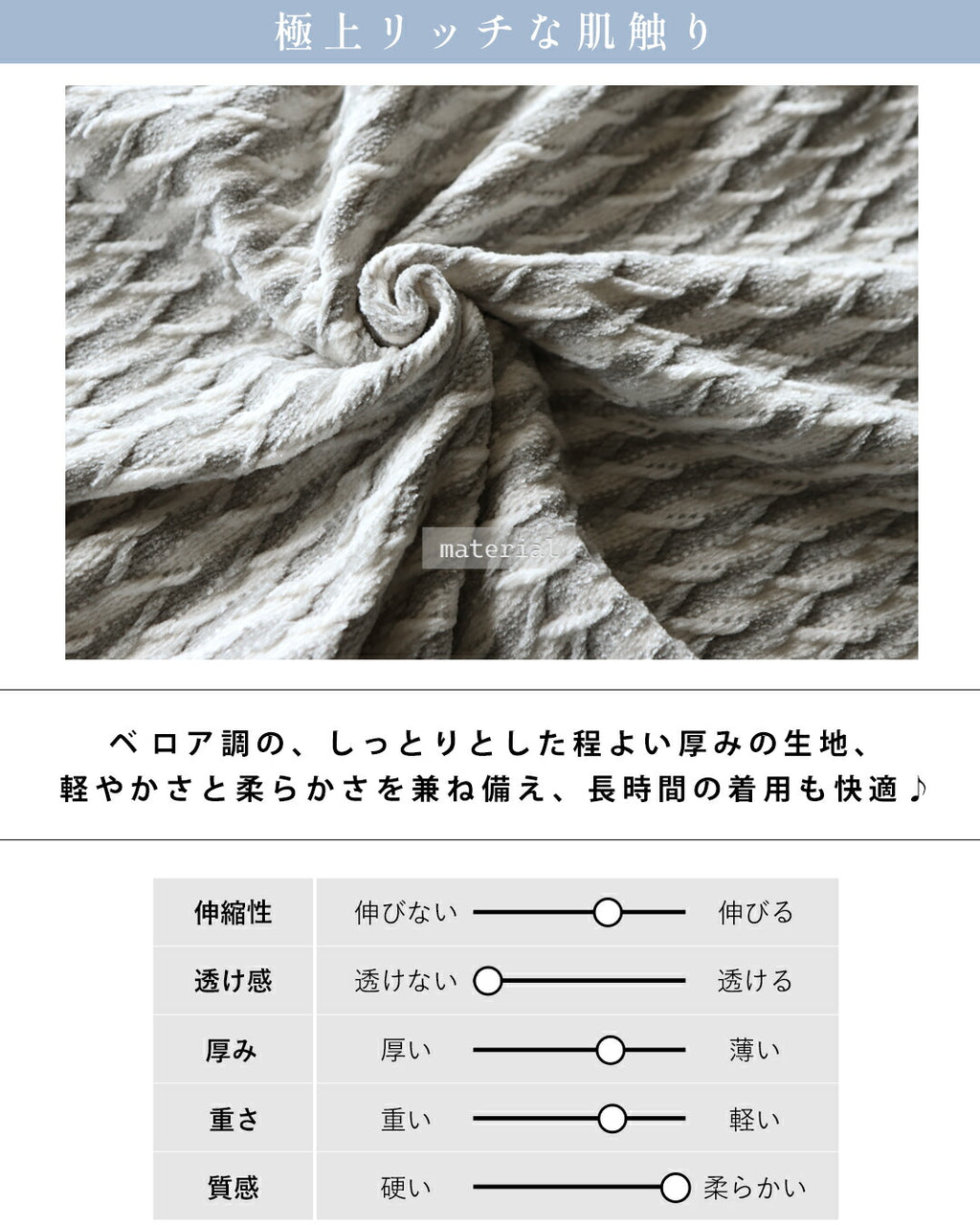柔軟細膩、觸感極佳的天鵝絨調上衣,具有迷人的肌膚觸感。