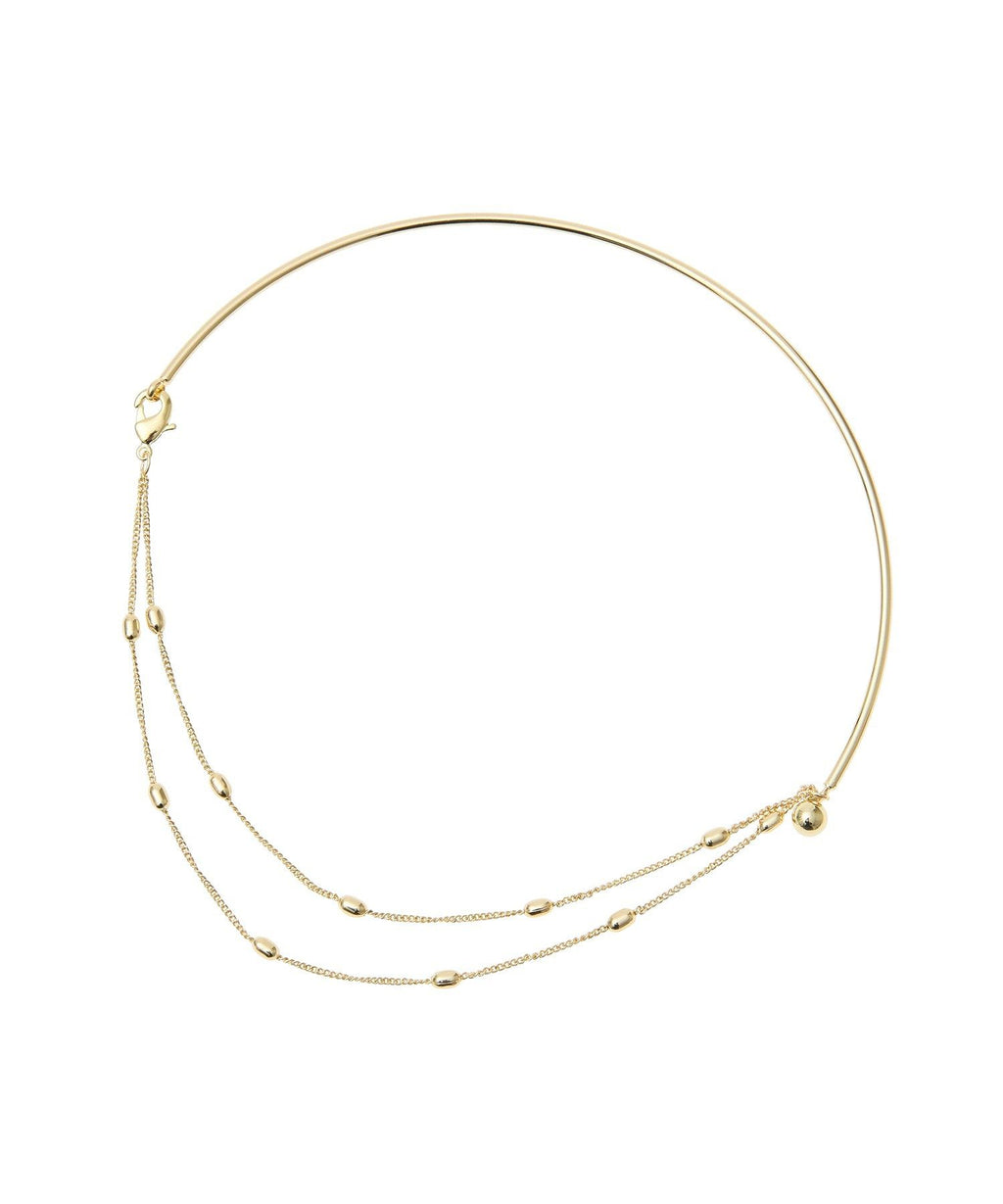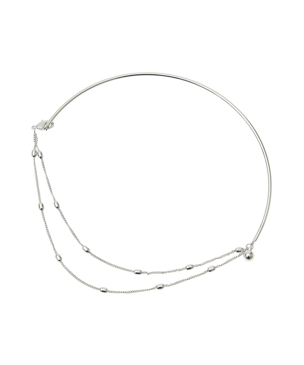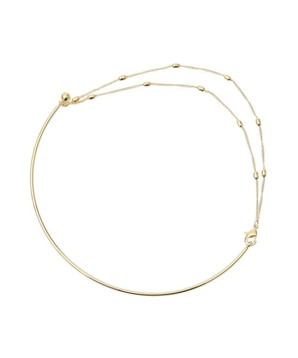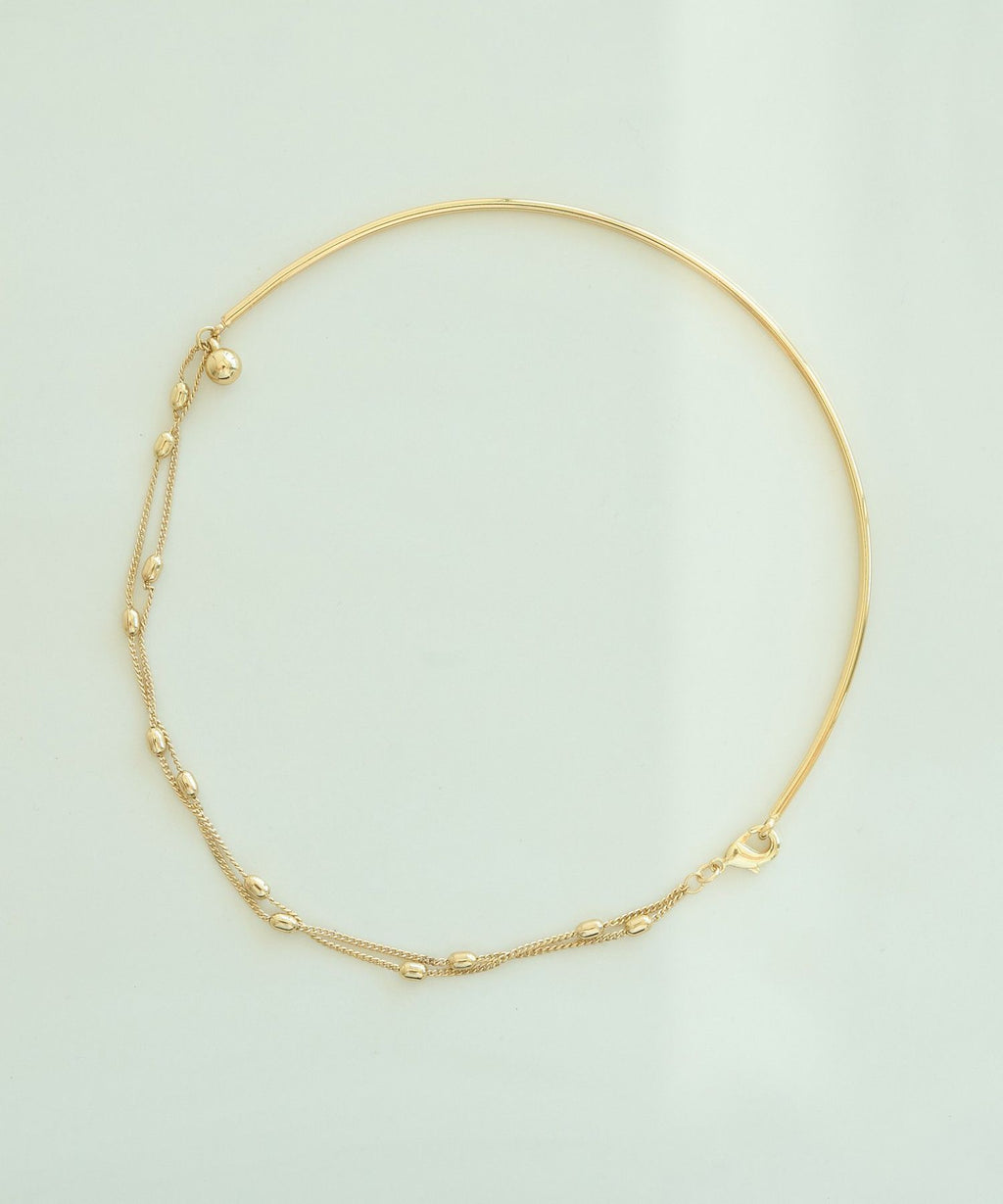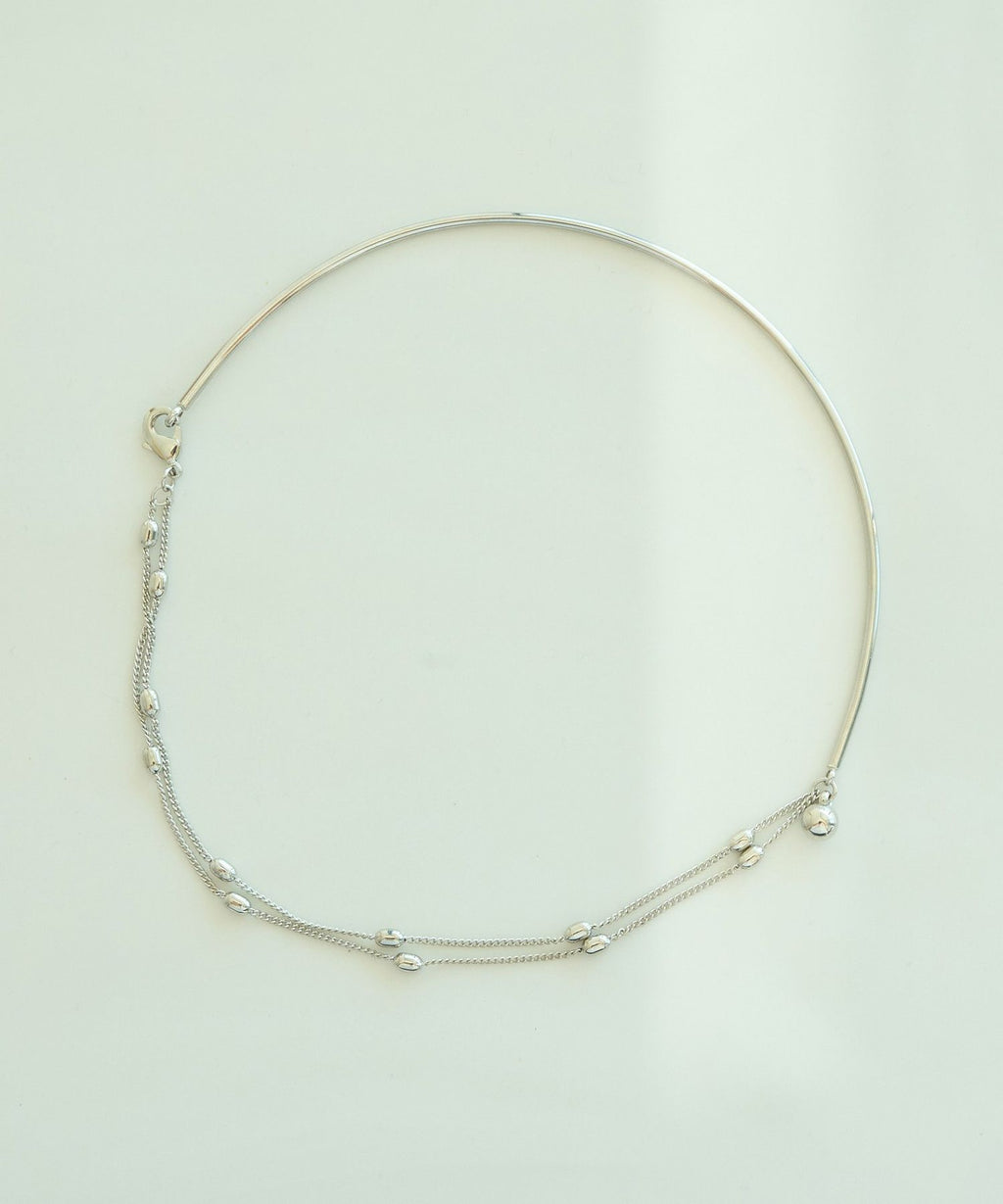 圓形金屬棒的柔和線條美麗地裝飾著頸部的項圈項鍊。