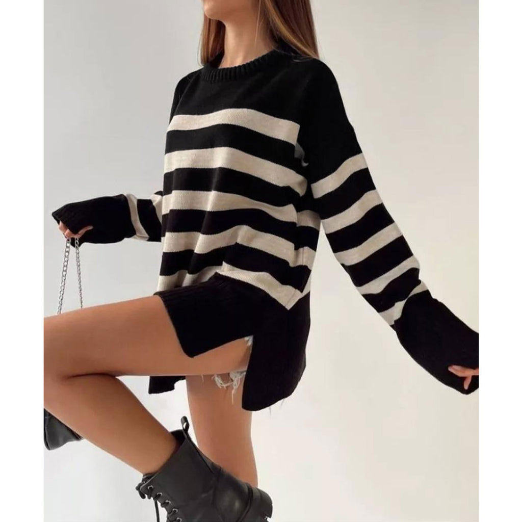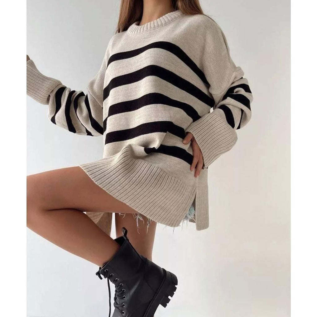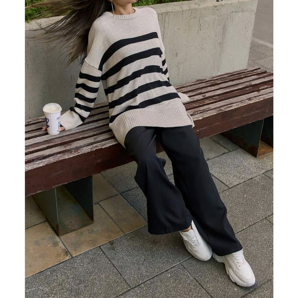 毛衣 圓領套頭衫 側邊開衩 顯瘦 百搭 成人 可愛 休閒 時尚 春秋